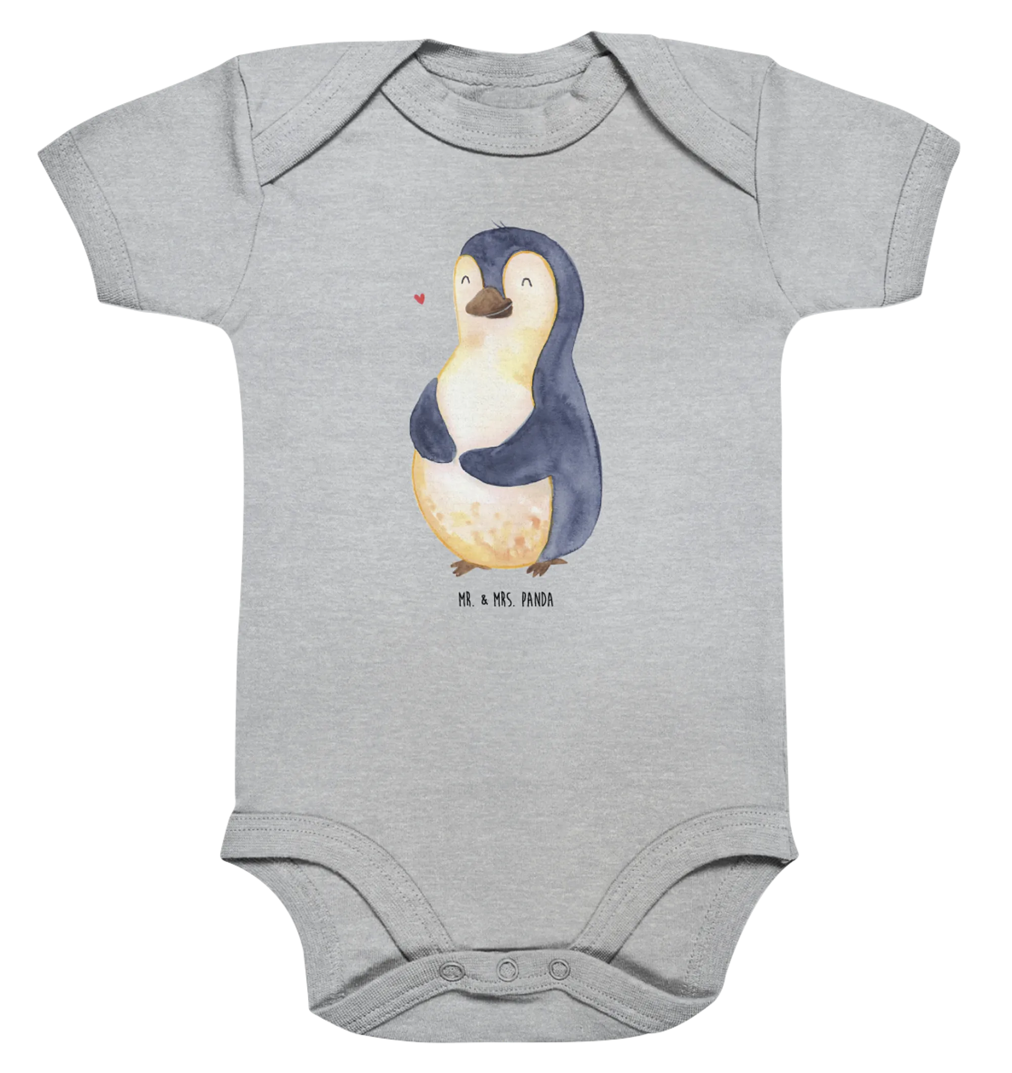 Organiczne body dla niemowląt Pingwin dieta - 3. - 6. Monat - z napisem - Heather Grey