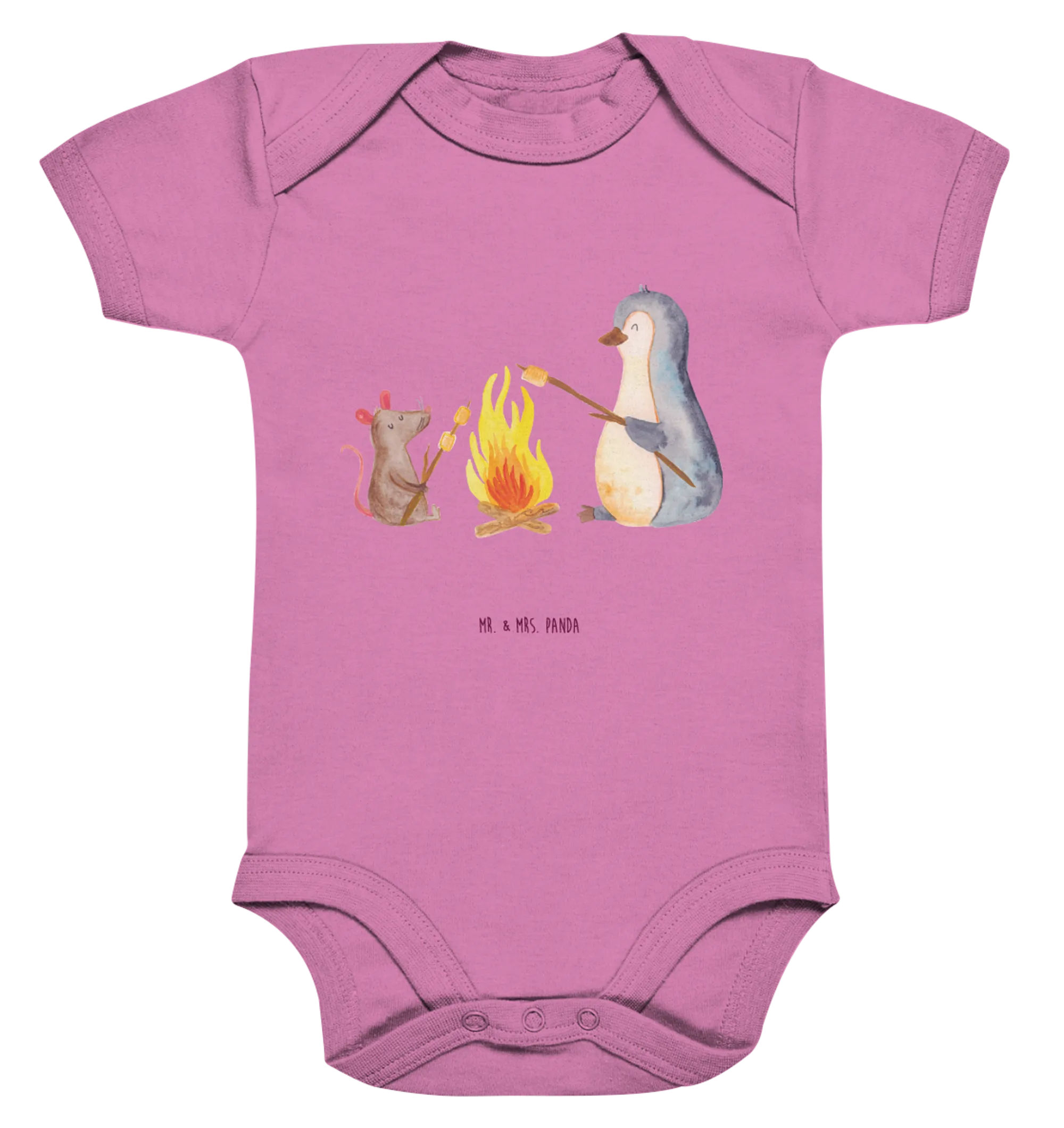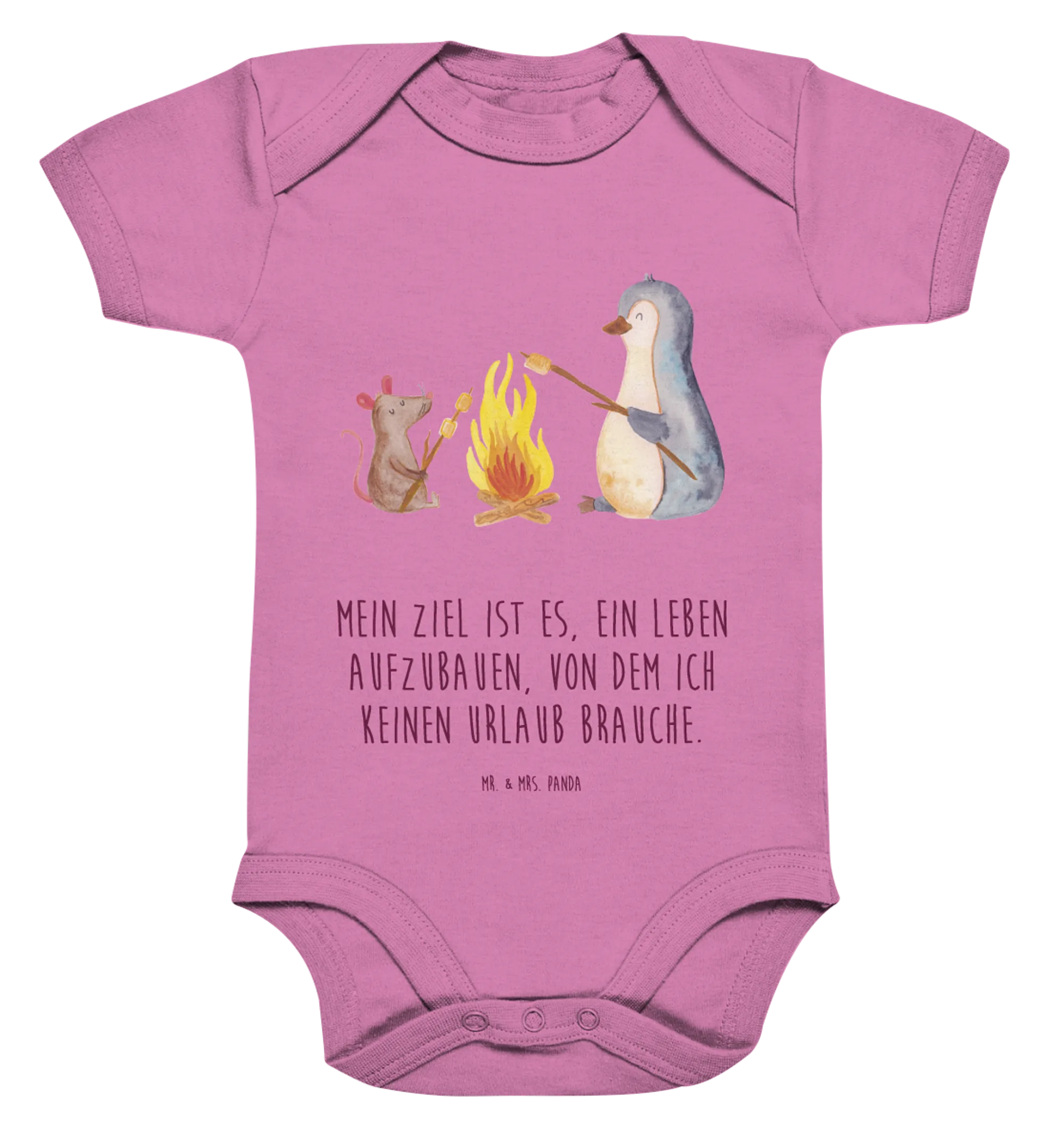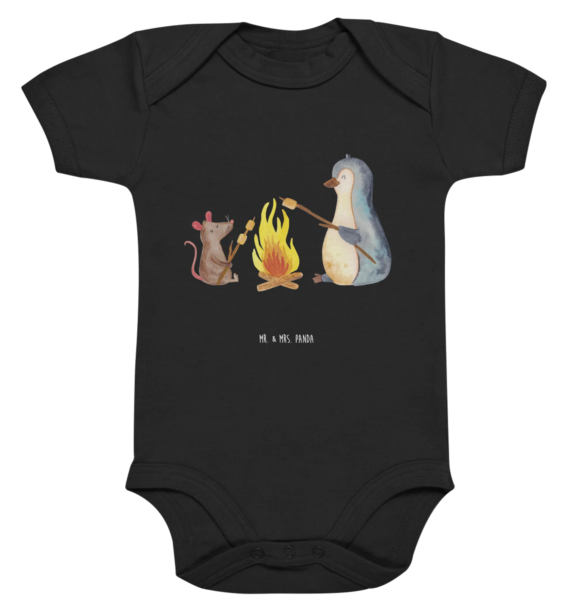 Organiczne body dla niemowląt pingwin ognisko - 3. - 6. Monat - z napisem - Heather Grey
