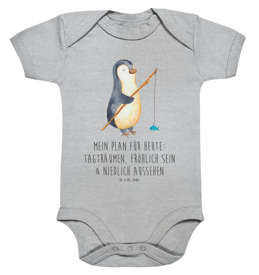 Organiczne body dla niemowląt Pingwin Wędkarz - 3. - 6. Monat - z napisem