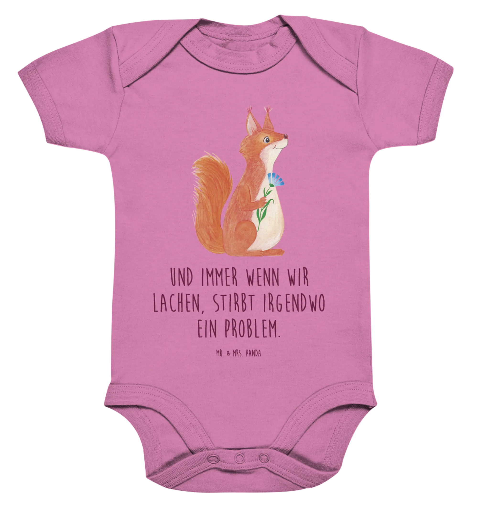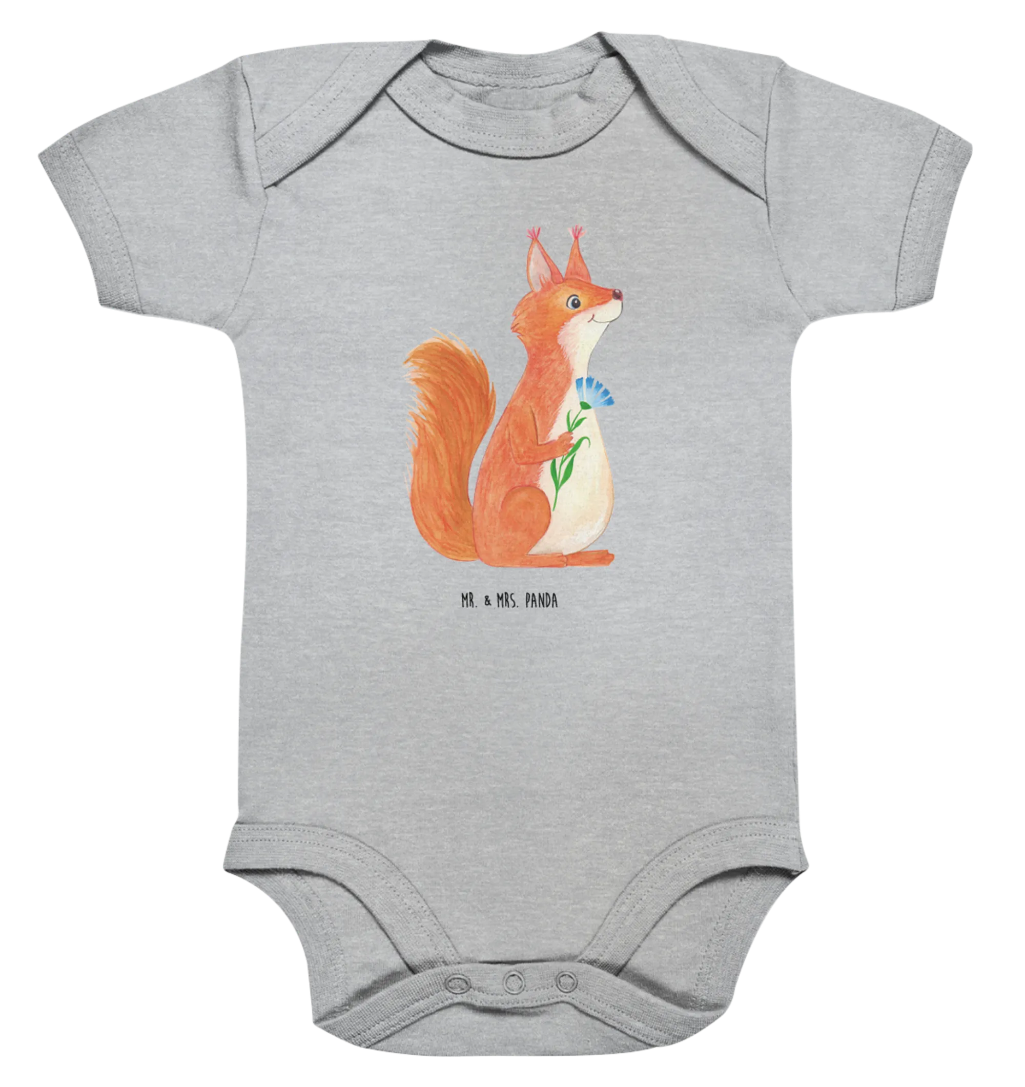 Organiczne body dla niemowląt wiewiórka kwiat - 1. - 3. Monat - z napisem - Heather Grey