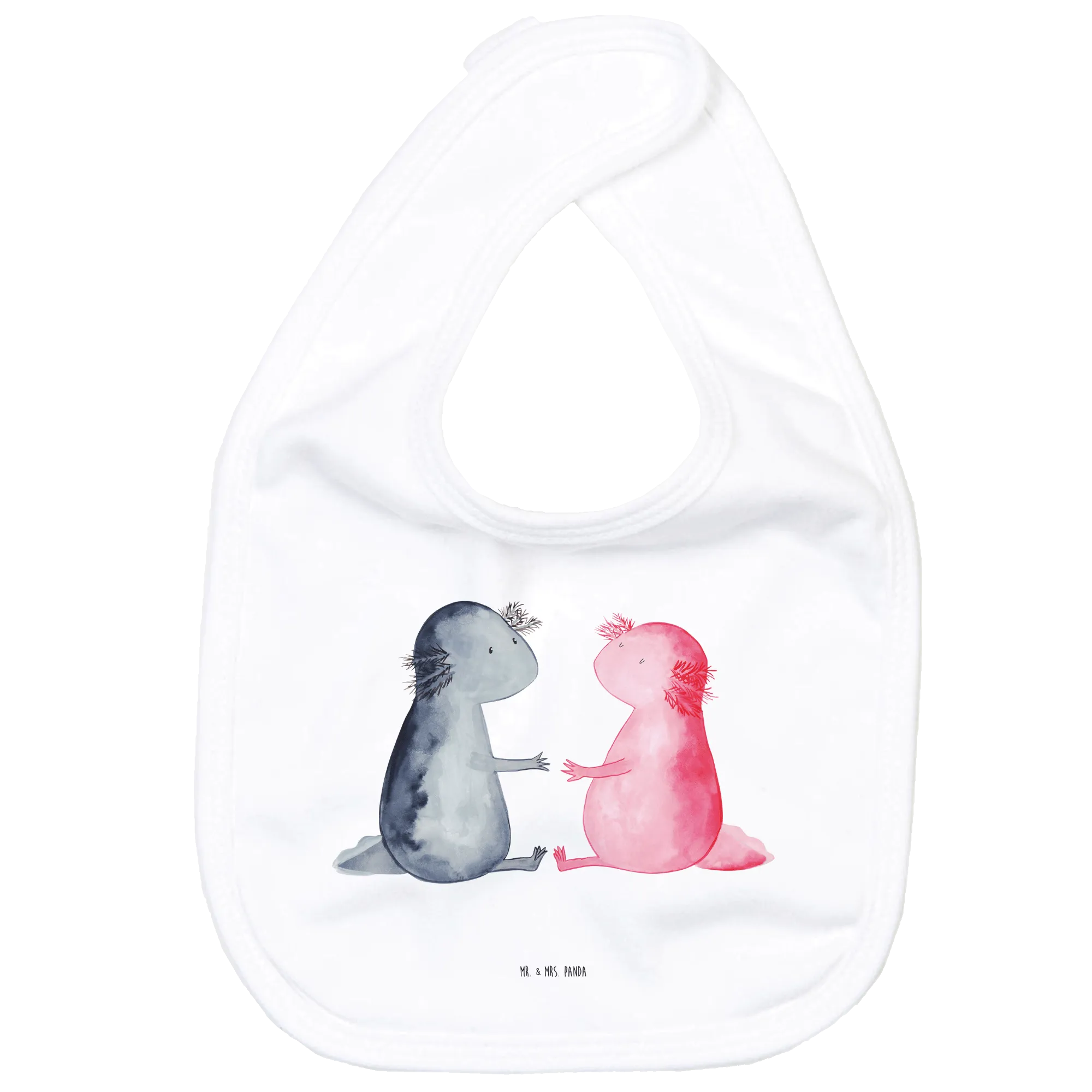 Das Organic Babylätzchen mit dem Motiv Axolotl Liebe von Mr. & Mrs. Panda ist der perfekte Begleiter für kleine Esser und Spucktücher.