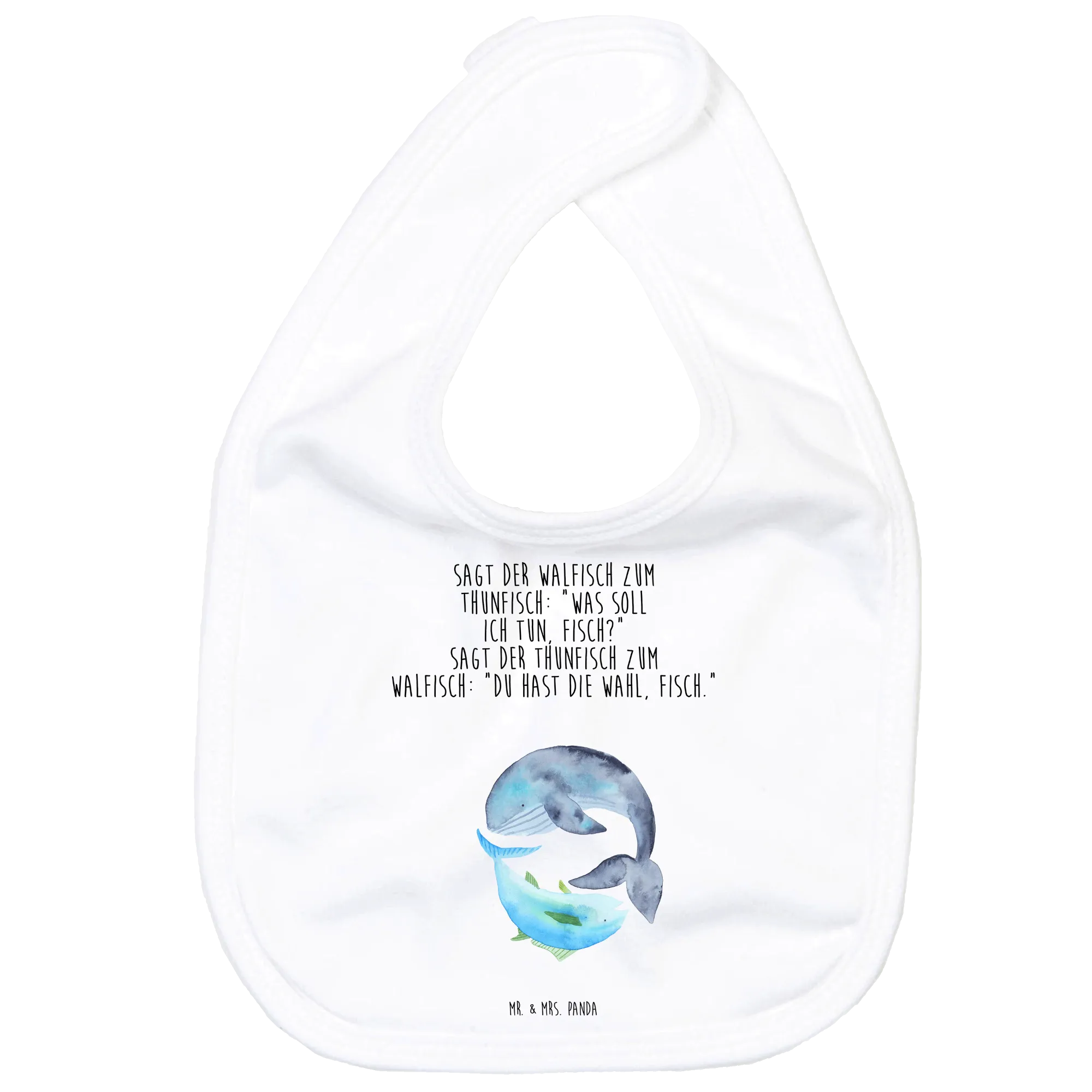 Mit dem lustigen Spruch „Sagt der Walfisch zum Thunfisch: ‚Was soll ich tun, Fisch?‘ Sagt der Thunfisch zum Walfisch: ‚Du hast die Wahl, Fisch.‘“ zaubert es jedem ein Lächeln ins Gesicht. Die sanften Farben und das maritime Design bringen gute Laune in jede Mahlzeit und machen das Füttern zum Vergnügen.