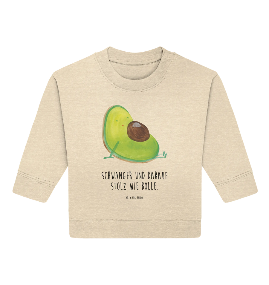 Der Organic Baby Pullover "Avocado schwanger" aus der Avocado Kollektion von Mr. & Mrs. Panda ist das perfekte Geschenk für werdende Eltern und eine liebevolle Überraschung zur Babyparty oder Babyshower. Mit seinem süßen Design zeigt der Pullover eine fröhliche Avocado, die stolz auf ihren dicken Kern blickt – ein liebevolles Symbol für die Schwangerschaft und die Vorfreude auf das neue Leben.
