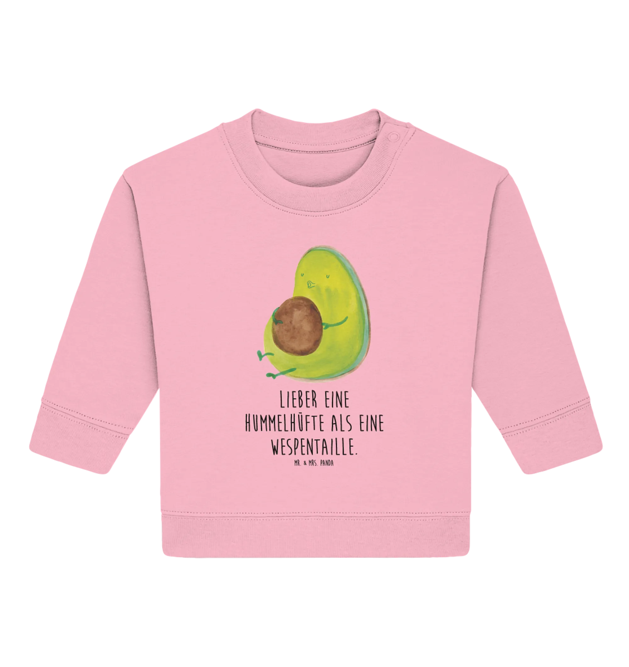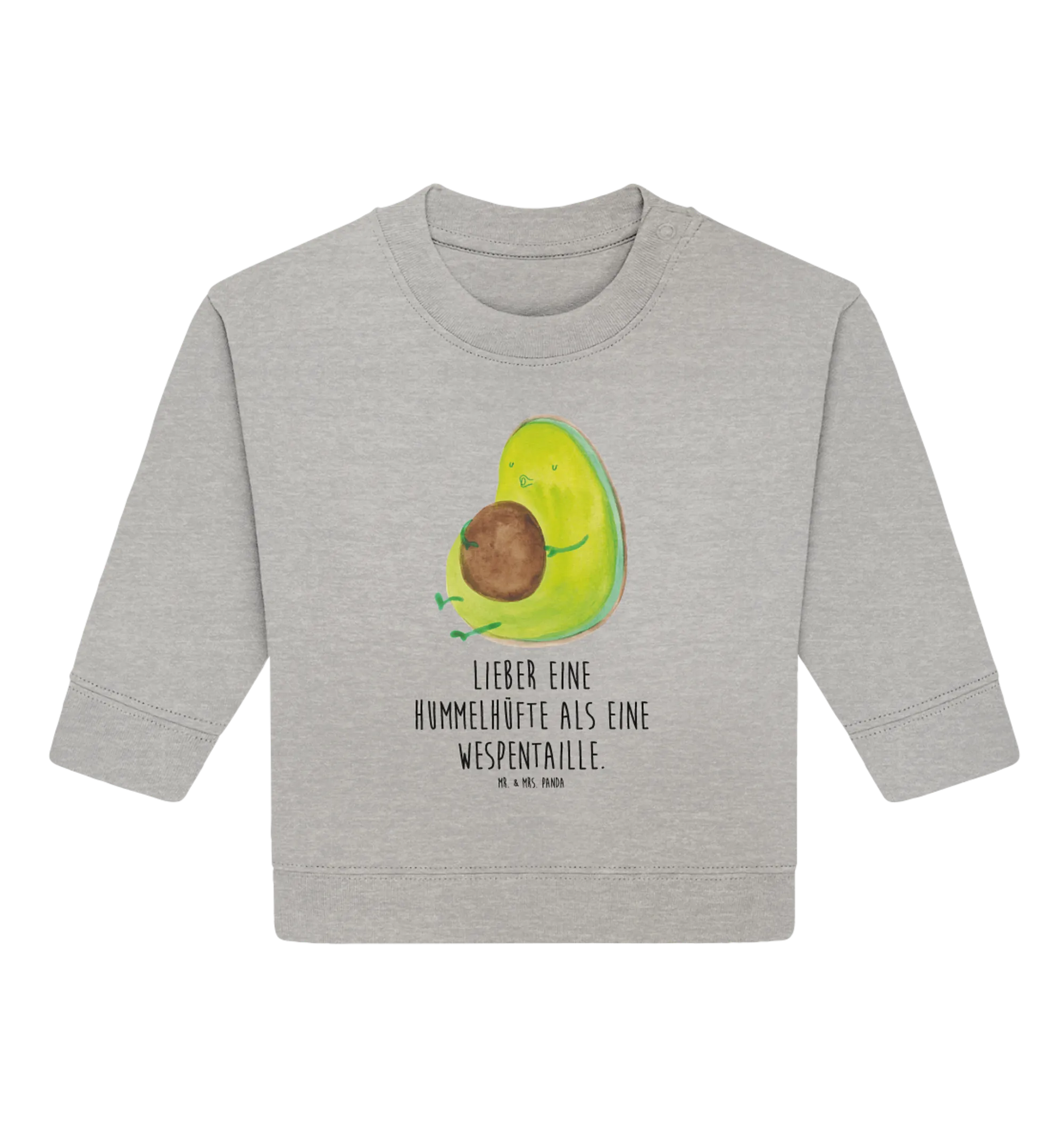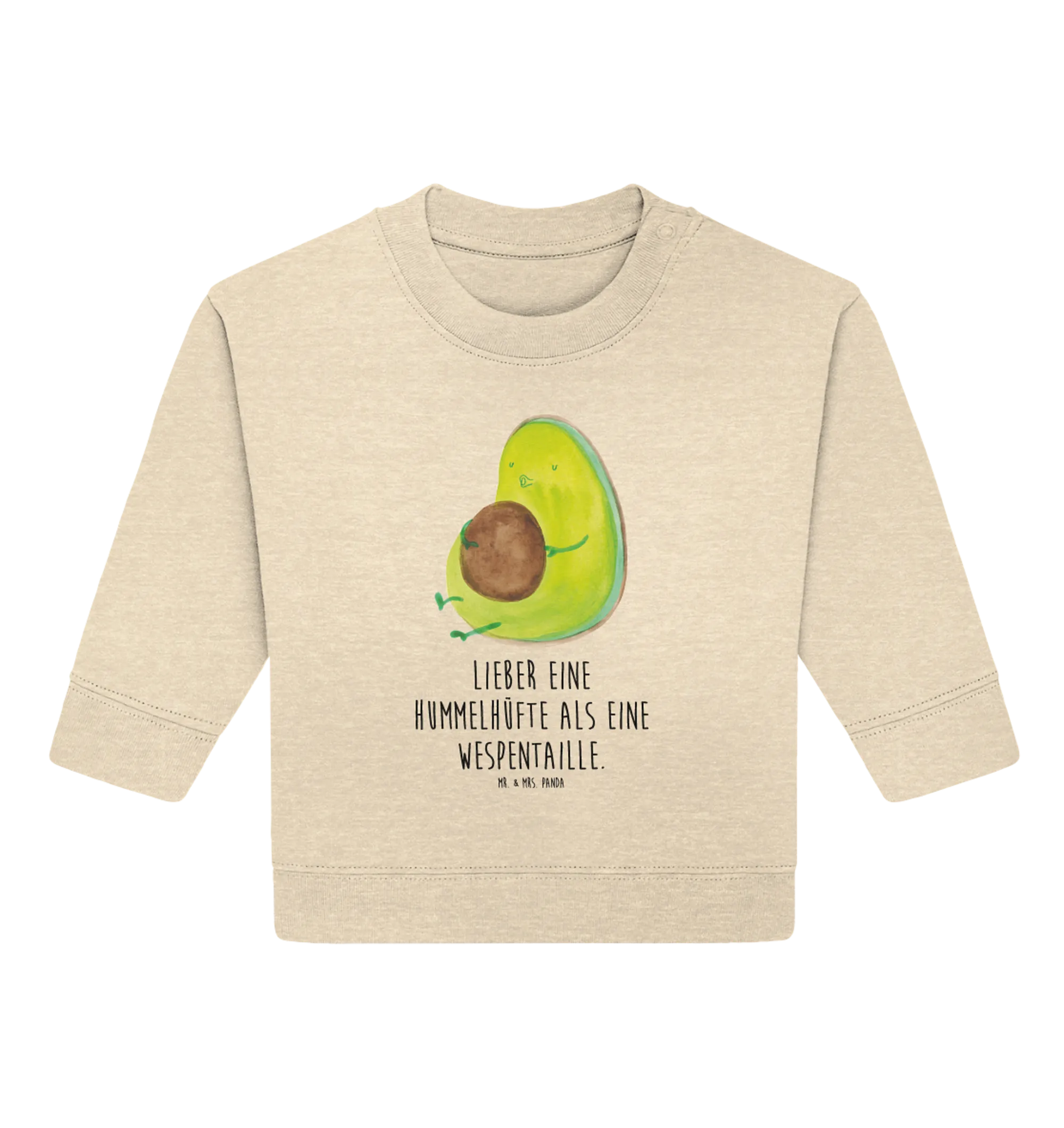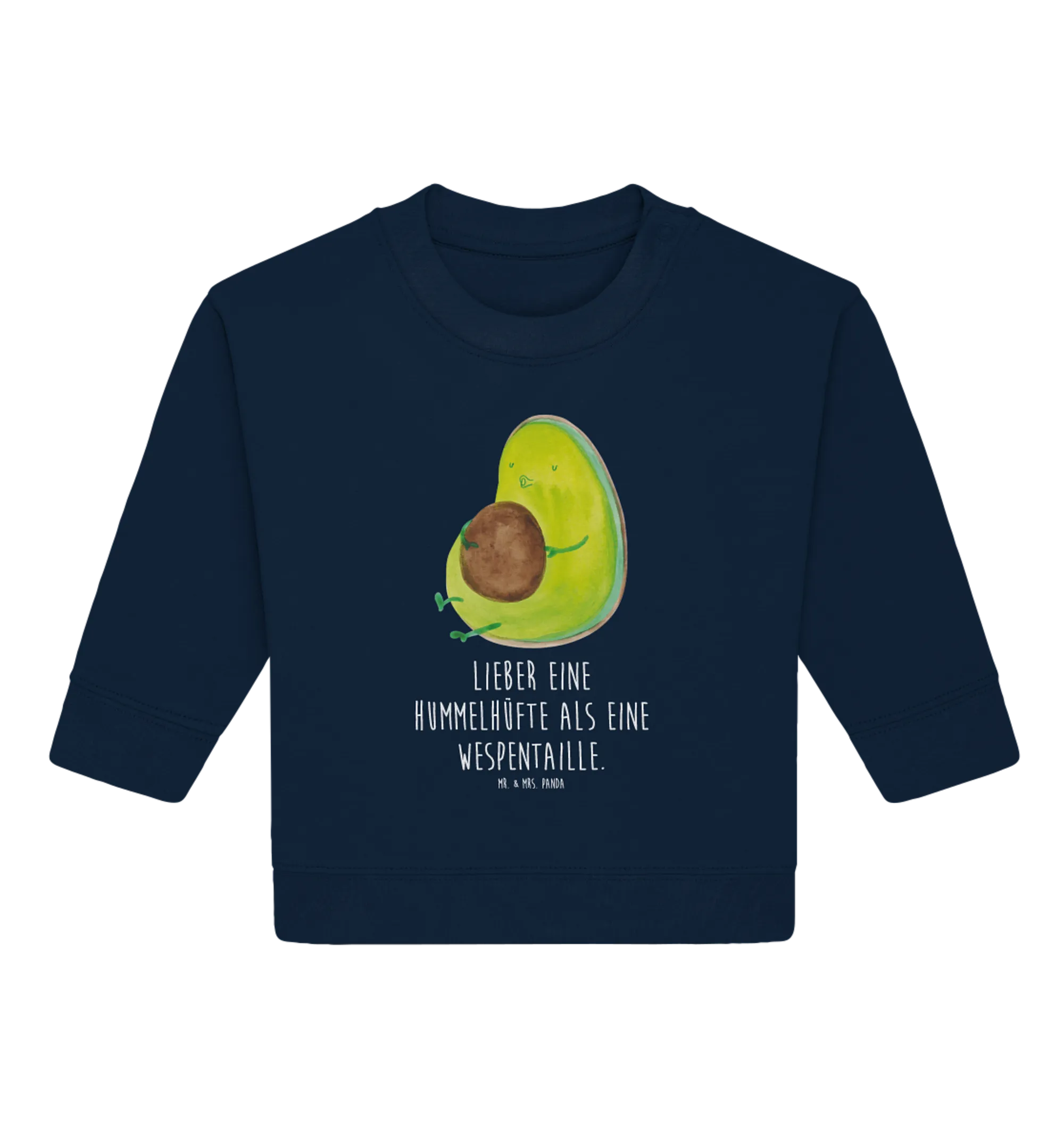 Der Organic Baby Pullover "Avocado pfeift" aus der wundervollen Avocado Kollektion von Mr. & Mrs. Panda ist das perfekte Geschenk für alle kleinen Erdenbürger, die bereits voller Lebensfreude stecken und Herrchen und Frauchen zum Schmunzeln bringen. Die süße Avocado, die fröhlich pfeift und ihren dicken Kern lässig zur Schau stellt, ist nicht nur ein echter Blickfang, sondern bringt auch eine positive Botschaft mit sich! Mit dem Slogan "Lieber eine Hummelhüfte als eine Wespentaille" sorgt er für humorvolle Begeisterung und ermuntert zu einer gesunden Einstellung zum Körper.