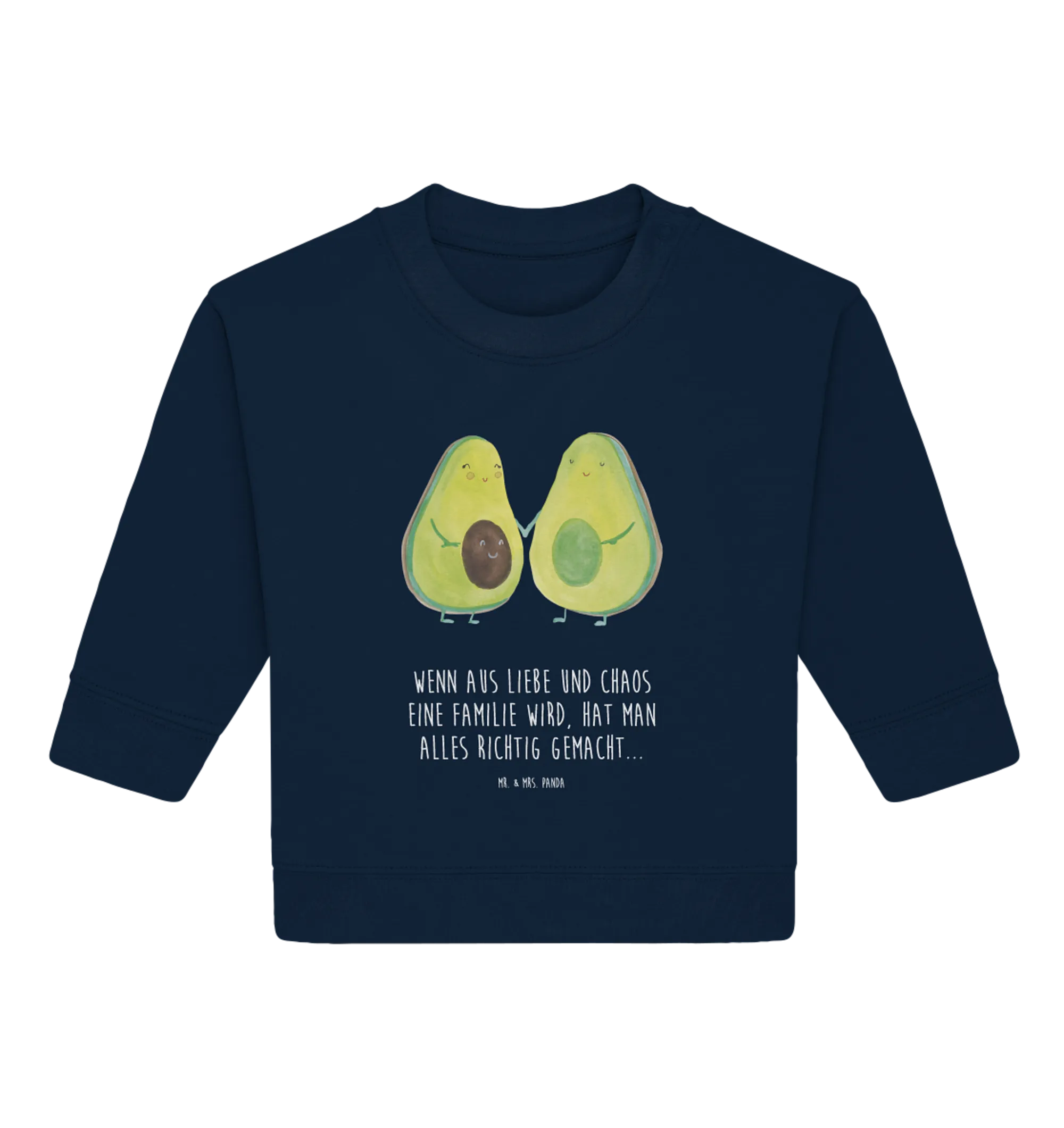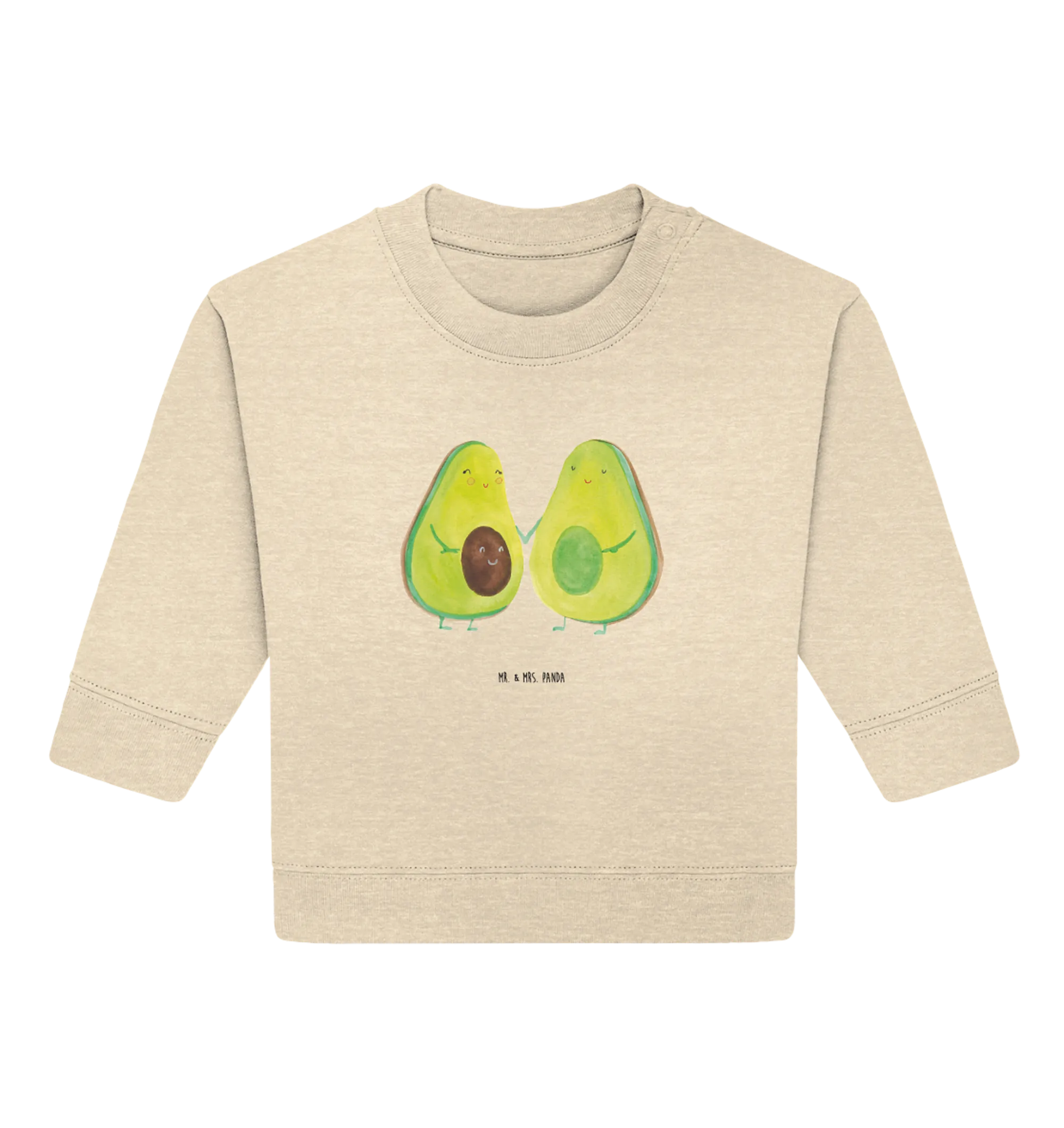 Entdecke den bezaubernden Organic Baby Pullover mit dem süßen Avocado Pärchen von Mr. & Mrs. Panda – das perfekte Geschenk für kleine Erdenbürger und ihre Familien. Dieser Pullover bringt nicht nur Freude, sondern steht auch für die wunderbare Verbindung zwischen Eltern und ihren Kindern. Das süße Motiv zeigt ein verliebtes Avocado Pärchen, das sich an den Händen hält und sich verliebt anschaut.