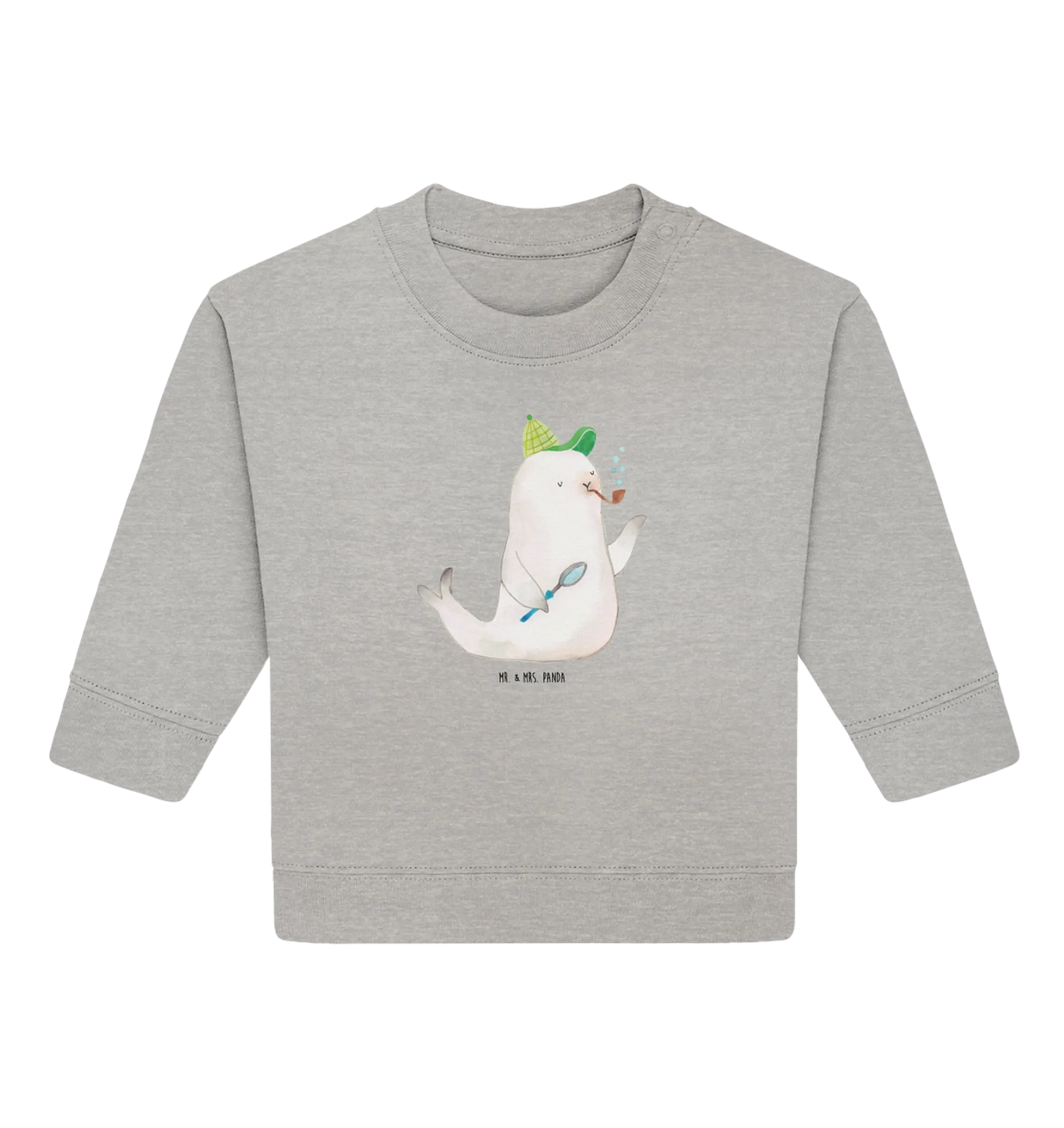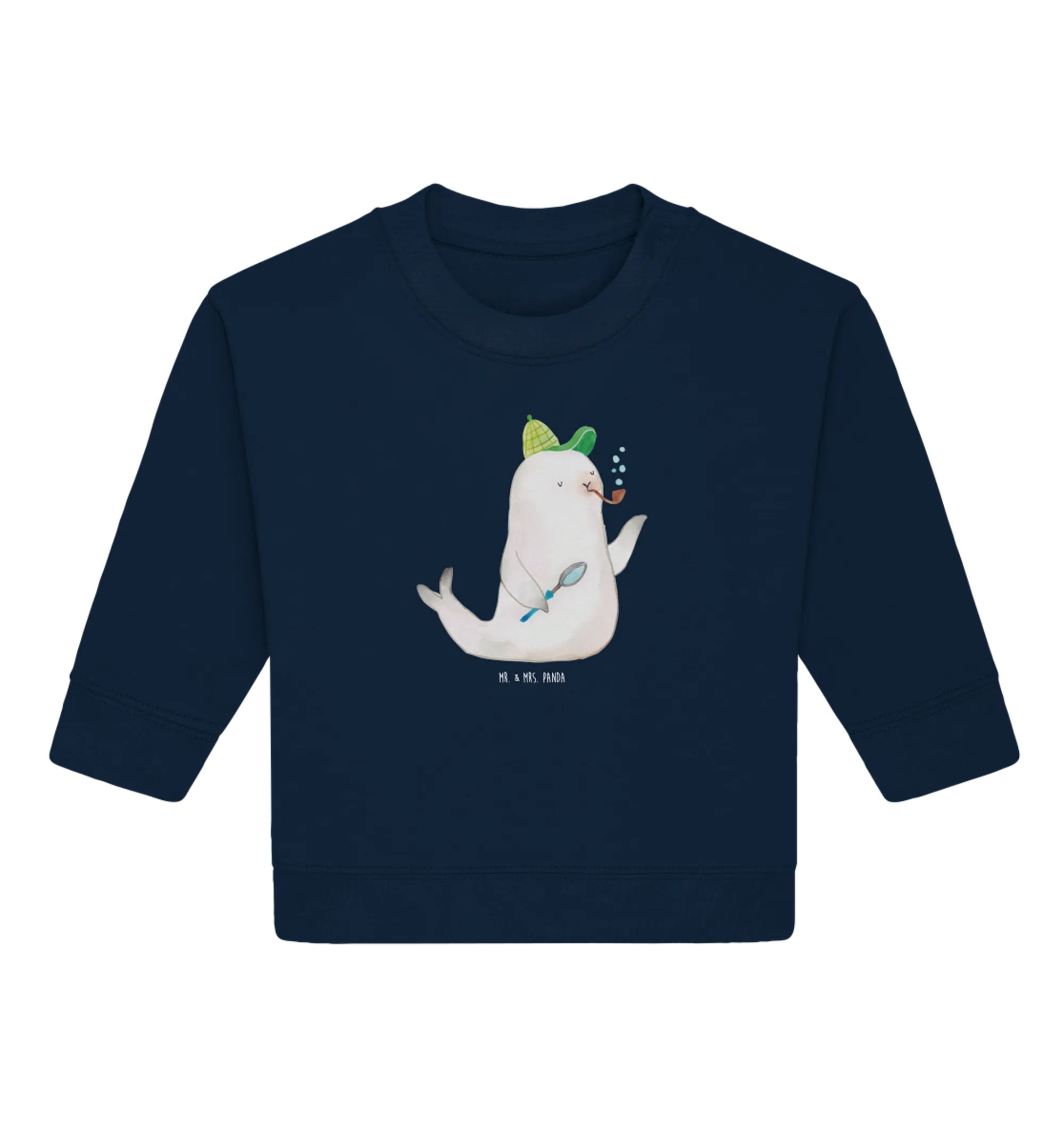Stell dir vor, wie dein kleiner Schatz in diesem süßen Pullover fröhlich durch die Welt läuft, die Natur erkundet oder mit anderen kleinen Freunden spielt. Mit dem Robbe Sherlock Motiv bringst du ganz sicher Gute Laune ins Spiel. Dank der handgezeichneten Illustrationen von Mrs. Panda in Aquarelltechnik ist jeder Pullover ein kleines Kunstwerk für sich.