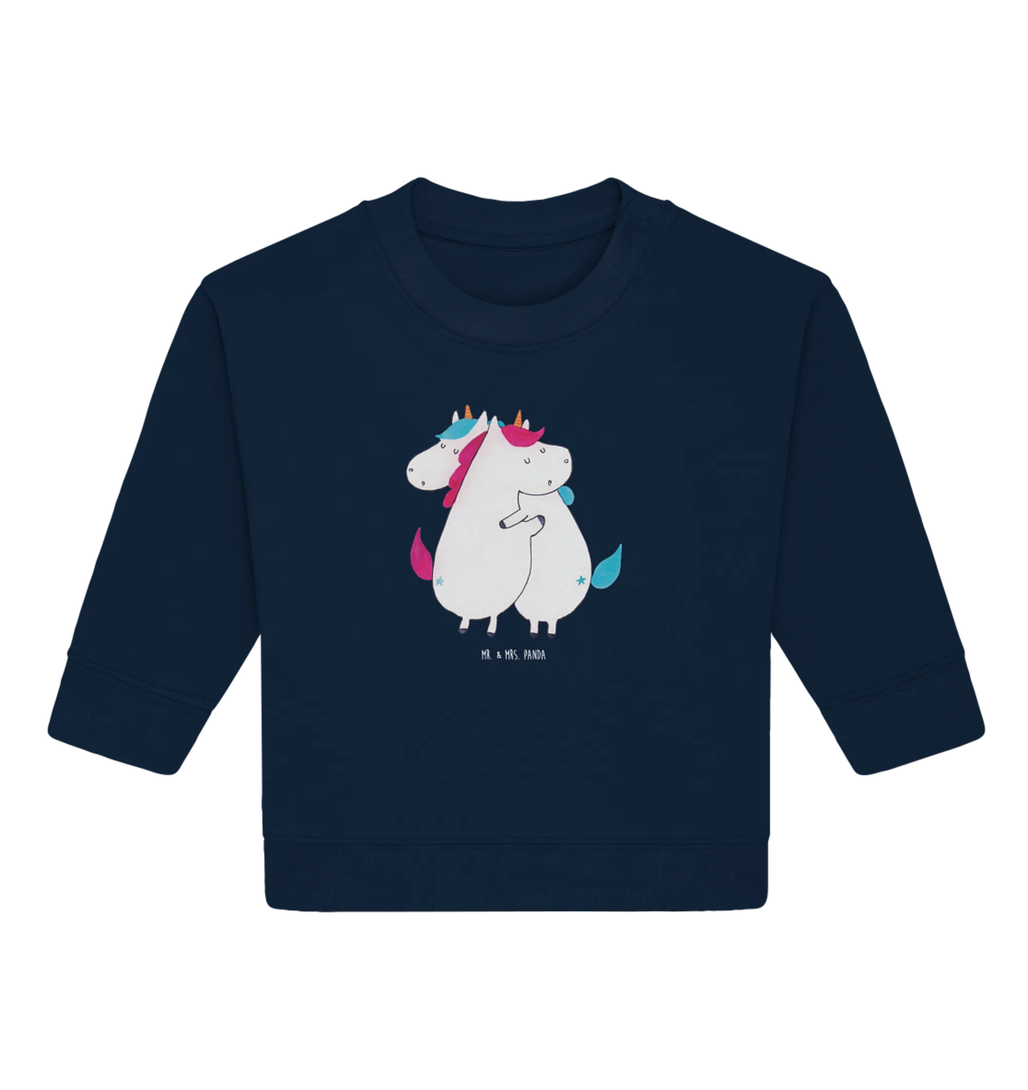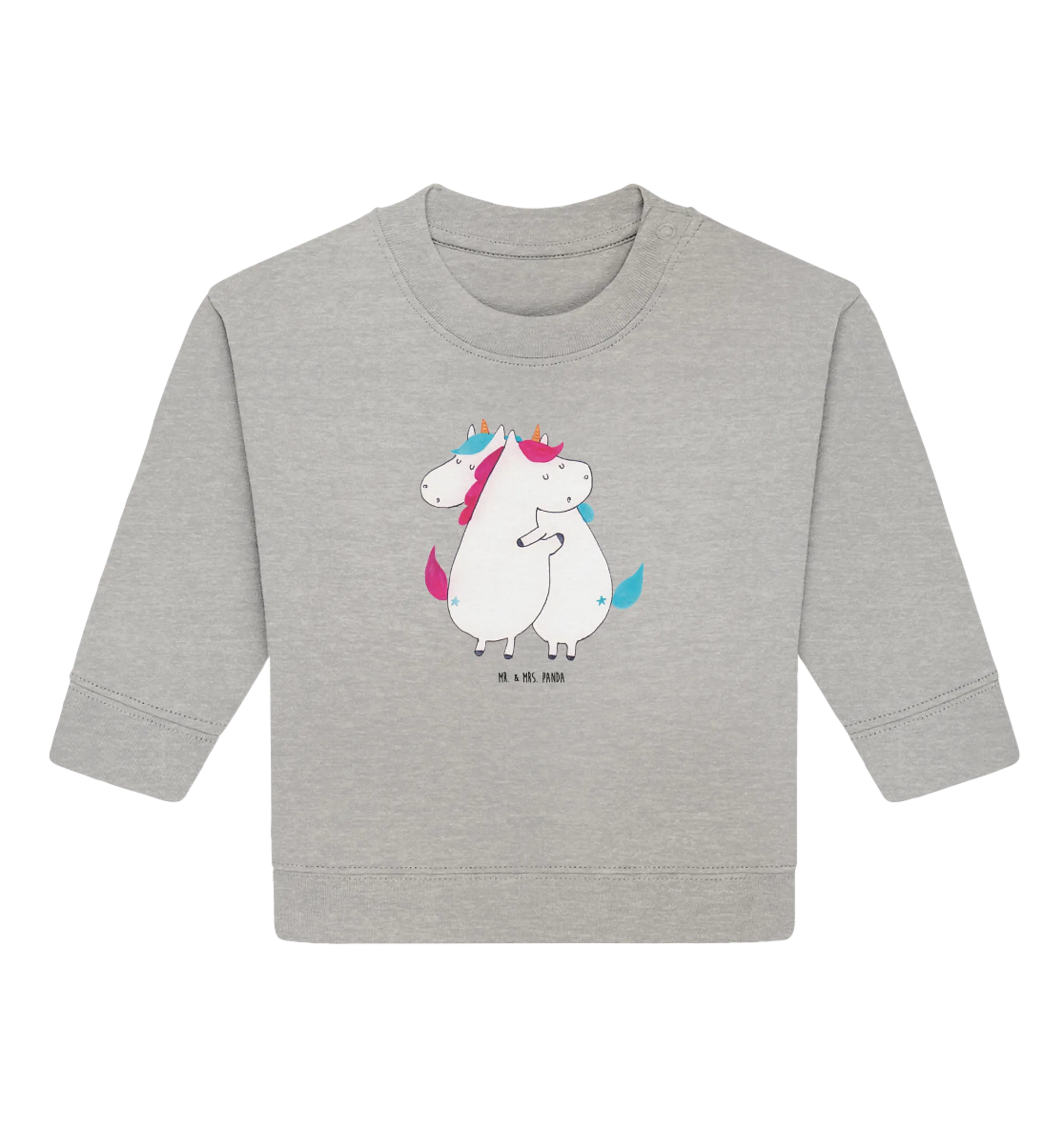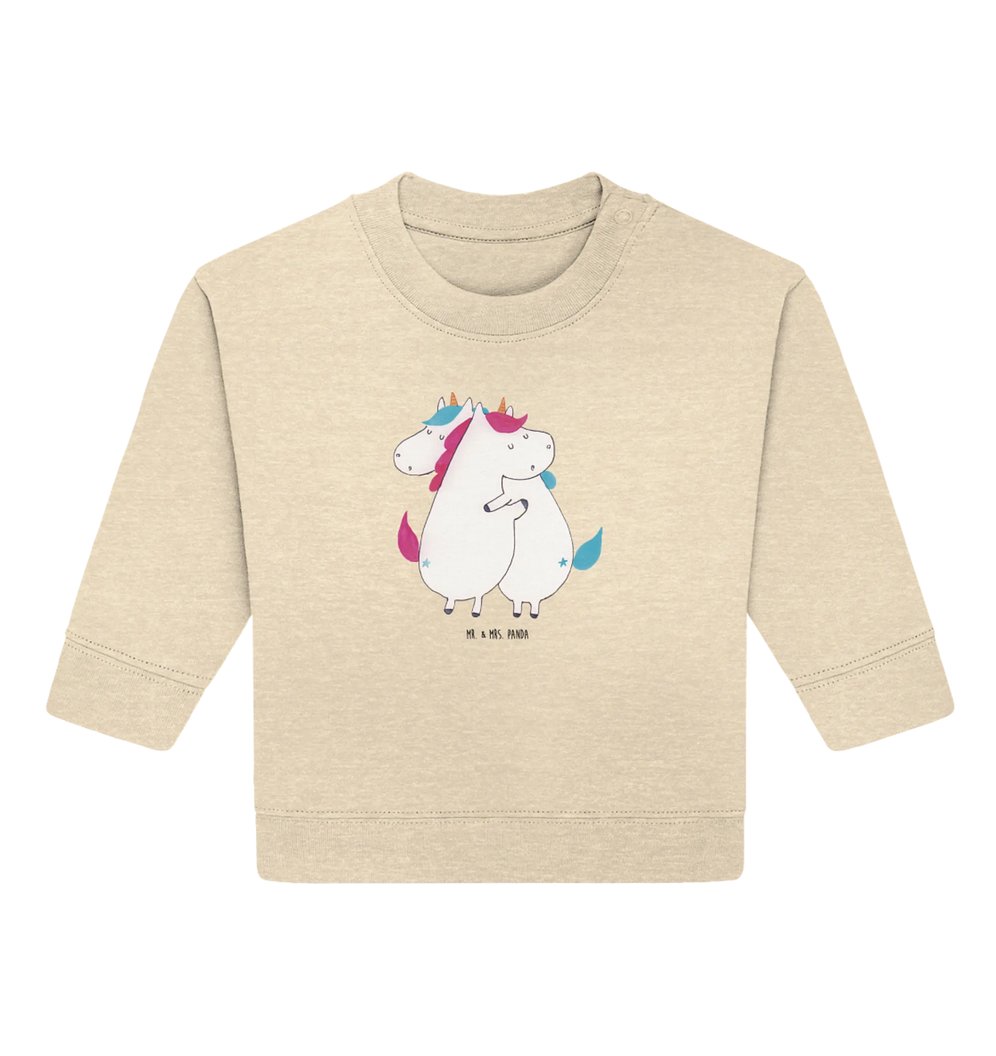 Der Organic Baby Pullover mit dem süßen Motiv 'Einhörner Umarmen' aus der bezaubernden Einhorn-Kollektion von Mr. & Mrs. Panda ist das perfekte Geschenk für deine kleinen Lieblingsmenschen! Wenn du auf der Suche nach einem besonderen Kleidungsstück für dein Baby oder als Geschenk für die beste Freundin, Schwester oder für Geschwister bist, dann hast du hier das ideale Produkt gefunden.