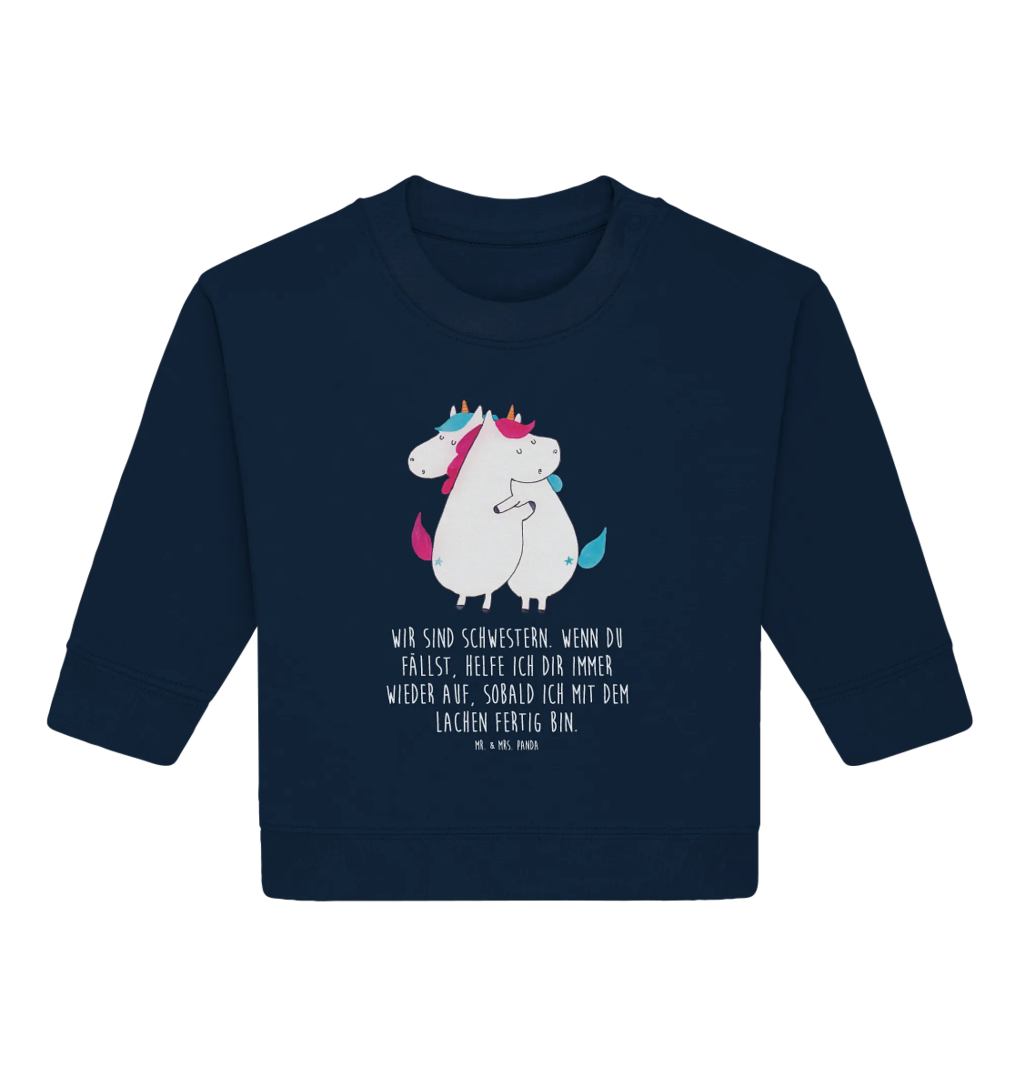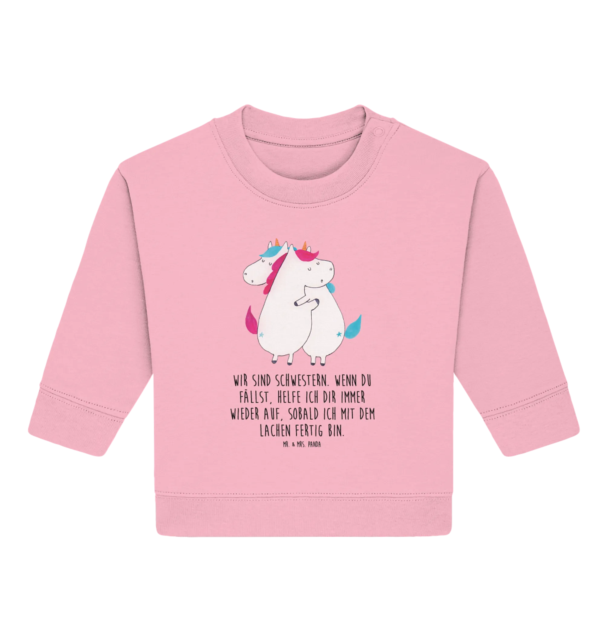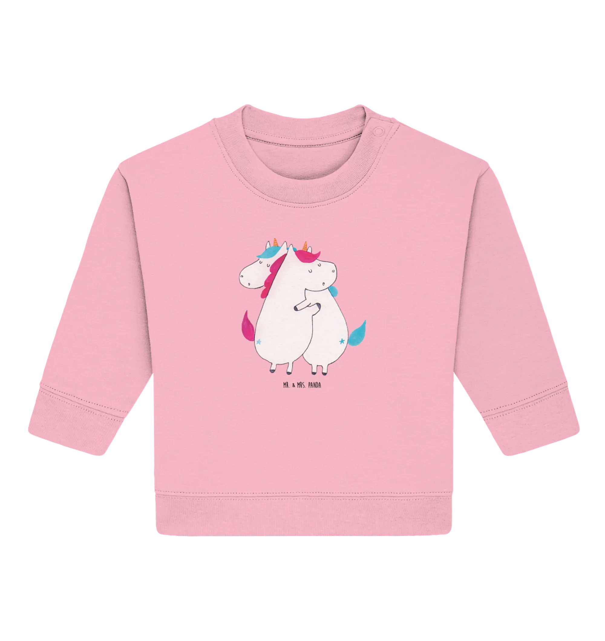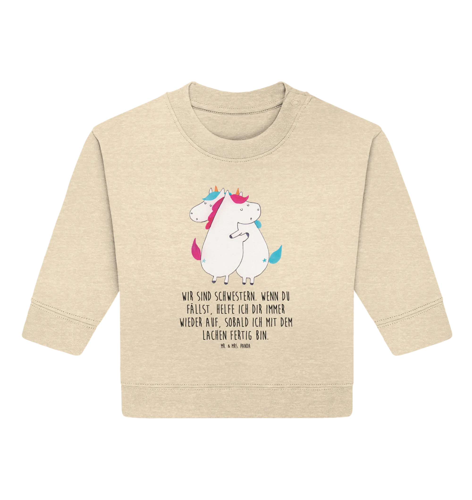 Der Organic Baby Pullover mit dem süßen Motiv 'Einhörner Umarmen' aus der bezaubernden Einhorn-Kollektion von Mr. & Mrs. Panda ist das perfekte Geschenk für deine kleinen Lieblingsmenschen! Wenn du auf der Suche nach einem besonderen Kleidungsstück für dein Baby oder als Geschenk für die beste Freundin, Schwester oder für Geschwister bist, dann hast du hier das ideale Produkt gefunden.