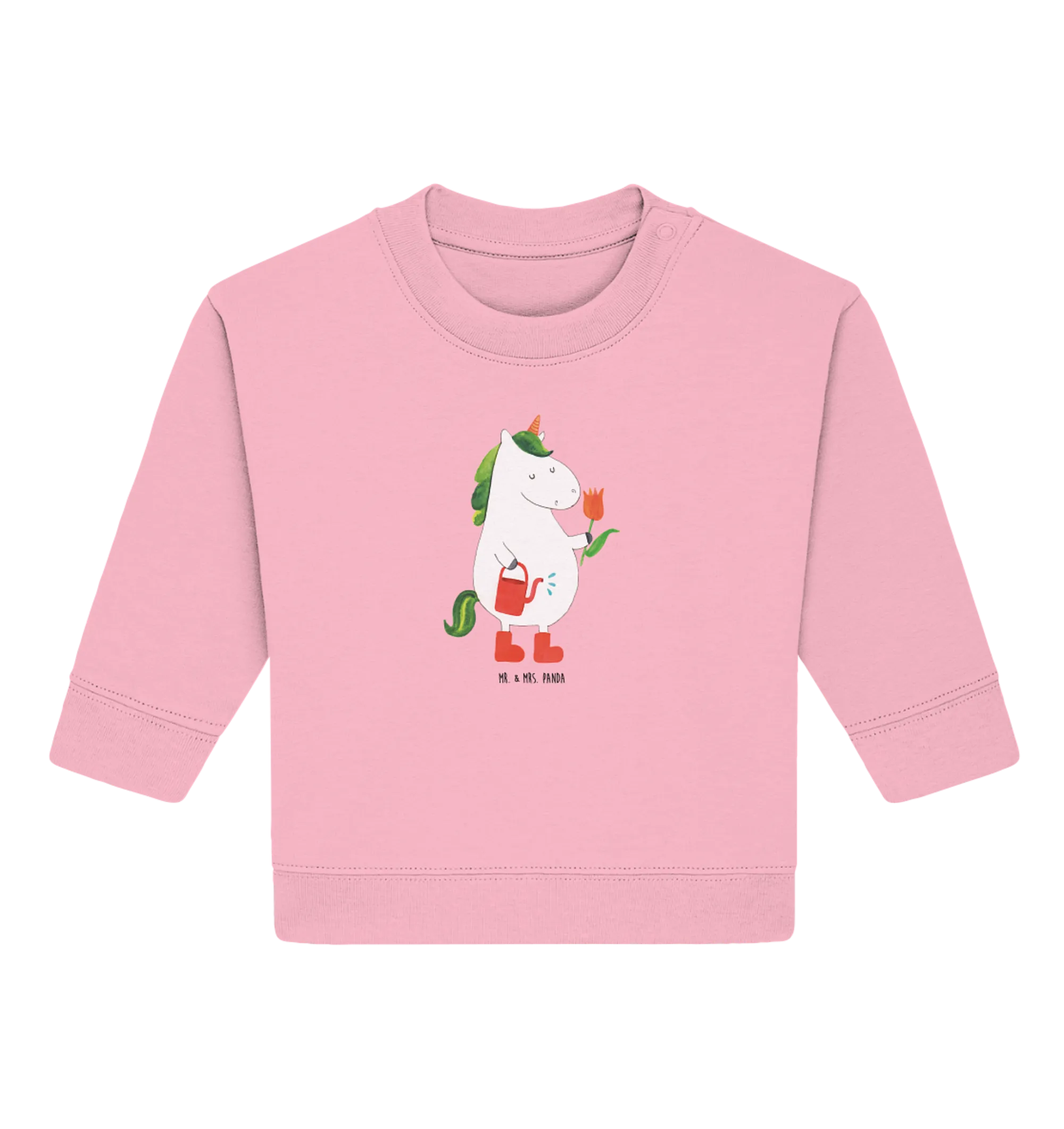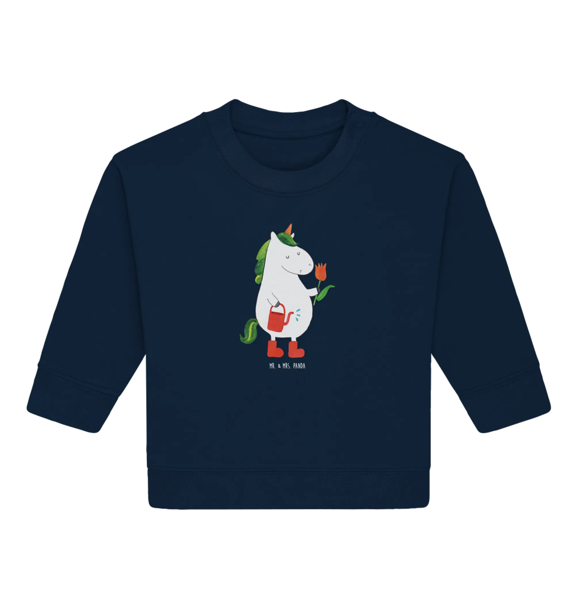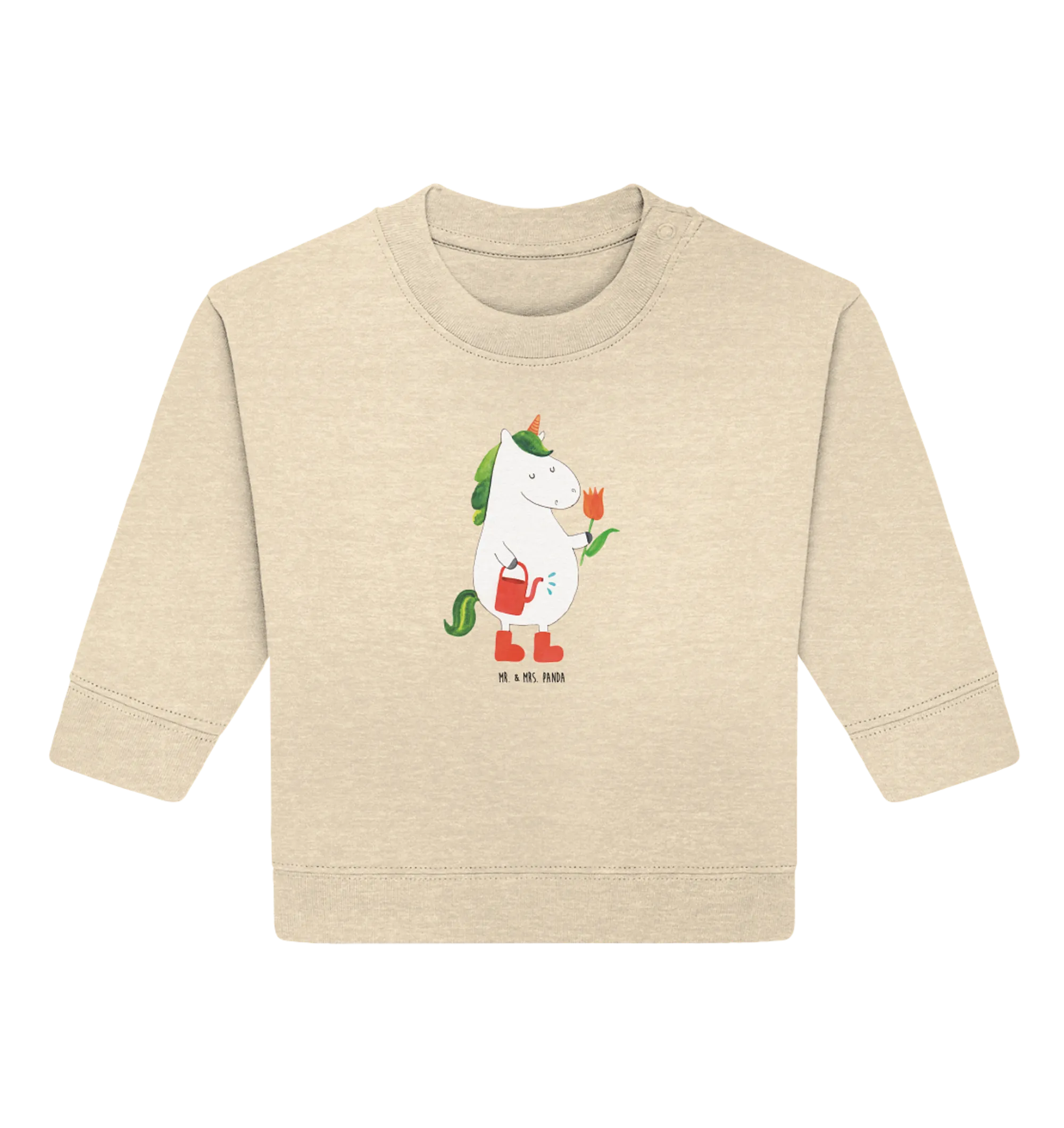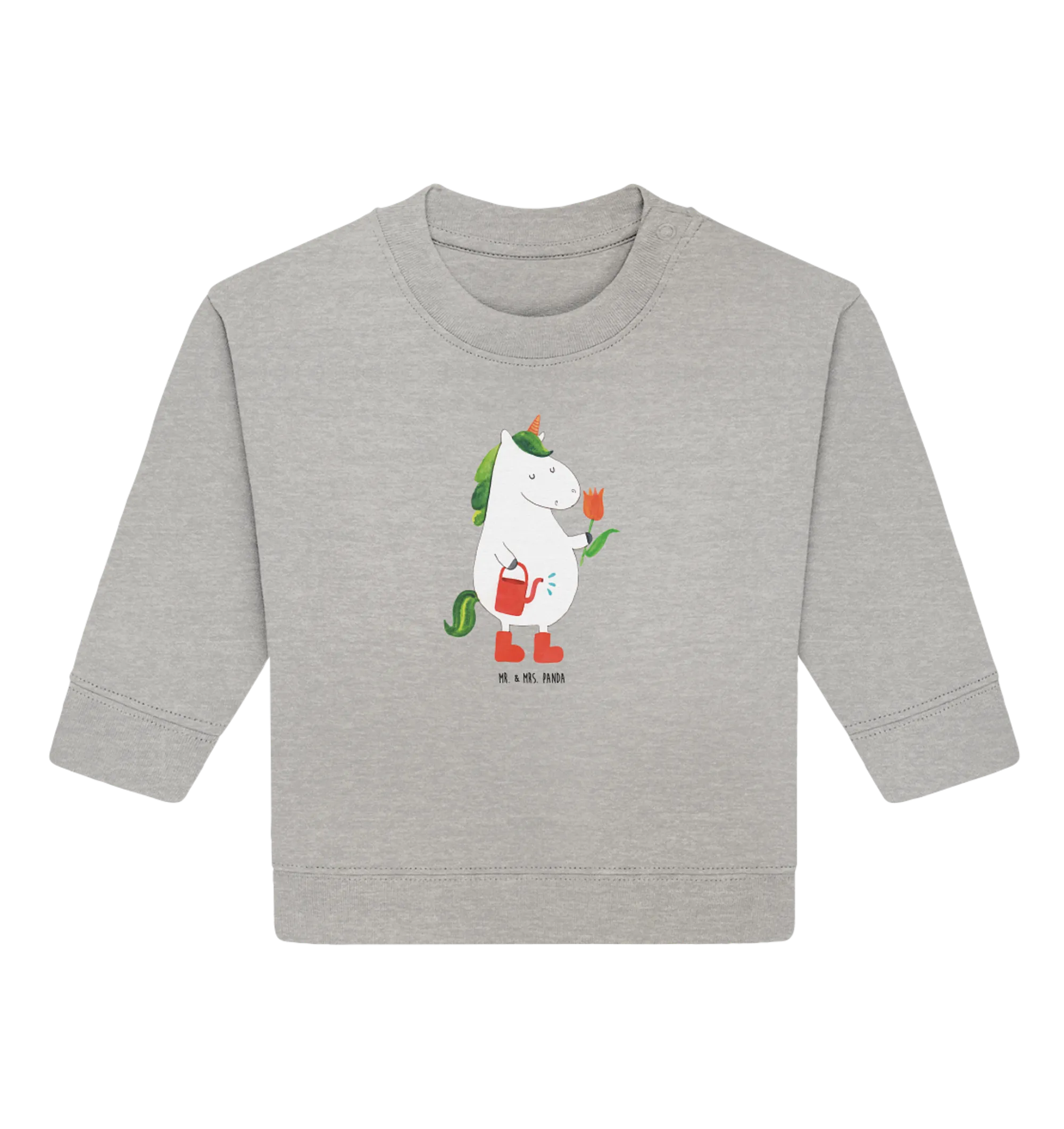 Der Organic Baby Pullover Einhorn Gärtner aus der Einhorn-Kollektion von Mr. & Mrs. Panda ist das perfekte Geschenk für kleine Einhorn-Fans! Hergestellt aus hochwertiger, ökologischer Baumwolle, ist dieser Baby Pullover nicht nur super weich und angenehm auf der Haut, sondern auch umweltfreundlich. Das niedliche Motiv mit einem Einhorn, das Blumen gießt, zaubert jedem ein Lächeln ins Gesicht und bringt Lebensfreude ins Kinderzimmer.