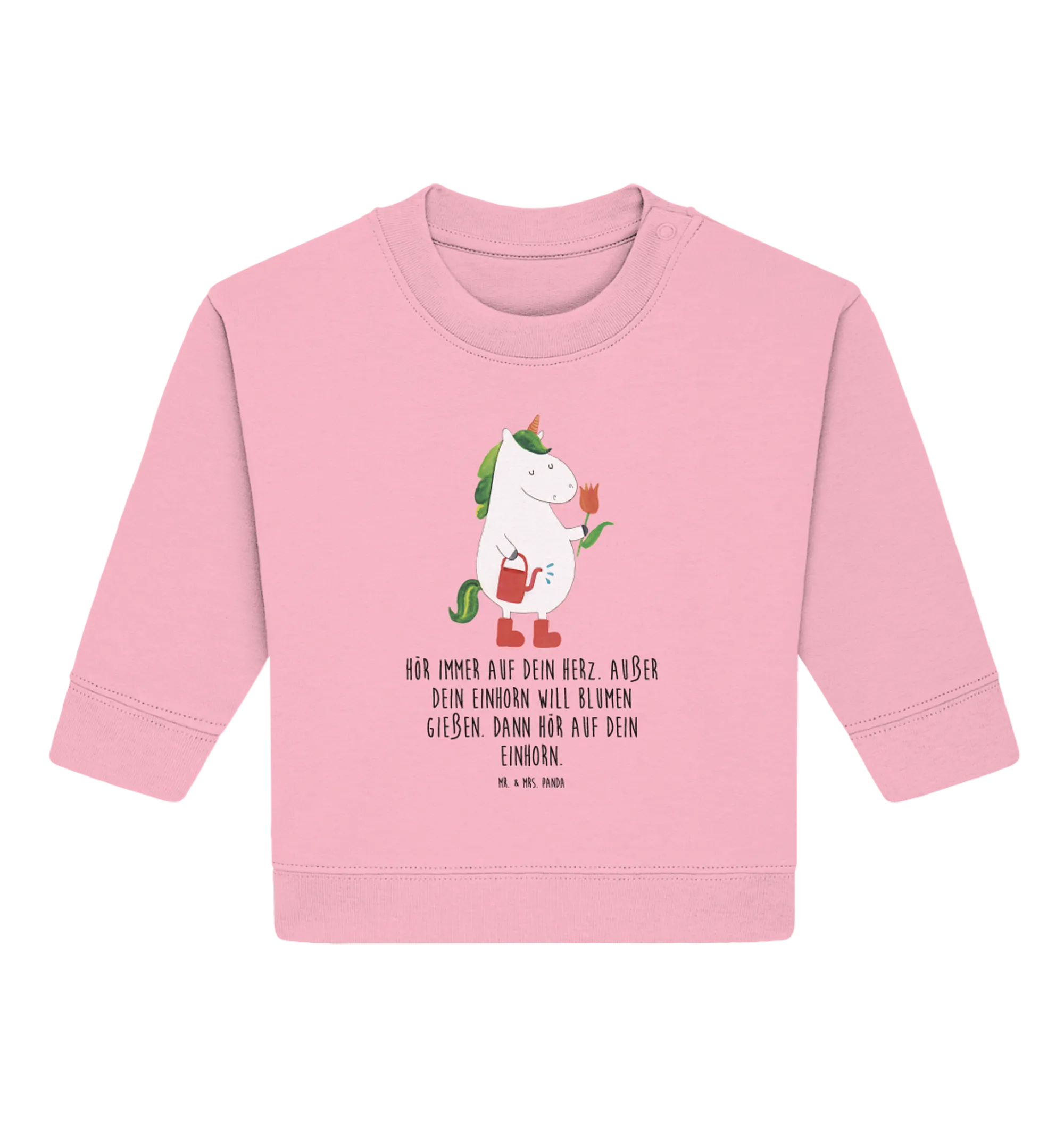 Organiczny sweter dla niemowląt jednorożec ogrodnik Baby Sweatshirt, Baby Bullover, Einhorn Deko, Einhörner, Einhorn, Unicorn, Freundin, Giesskanne, Gießkanne, Stiefel, Freude, Garten, Luftballon, Lebenslust, Blume