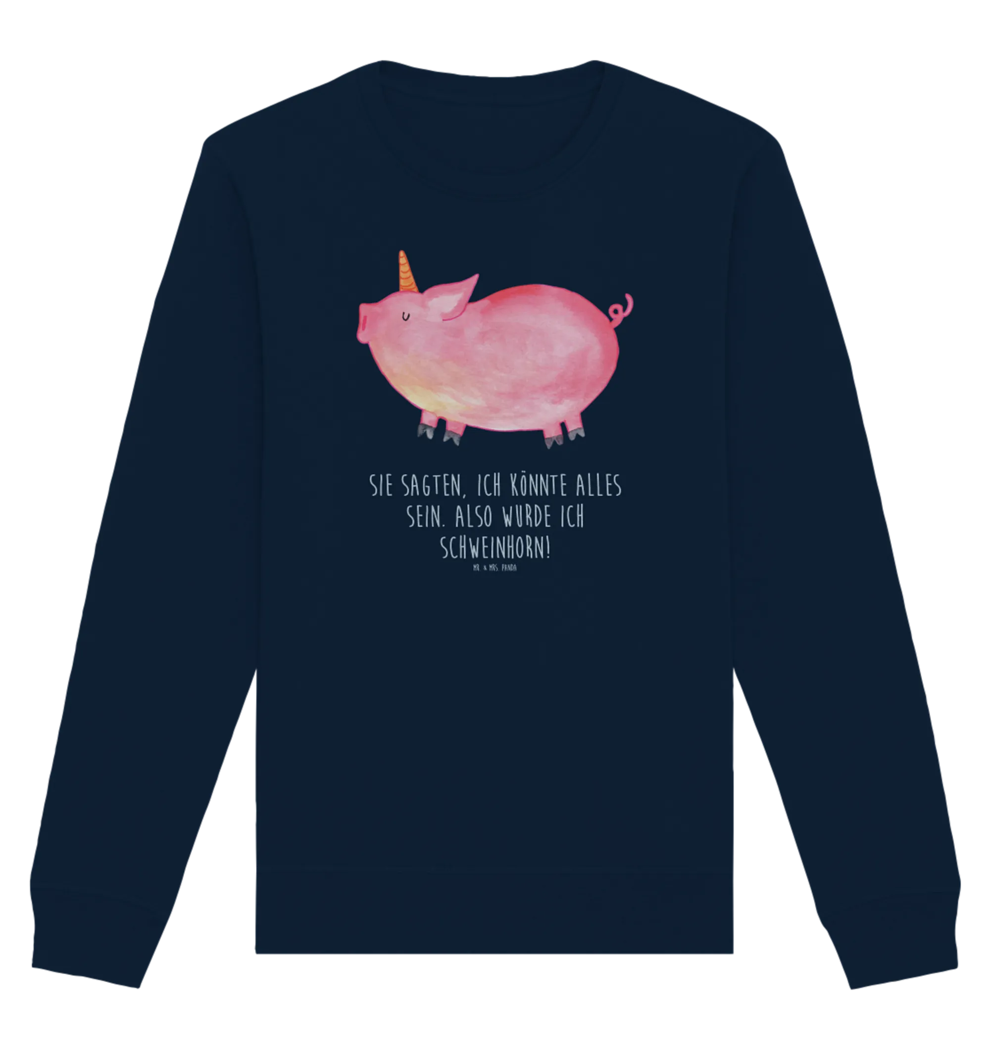 Dieser Pullover in edlem French Navy passt sowohl für Männer als auch Frauen und ist ideal als Sweatshirt für jeden Anlass. Mit dem witzigen Spruch "Sie sagten, ich könnte alles sein. Also wurde ich Schweinhorn!" überzeugt das Design auf lustige Art und Weise.