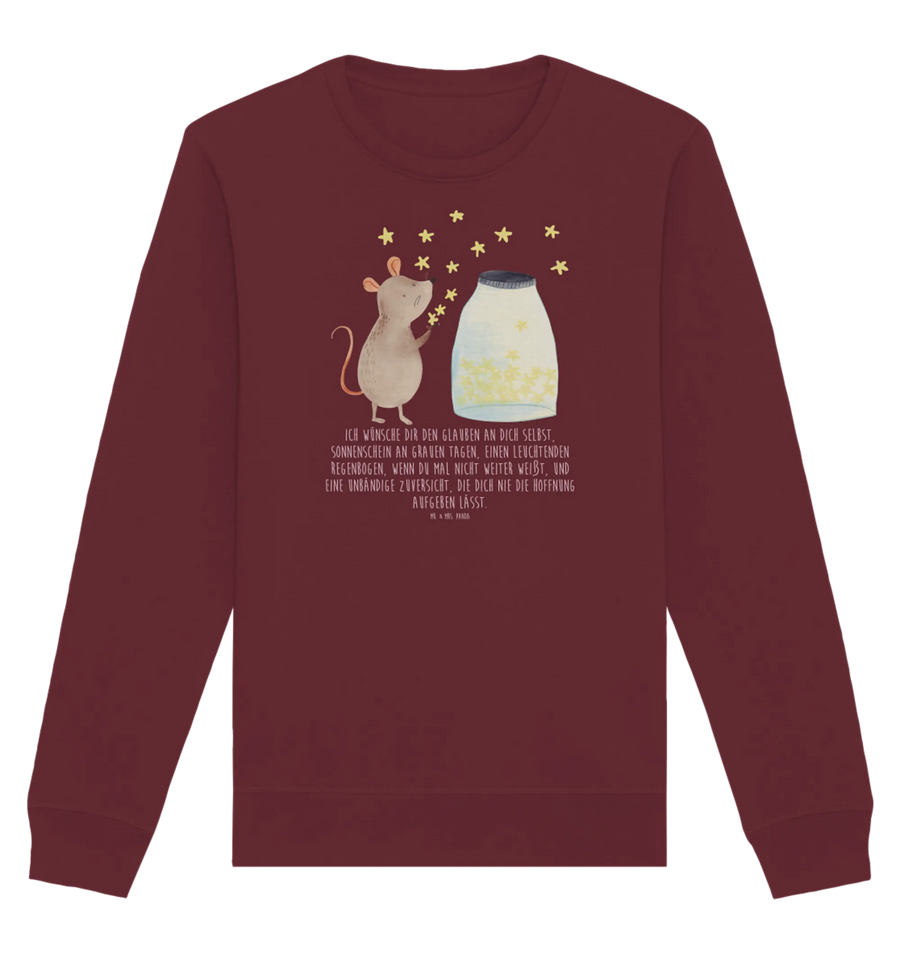 Organiczny Sweter mysz Gwiazdy - Größe XXL - z napisem - Burgundy