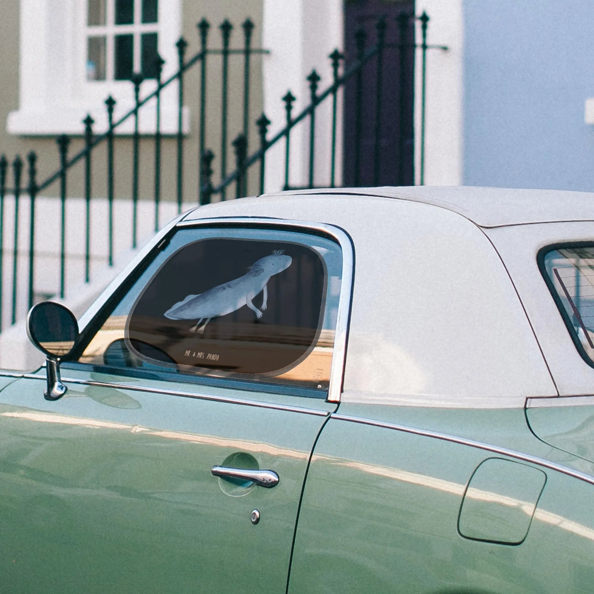 Osłona przeciwsłoneczna do samochodu ajolotl pływanie - z napisem - biały