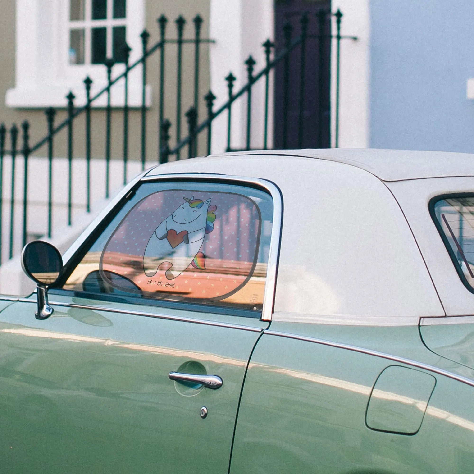 Osłona przeciwsłoneczna do samochodu Jednorożec serce - z napisem - biały