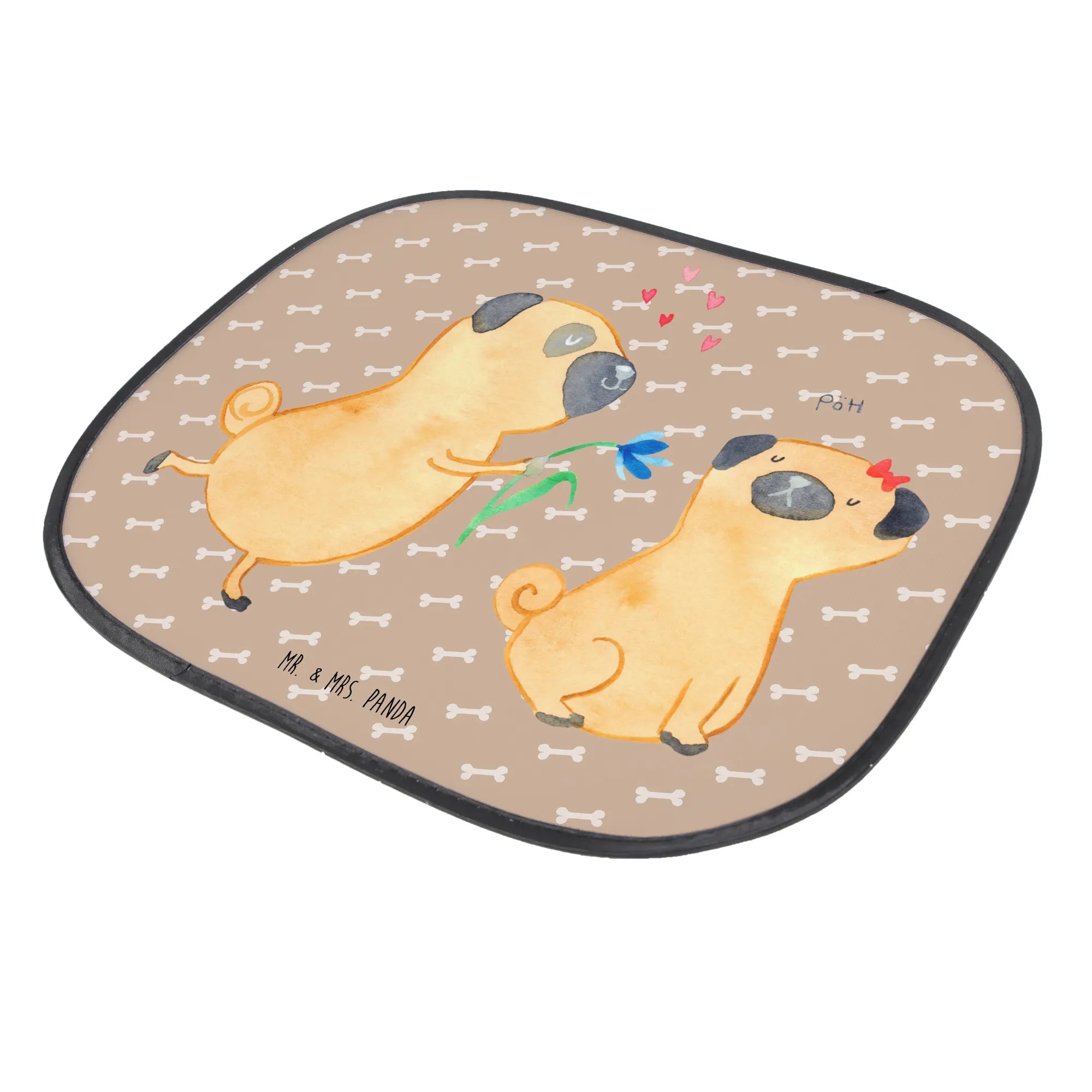 Osłona przeciwsłoneczna do samochodu mops Zakochani - z napisem - biały