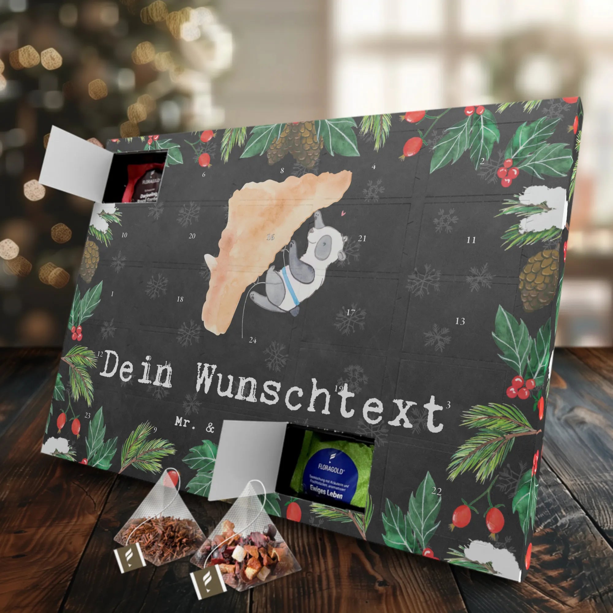 Der personalisierte Tee Adventskalender "Klettern ist meine Medizin" von Mr. & Mrs. Panda ist das perfekte Geschenk für alle Kletterbegeisterten und Sportler. Mit seinen vierundzwanzig unterschiedlichen hochwertigen Teesorten bietet er eine wunderbare Möglichkeit, die Vorweihnachtszeit zu versüßen.
