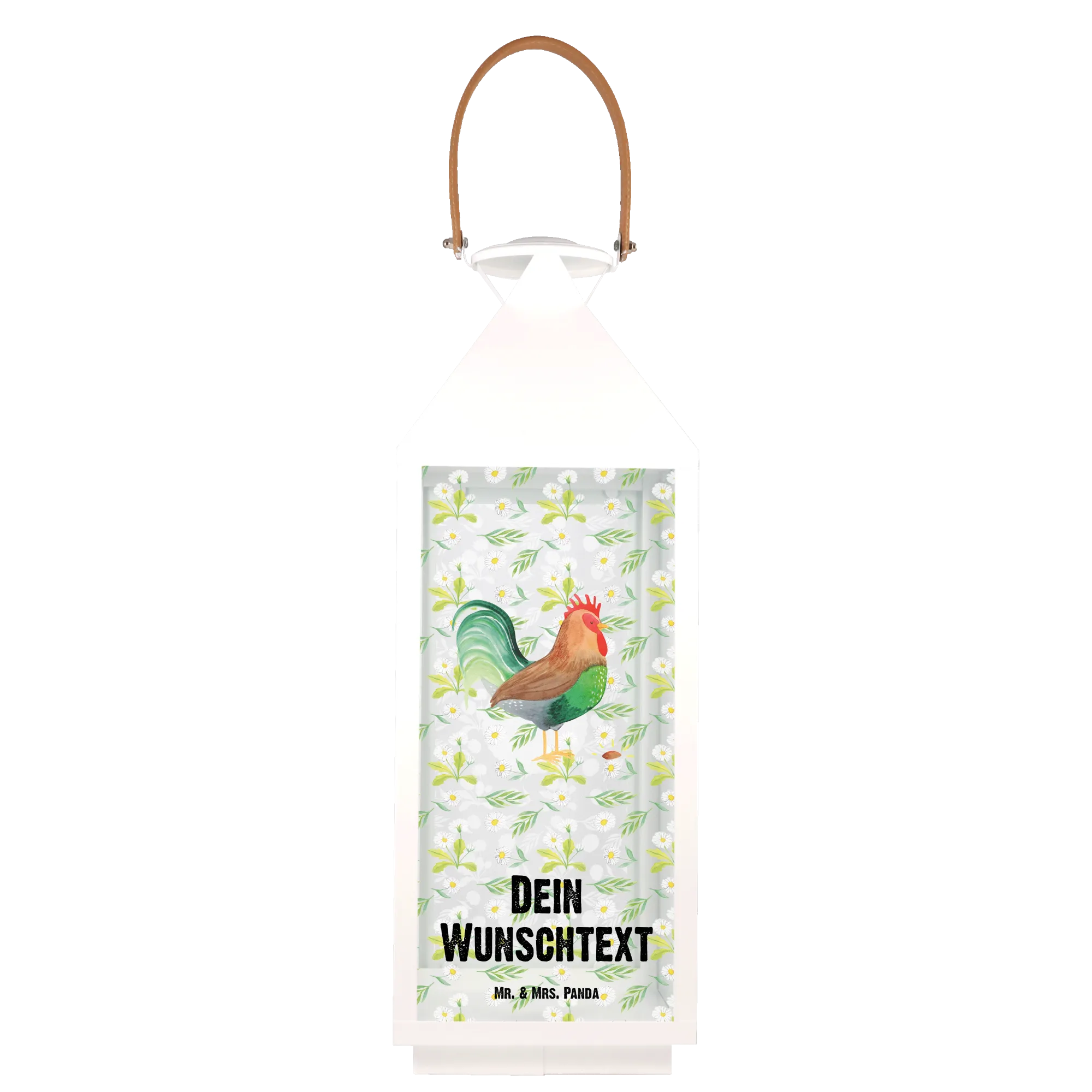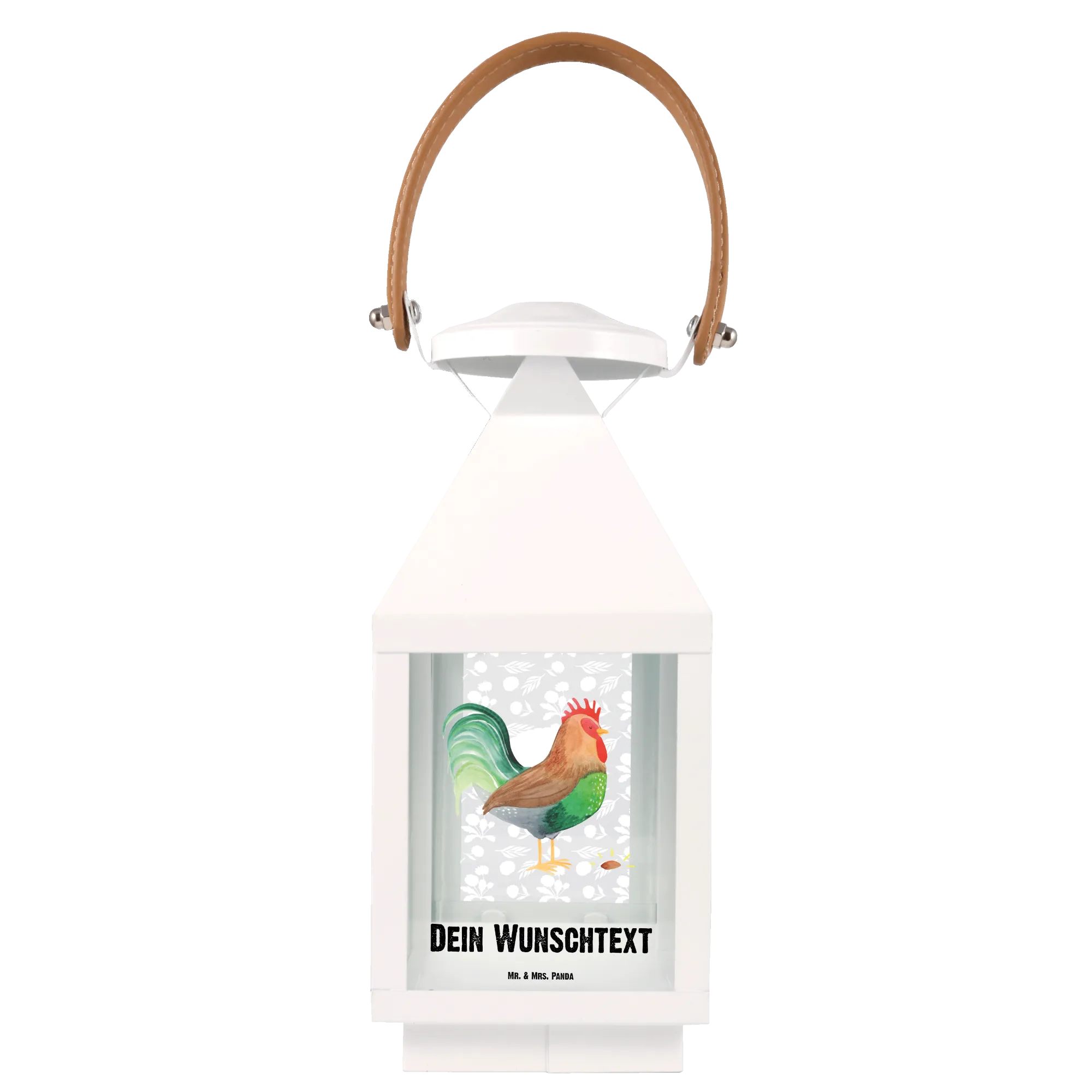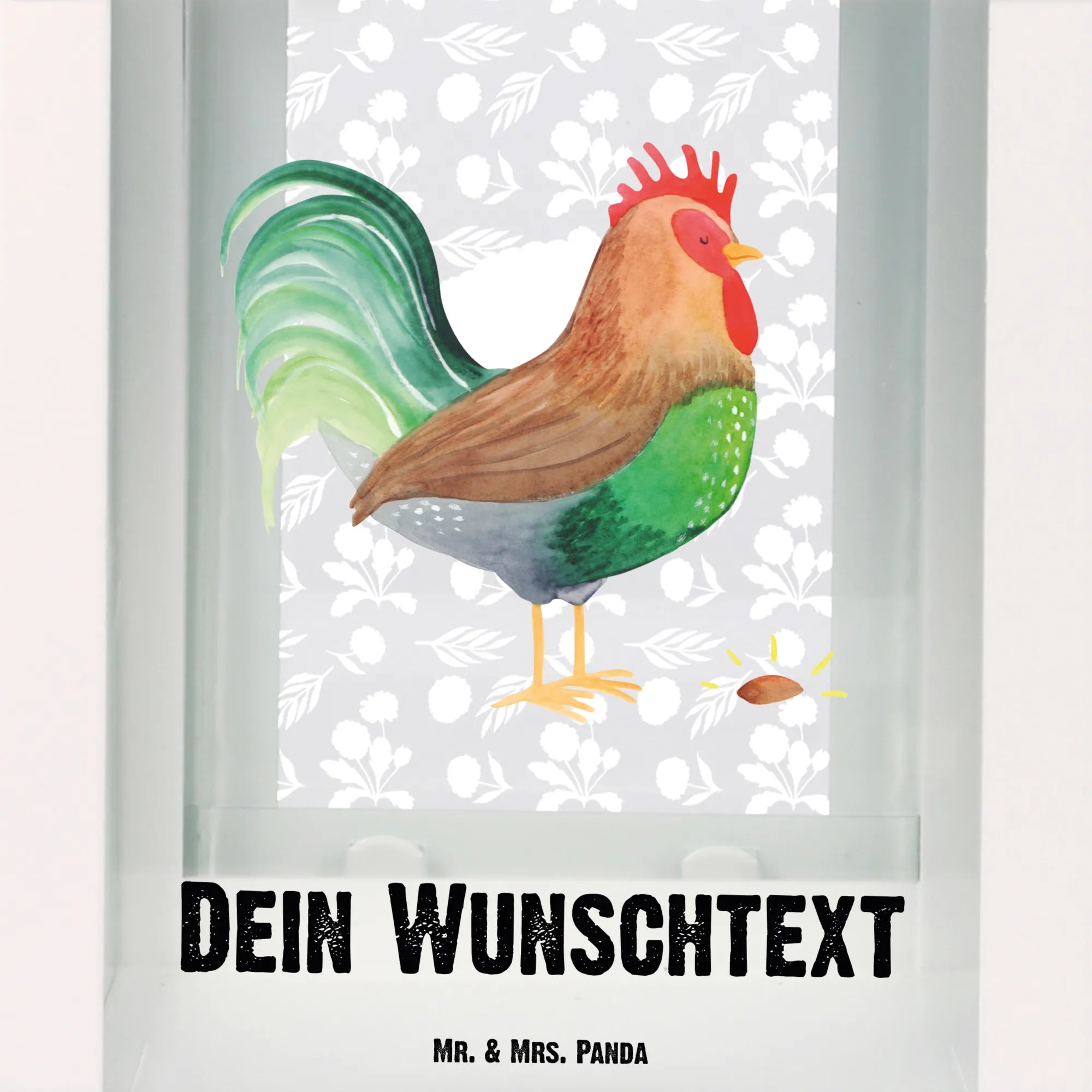 Der süße Hahn, der stolz sein prächtiges Korn präsentiert, bringt ein Stück ländliche Idylle zu dir nach Hause. Durch die Möglichkeit der Personalisierung mit deinem Wunschnamen oder Wunschtext wird diese Laterne zu einem ganz besonderen Unikat. Wenn du traurig bist, denk daran: Wenn ein Hahn ein besonders prächtiges Korn findet, holt er seine Lieblingshenne und schenkt es ihr großzügig. Ein kleiner Spruch, der zum Schmunzeln anregt!