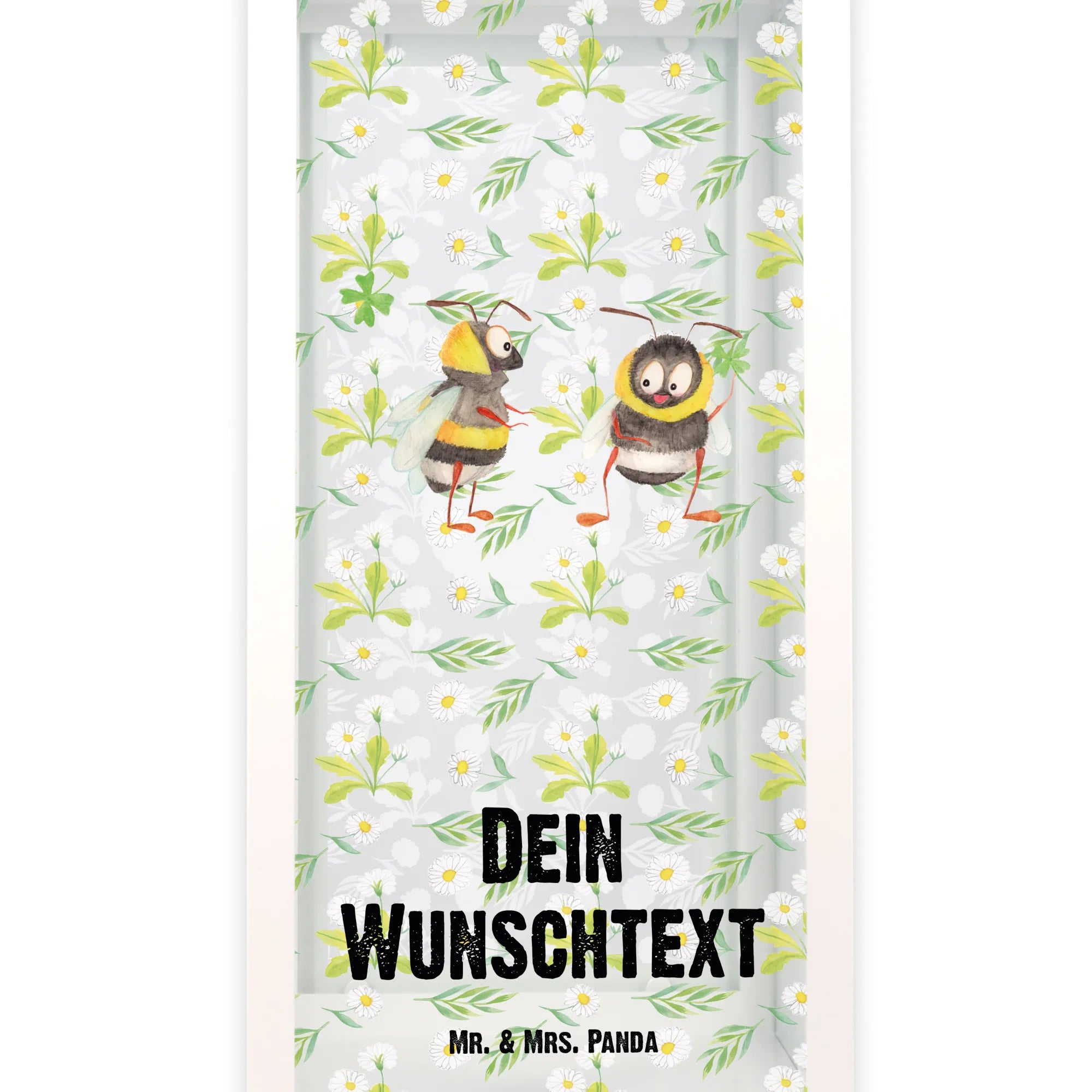 Die personalisierte Deko Laterne "Hummeln mit Kleeblatt" von Mr. & Mrs. Panda ist der perfekte Weg, um deinem Garten oder Balkon eine besondere Note zu verleihen. Hergestellt aus hochwertigem, weiß lackiertem Metall und versehen mit wunderschönem Glas, ist diese Laterne sowohl für den Innen- als auch für den Außenbereich geeignet. Mit einem bezaubernden Motiv von zwei freudigen Hummeln, die ein Kleeblatt halten, strahlt sie eine herzliche Botschaft von Zusammenhalt und Glück aus. Perfekt für alle, die lieben zu dekorieren und eine positive Atmosphäre schaffen möchten!