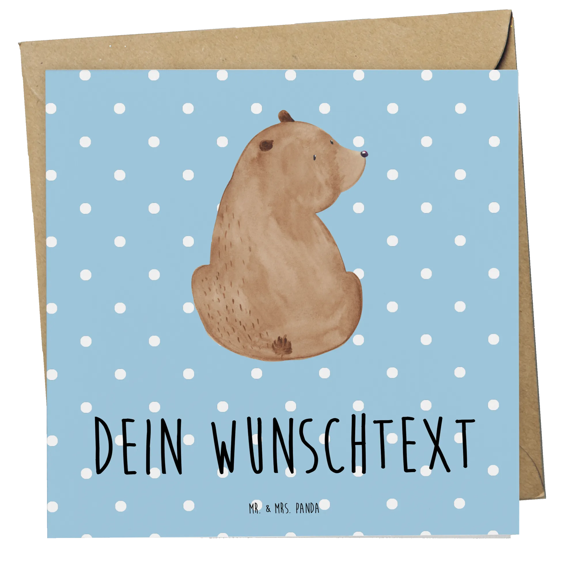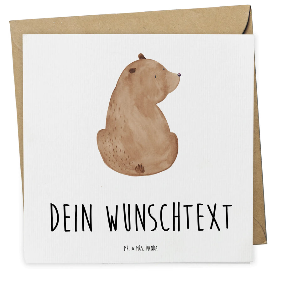 Die Personalisierte Deluxe Karte mit dem süßen Motiv "Bär Schulterblick" von Mr. & Mrs. Panda ist der perfekte Weg, um deinen Liebsten eine unvergessliche Nachricht zu überbringen. Diese hochwertige quadratische Karte (140 mm x 140 mm) besticht durch ihre edel glänzende Vorderseite und matte Innenseite, die dir alle Freiheiten lässt, deine persönlichen Gedanken und Grüße zu verewigen. Egal, ob du zu einem Geburtstag, einer Hochzeit oder einem besonderen Jubiläum gratulieren möchtest – diese Grußkarte ist immer eine großartige Wahl!