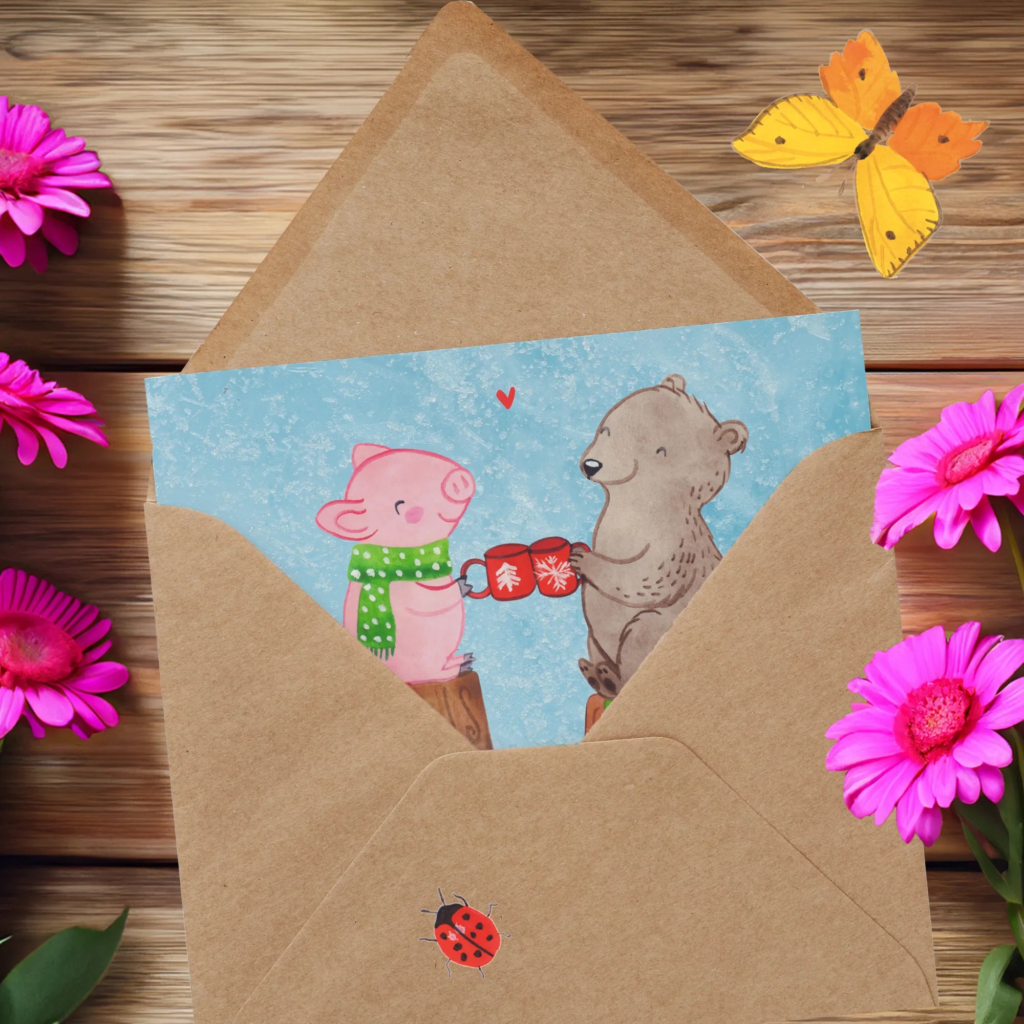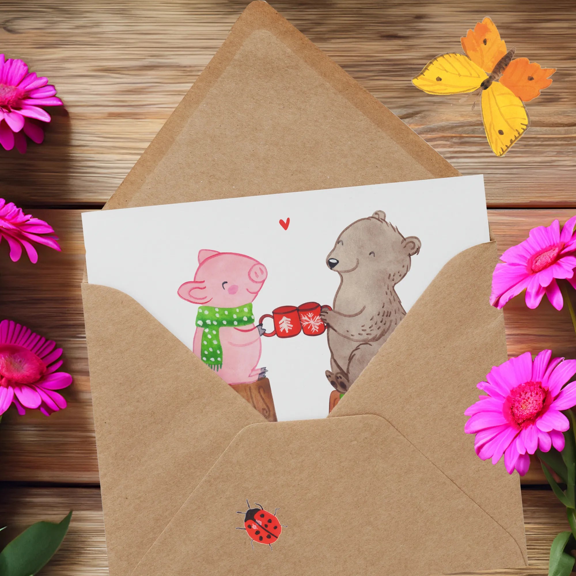 Mit ihrem liebevoll gestalteten Motiv zeigt sie ein niedliches Schweinchen und einen Bären, die gemeinsam anstoßen. Diese Szene symbolisiert nicht nur das Feiern, sondern auch Freundschaft und Glück, was sie zu einer perfekten Karte für Weihnachtsgrüße macht.