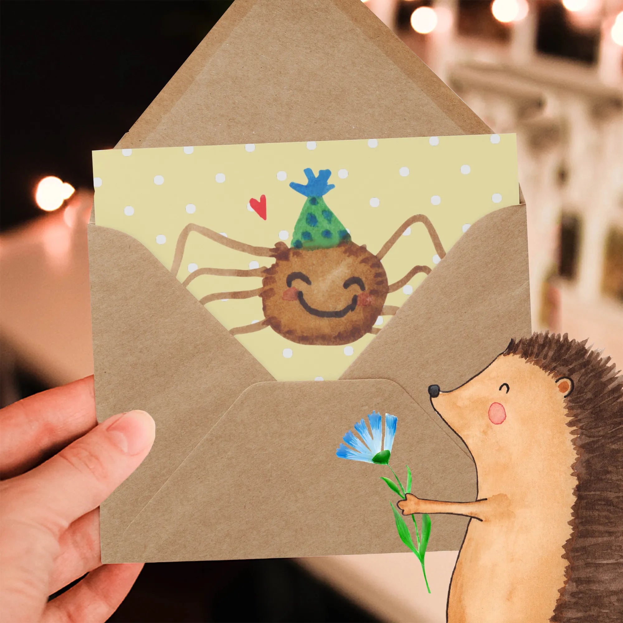 Die Personalisierte Deluxe Karte 'Spinne Agathe Party' von Mr. & Mrs. Panda ist ein ganz besonderes Geschenk, das deinem Empfänger ein Lächeln ins Gesicht zaubern wird. In dieser hochwertigen und liebevoll gestalteten Grußkarte kannst du ganz einfach deinen Wunschtext oder Namen personalisieren. Die süße Spinne Agathe, die fröhlich in ihrem Partyhut strahlt, verkörpert Lebensfreude und Motivation. Sie erinnert uns daran, dass wir voller kleiner und großer Wunder stecken und dass wir genau so toll sind, wie wir sind.