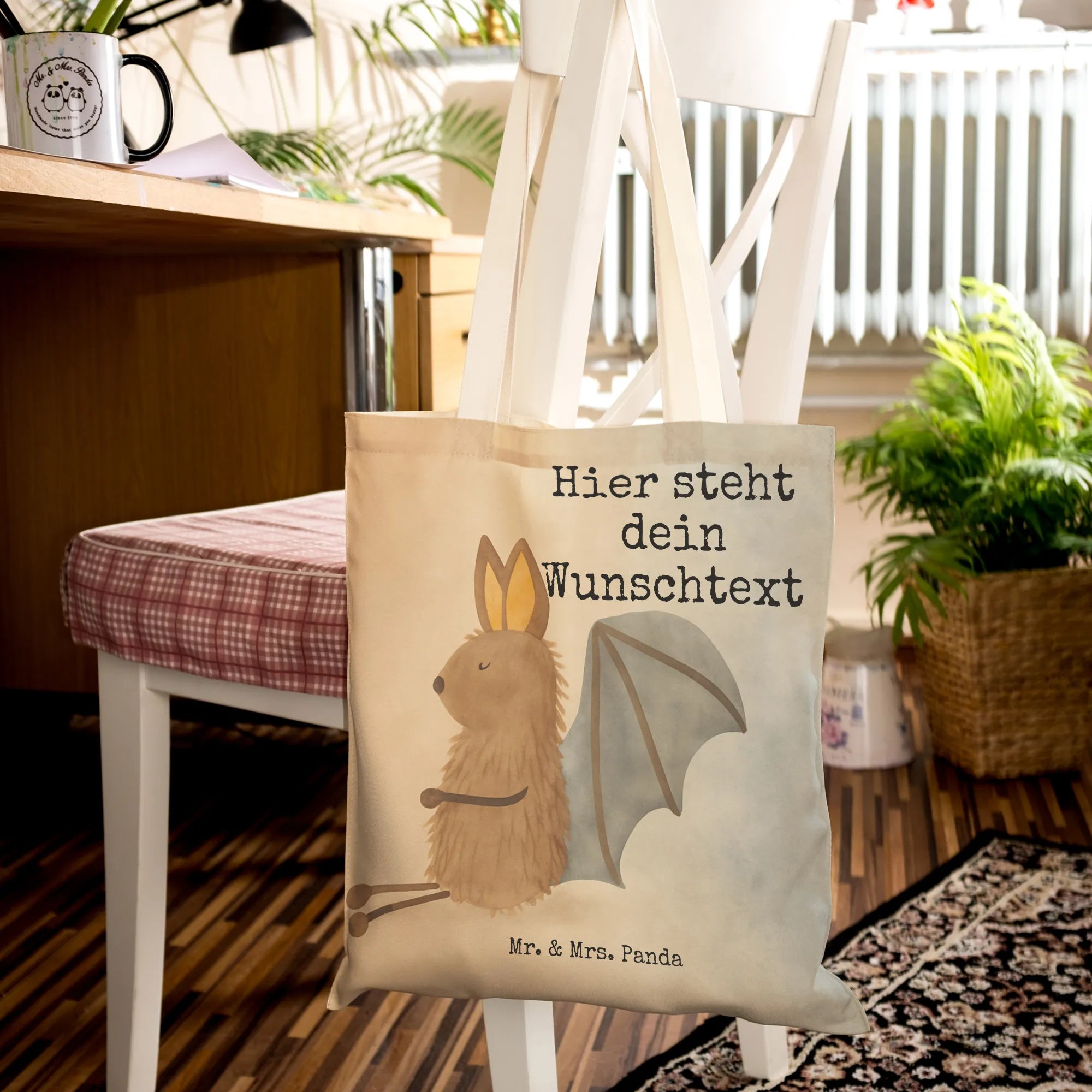 Personalisierte Einkaufstasche Fledermaus Sitzen Design – Mr. & Mrs. Panda
