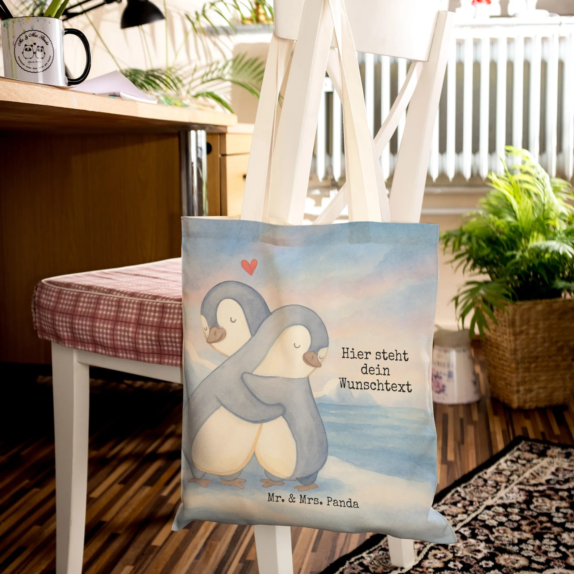 Personalisierte Einkaufstasche Pinguine Kuscheln Design – Mr. & Mrs. Panda
