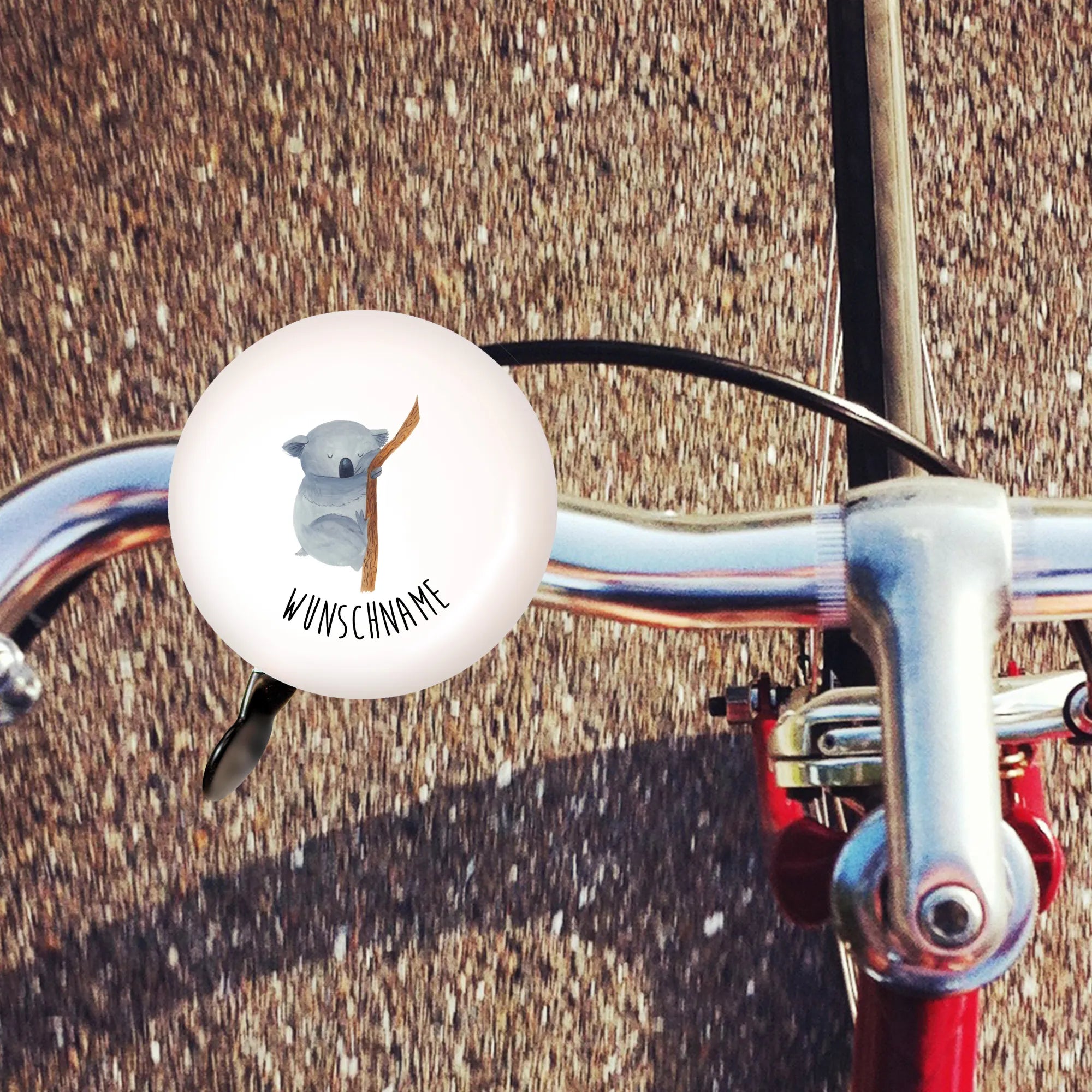 Entdecke die personalisierte Fahrradklingel „Koalabär“ aus der Small World Kollektion von Mr. & Mrs. Panda. Ein zauberhaftes Motiv eines schläfrigen Koalas, kombiniert mit dem liebevollen Spruch „Träum mal darüber nach.“ – perfekt, um jedem Fahrrad einen persönlichen, fröhlichen Touch zu verleihen.