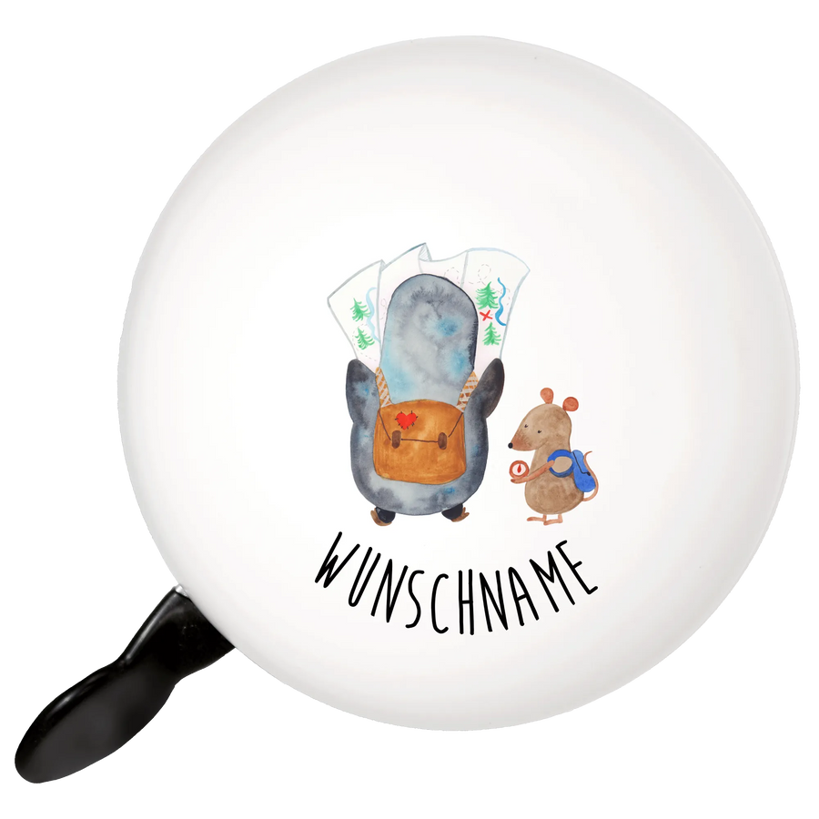 Personalisierte Fahrradklingel Pinguin & Maus Wanderer