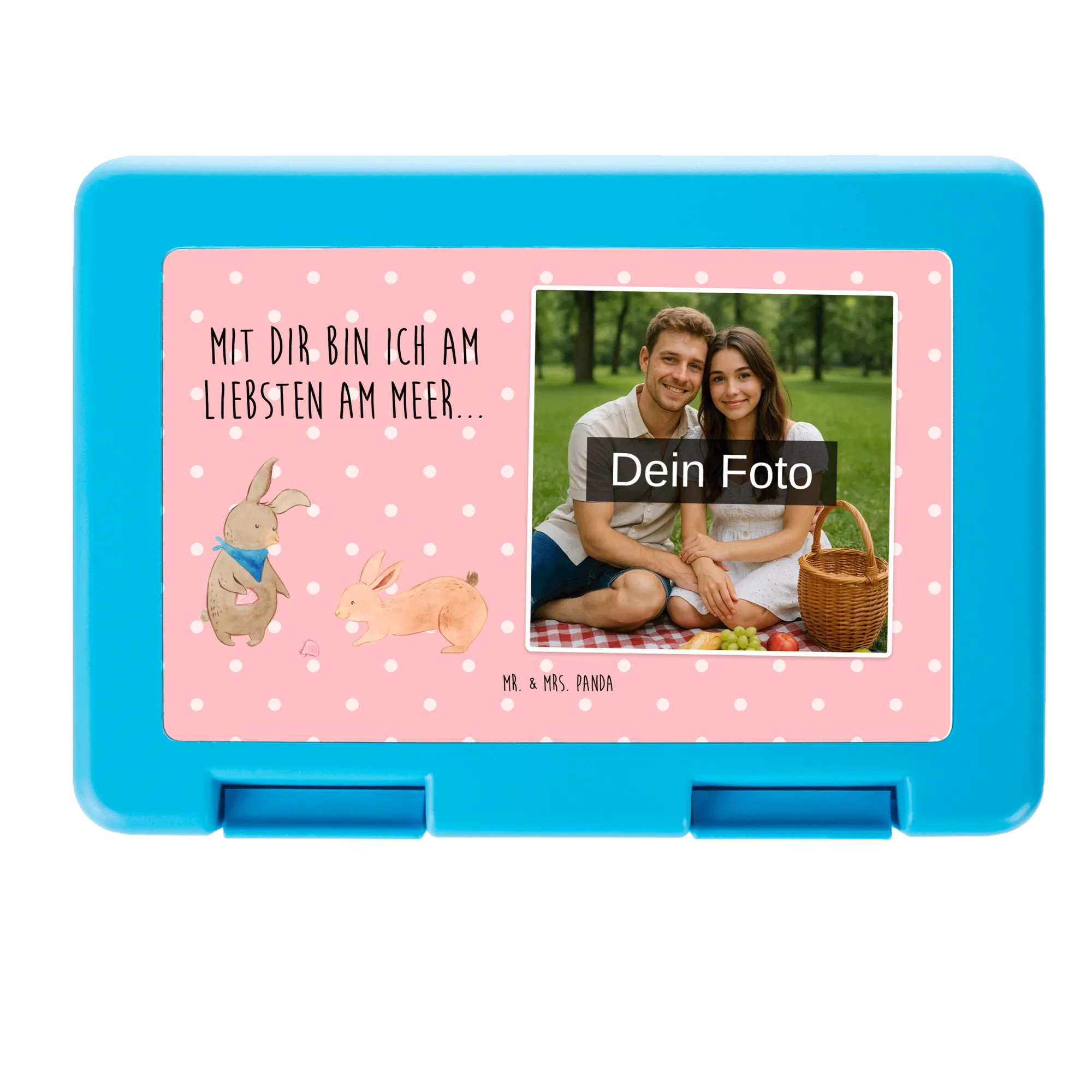 Personalisierte Foto Brotdose Hasen Muschel - Blau Pastell