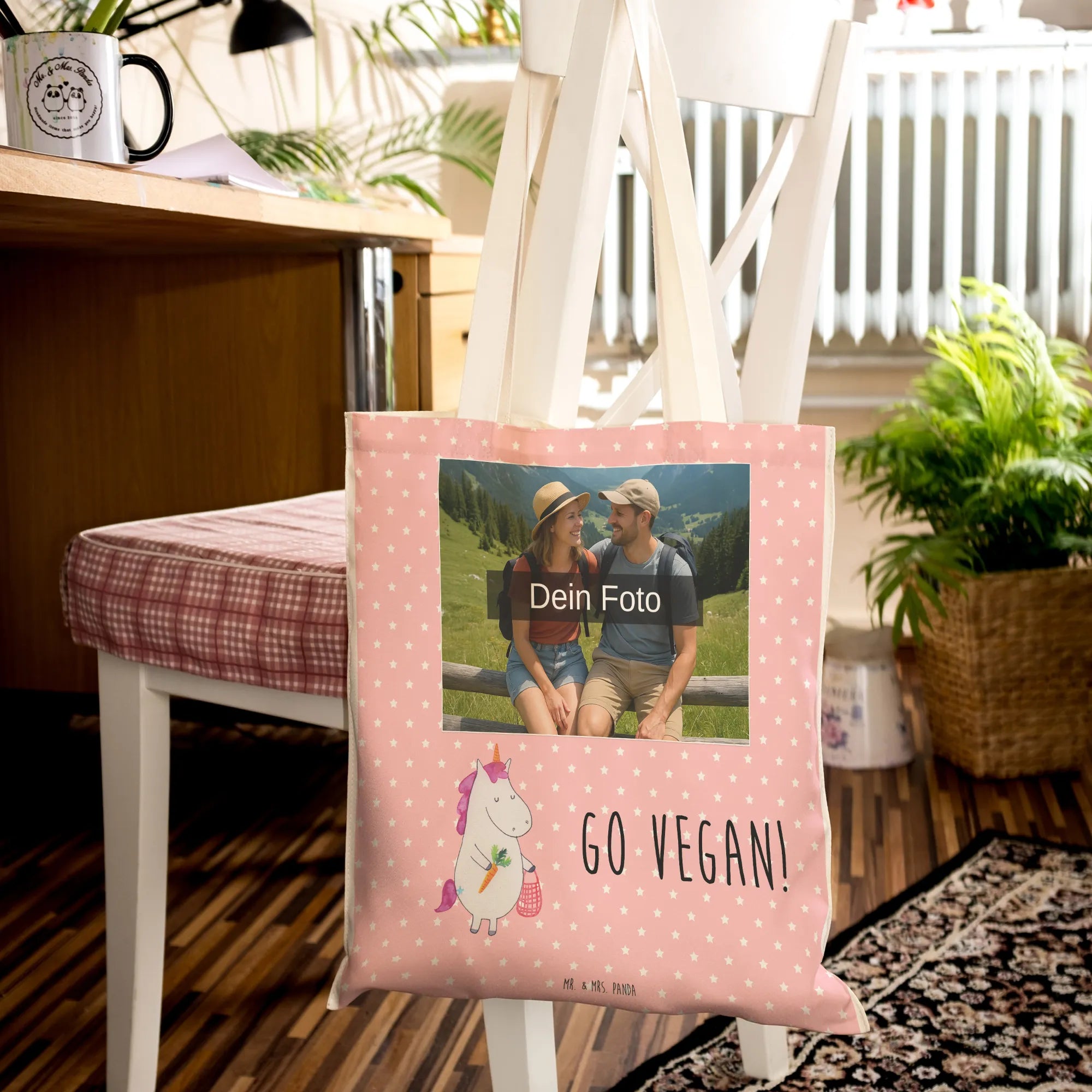 Personalisierte Foto Einkaufstasche Einhorn Vegan