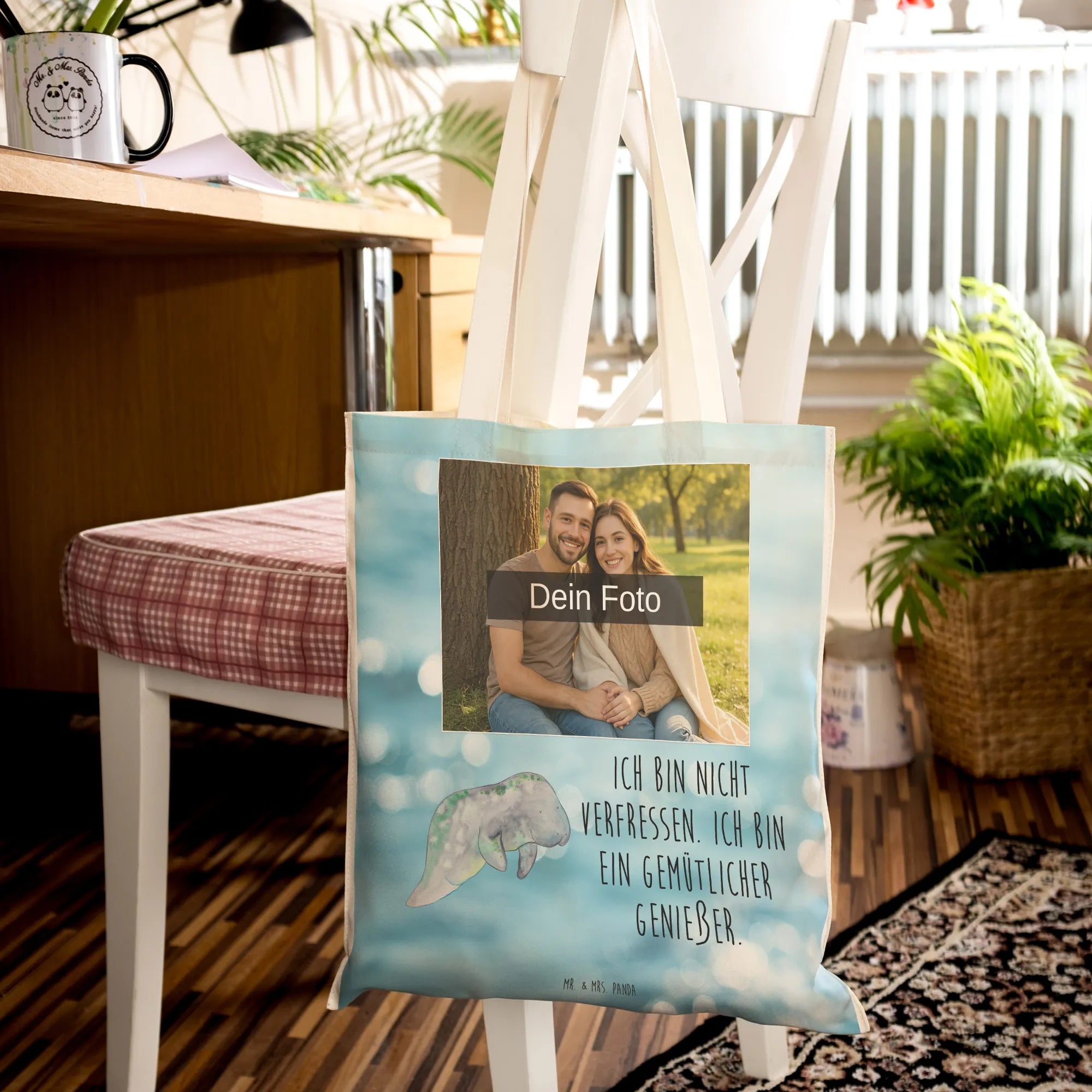 Personalisierte Foto Einkaufstasche Seekuh Chillen