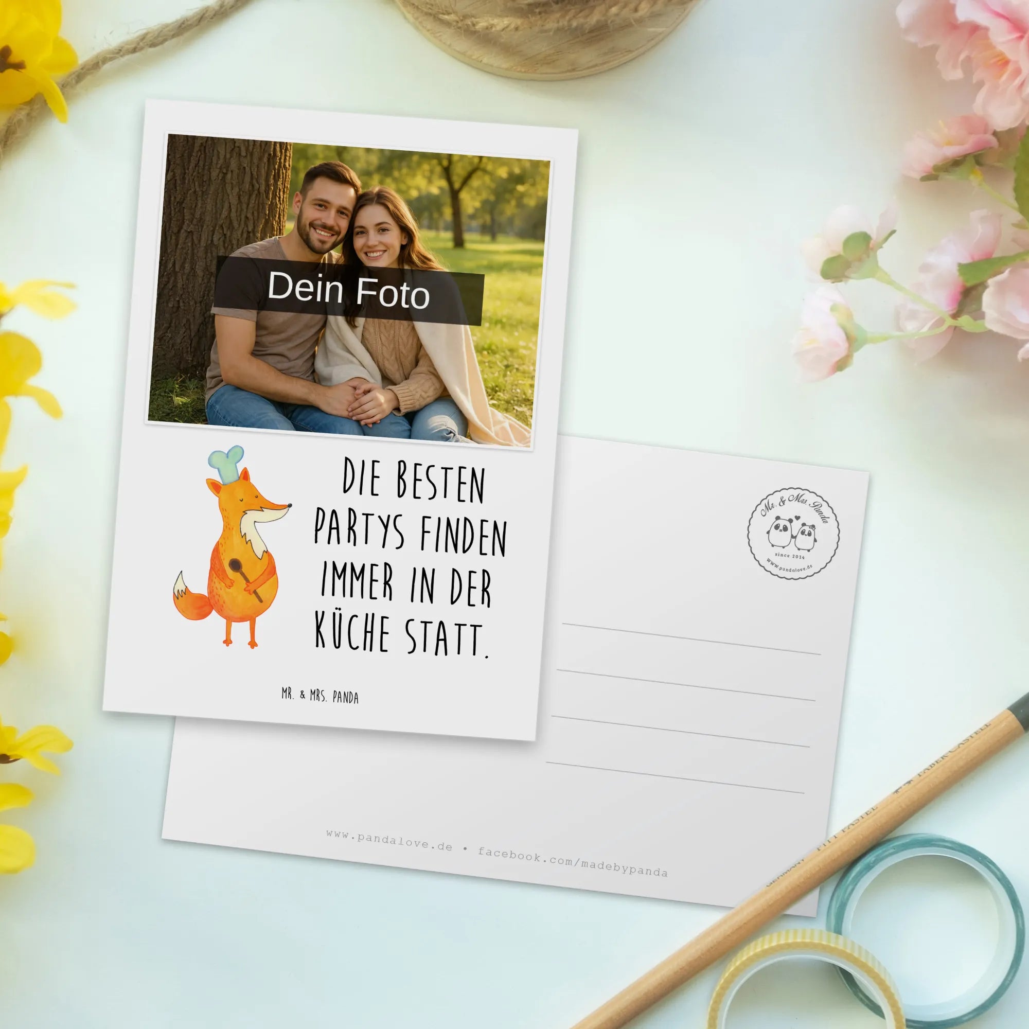 Diese personalisierte Foto Postkarte mit dem süßen Motiv "Fuchs Koch" ist das perfekte Geschenk für alle, die das Kochen lieben. Ob für einen lieben Freund, ein Familienmitglied oder sogar für dich selbst, dieses Kunstwerk bringt nicht nur Freude, sondern auch eine Portion Humor in die Küche. Die liebevoll gestaltete Postkarte zeigt den schlaue Fuchs mit Kochlöffel und Schürze, bereit, seine Kochkünste zu präsentieren. Der Spruch "Die besten Partys finden immer in der Küche statt" bringt die gesellige Stimmung direkt zu dir nach Hause. Ideal für Kochabende, Partys oder einfach als schöne Küchen Deko!