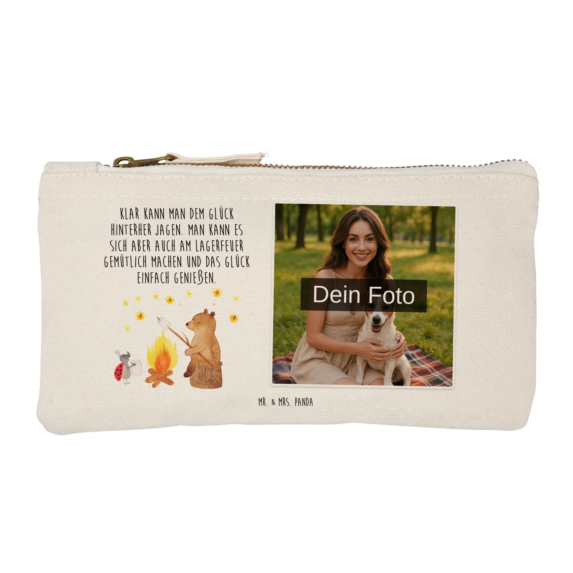 Personalisierte Foto Schminktasche Bär & Marienkäfer Lagerfeuer - Größe S Klein
