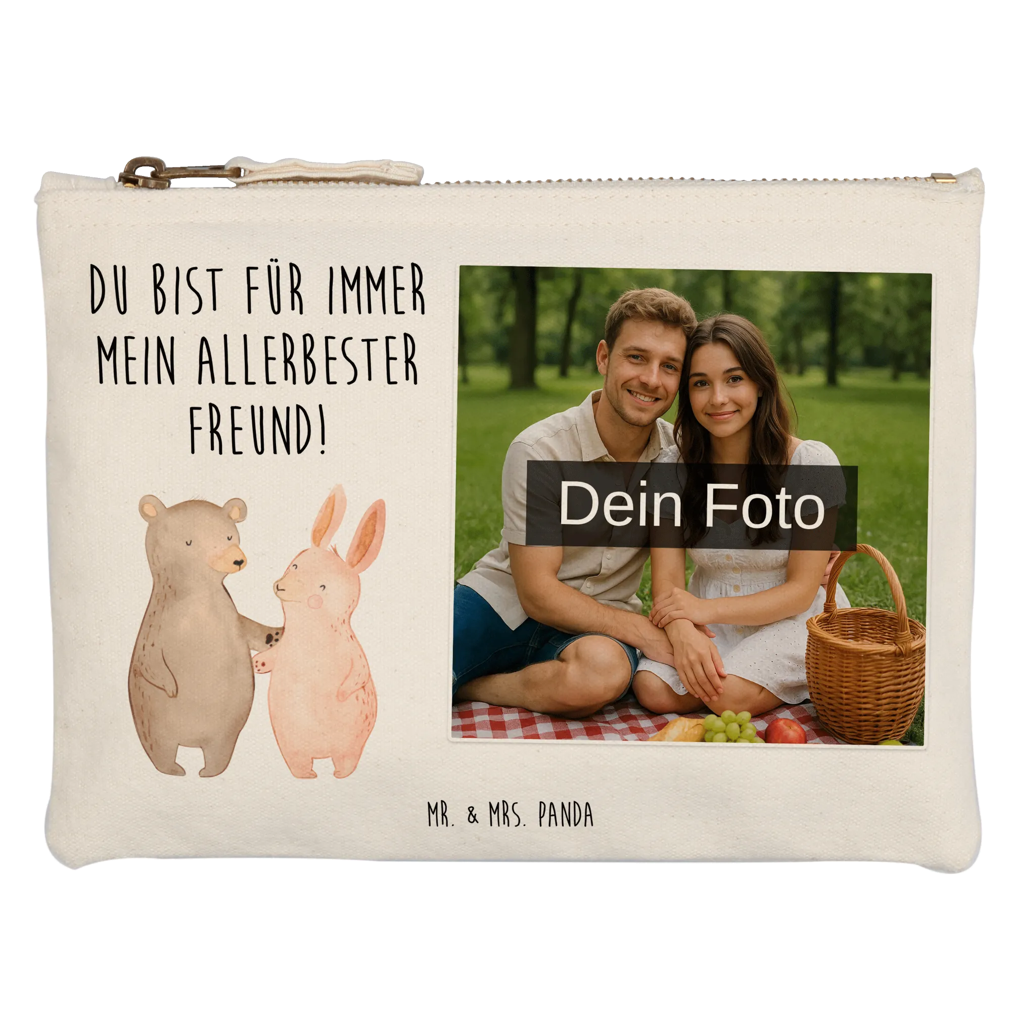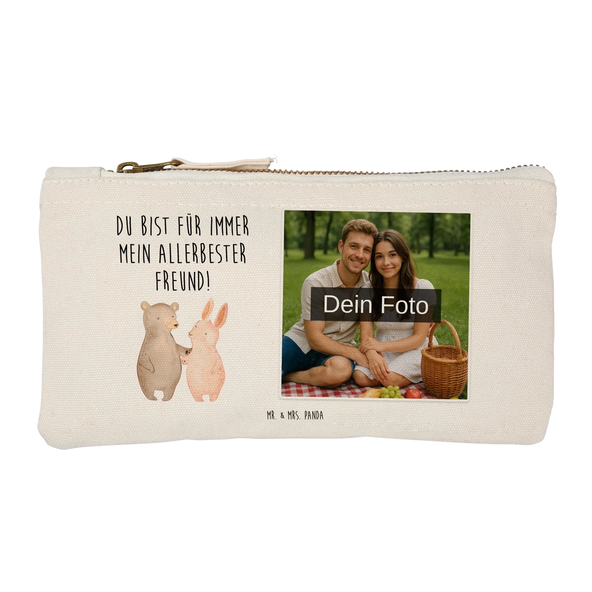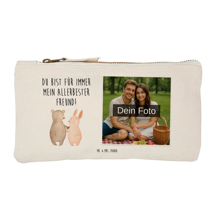 Personalisierte Foto Schminktasche Bär und Hase Umarmen - Größe S Klein