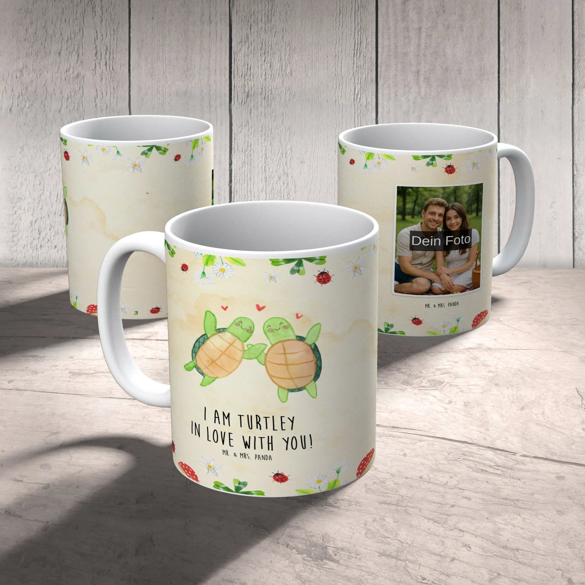 Die personalisierte Foto Tasse mit dem liebevollen Motiv "Schildkröten Paar" von Mr. & Mrs. Panda ist das perfekte Geschenk für all deine Liebsten! Ob zum Valentinstag, für den Jahrestag oder einfach nur als Liebesbeweis – diese Tasse erzählt eure ganz persönliche Liebesgeschichte.