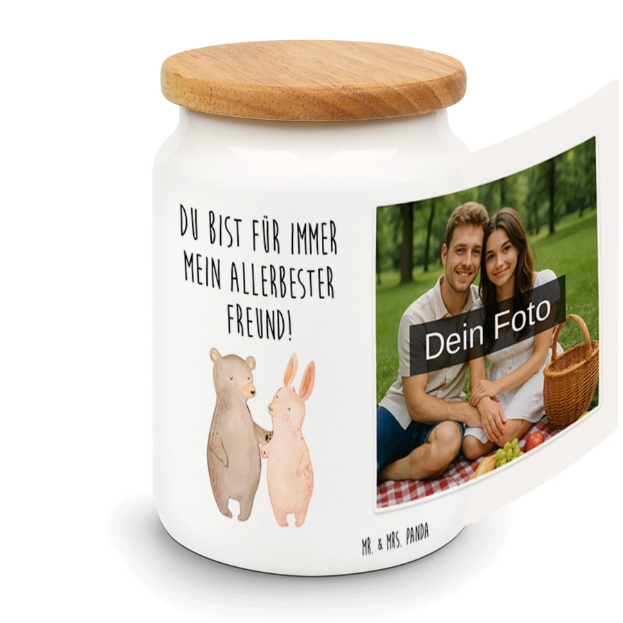 Personalisierte Foto Vorratsdose Bär und Hase Umarmen