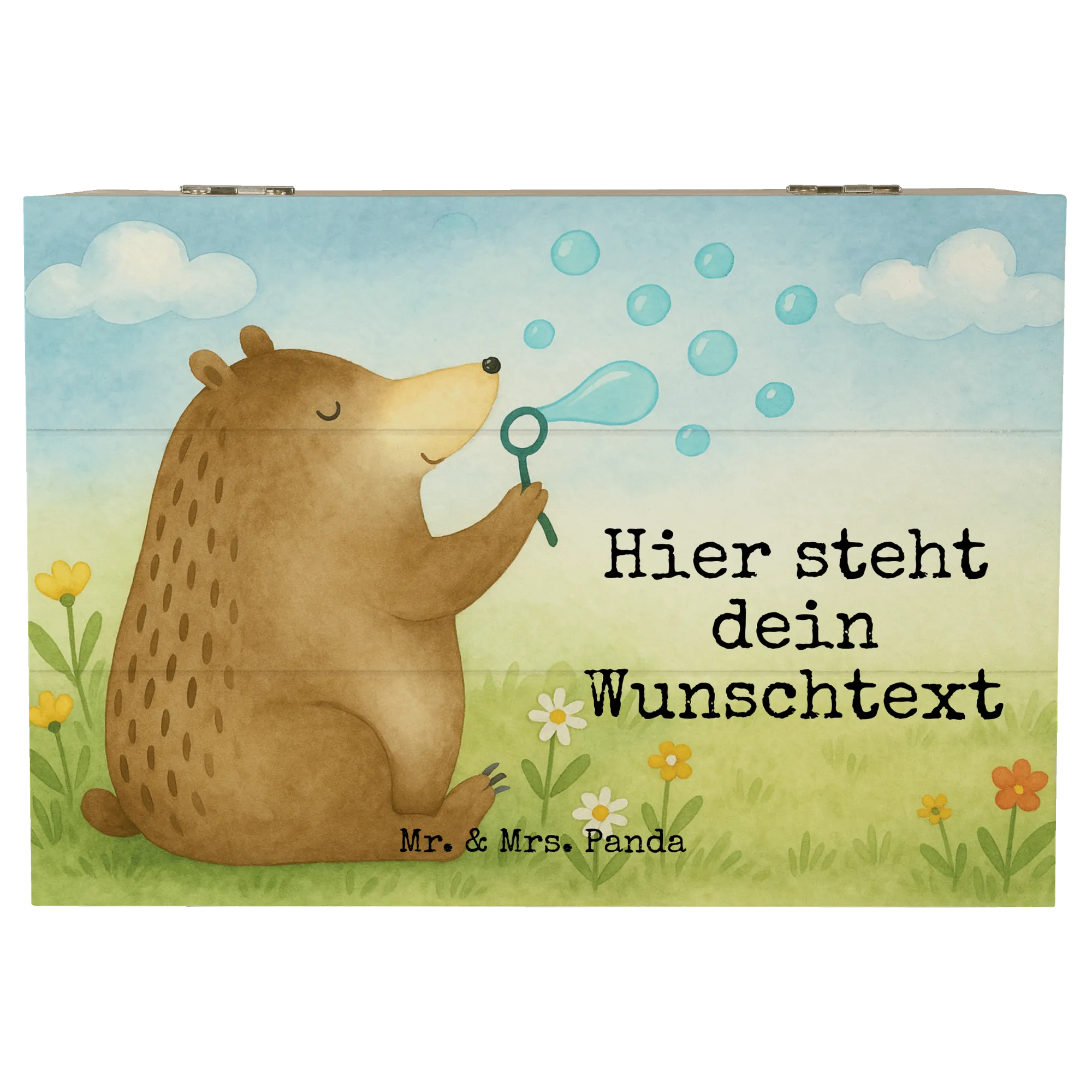 Personalisierte Holzkiste Bär Seifenblasen Design - 22 x 15 cm
