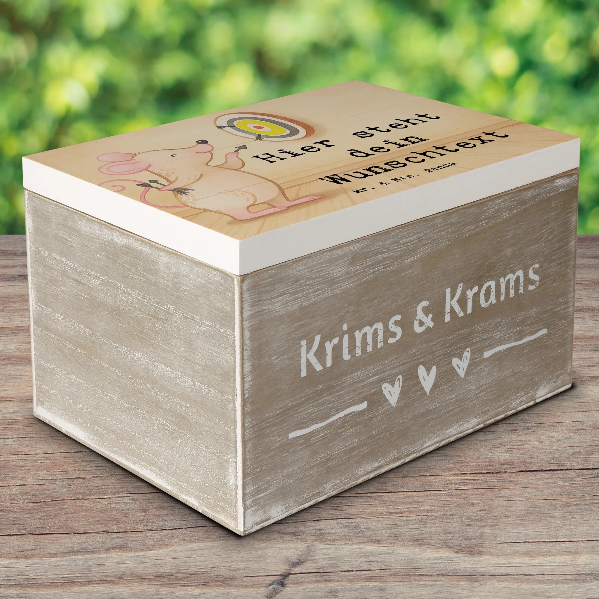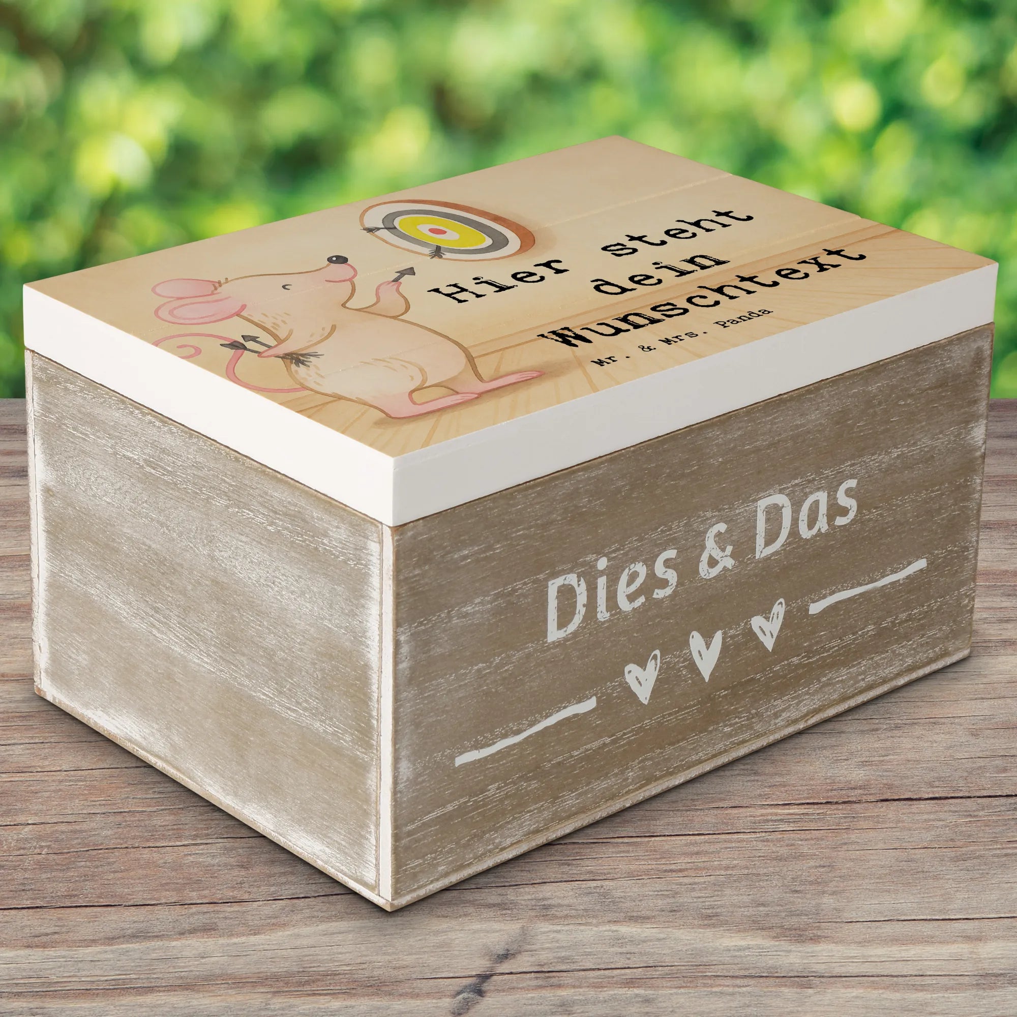 Personalisierte Holzkiste Maus Dart spielen Design - 22 x 15 cm