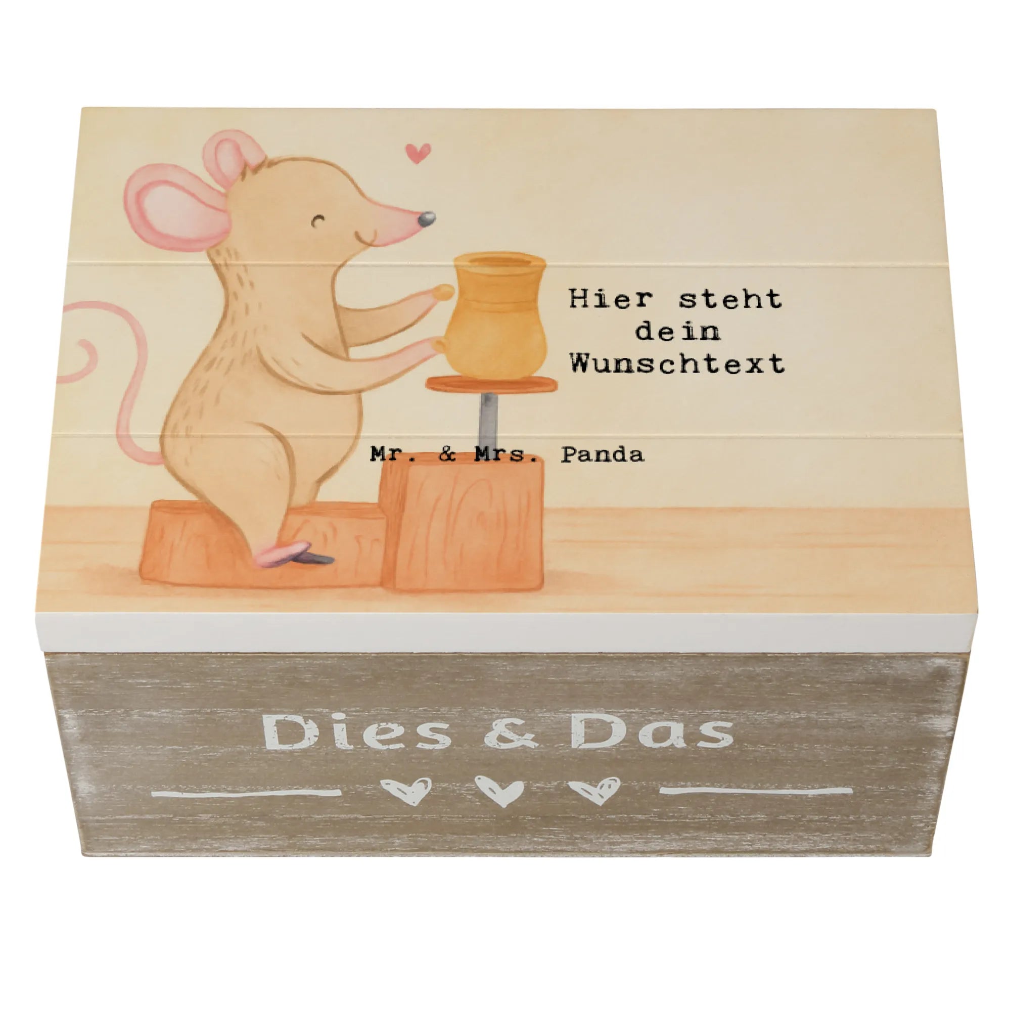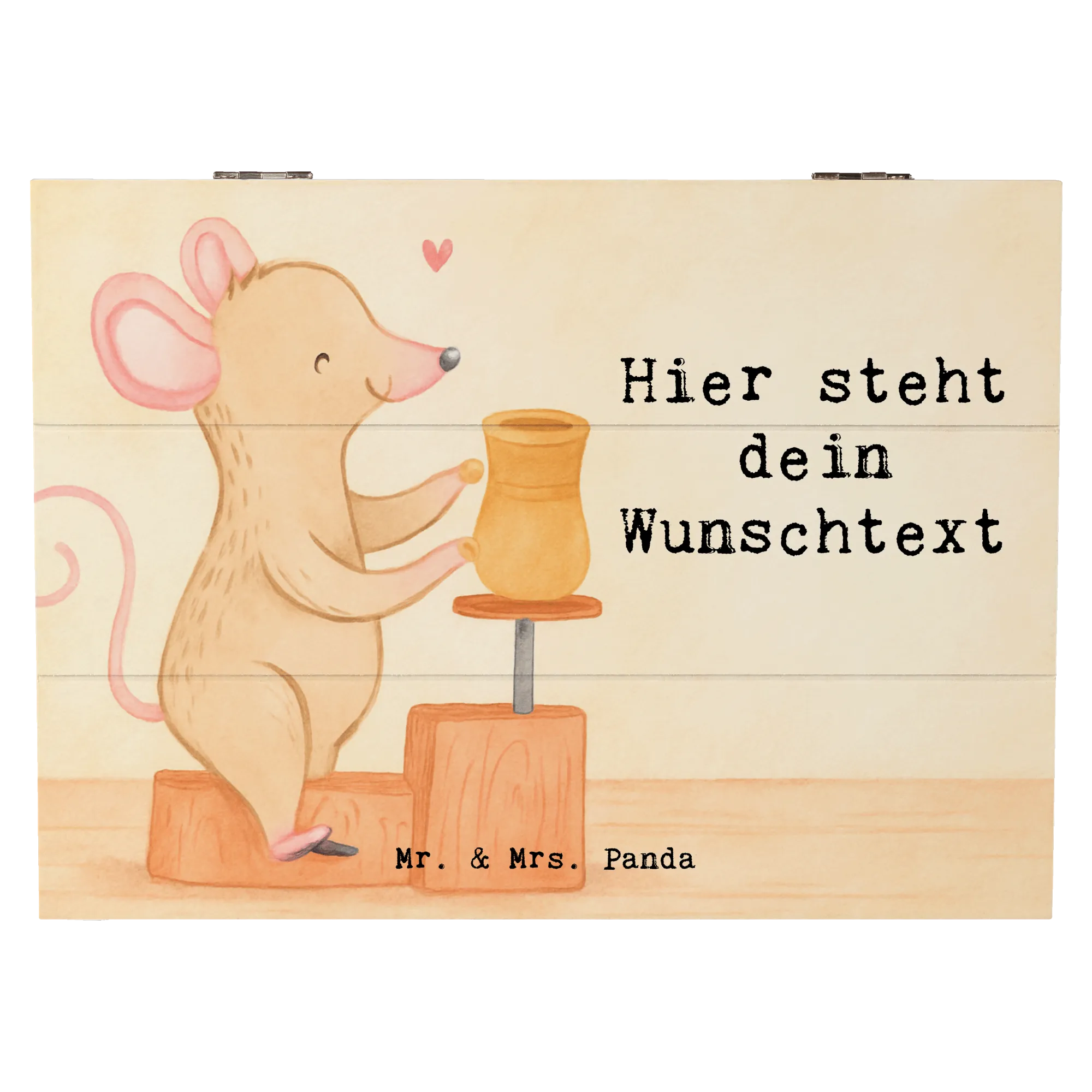 Personalisierte Holzkiste Maus Töpfern Design - 22 x 15 cm