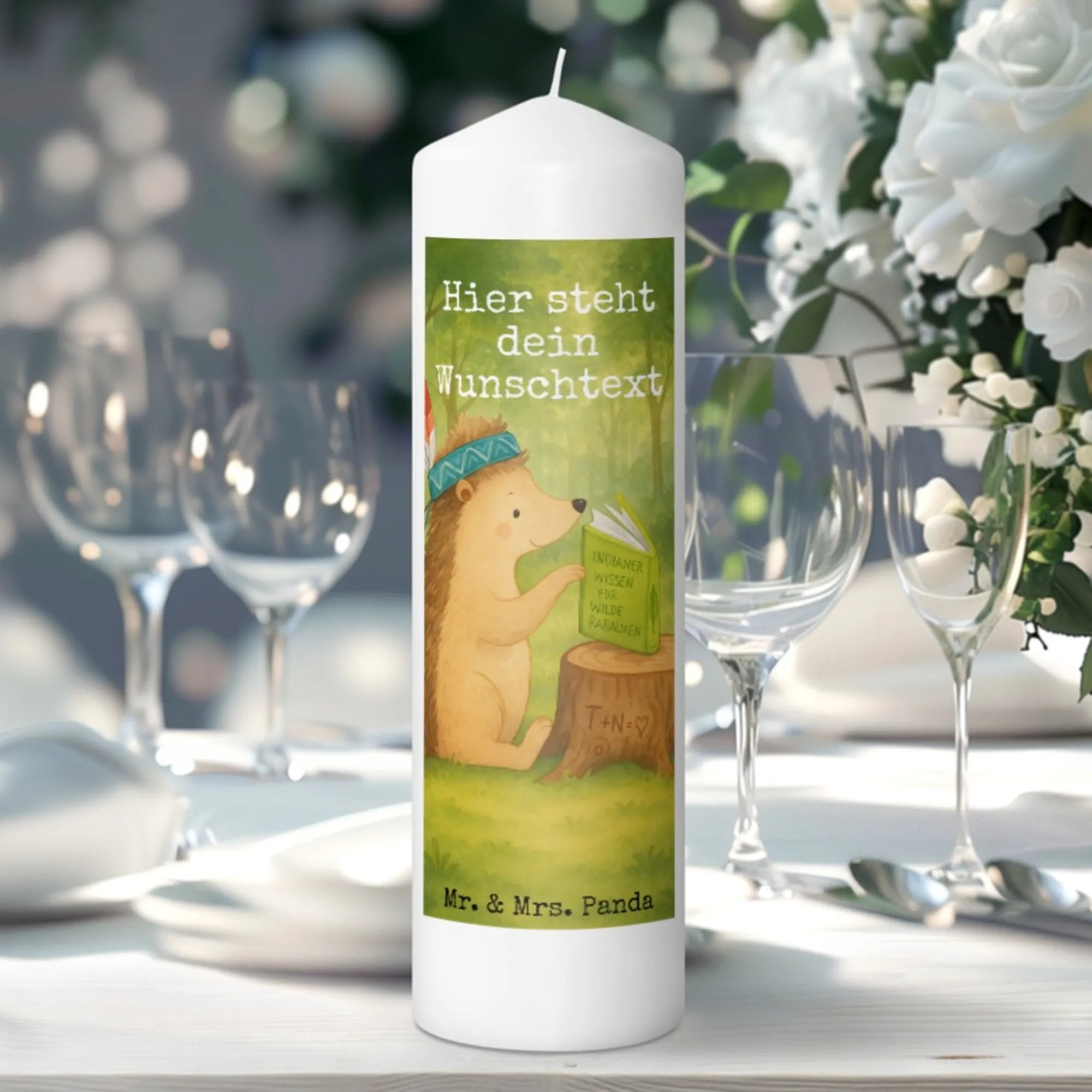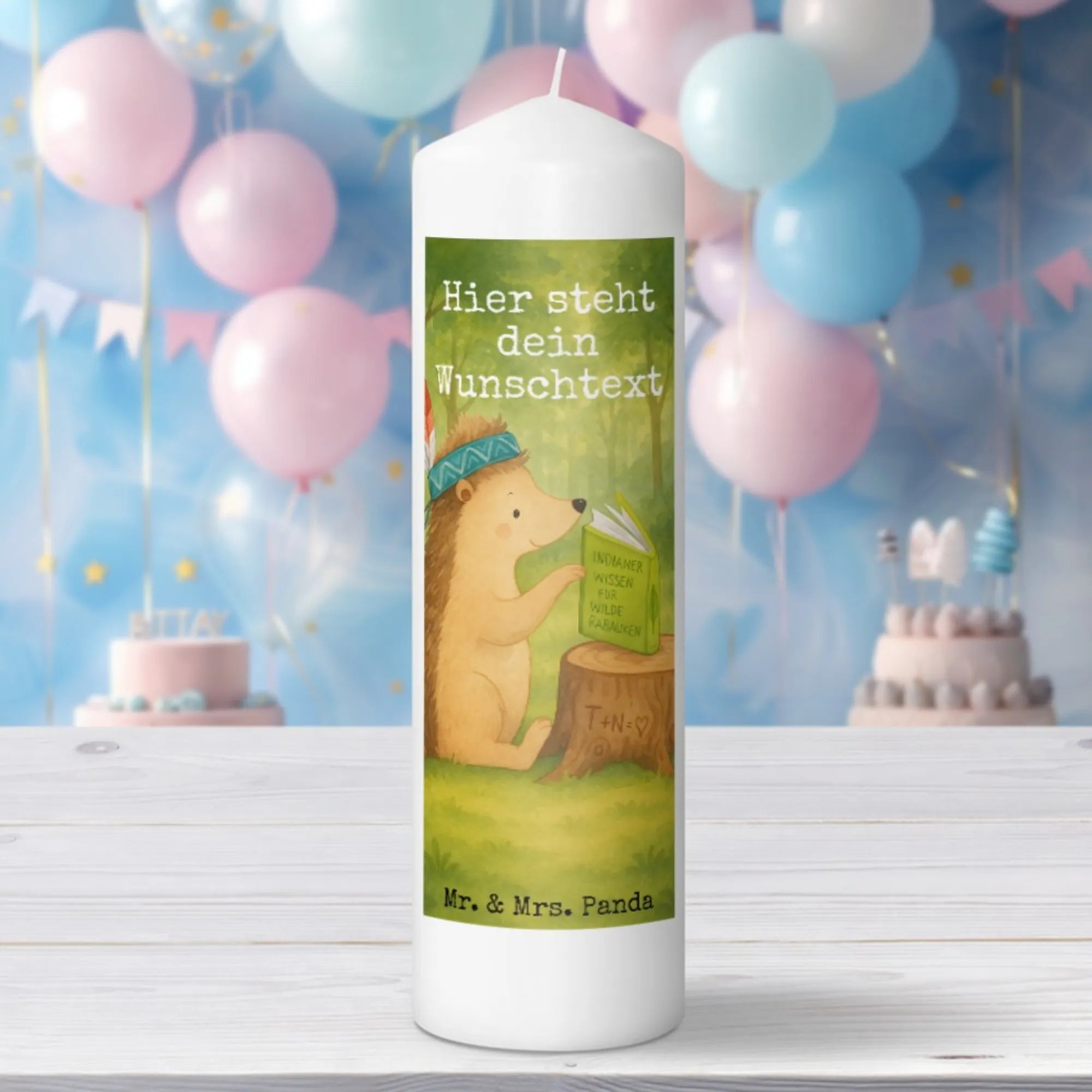 Personalisierte Kerze Igel Federschmuck Design - 15 x 7 cm