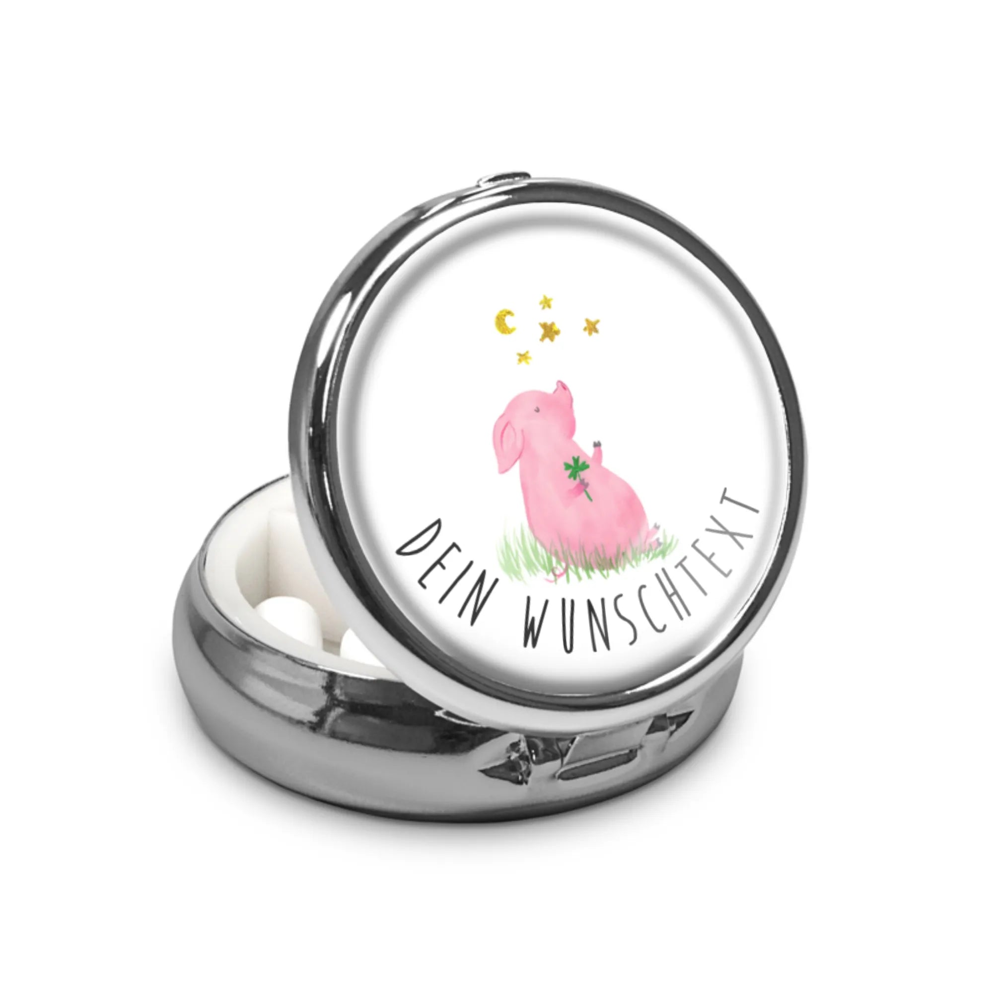 Personalisierte Pillendose Schwein Glück