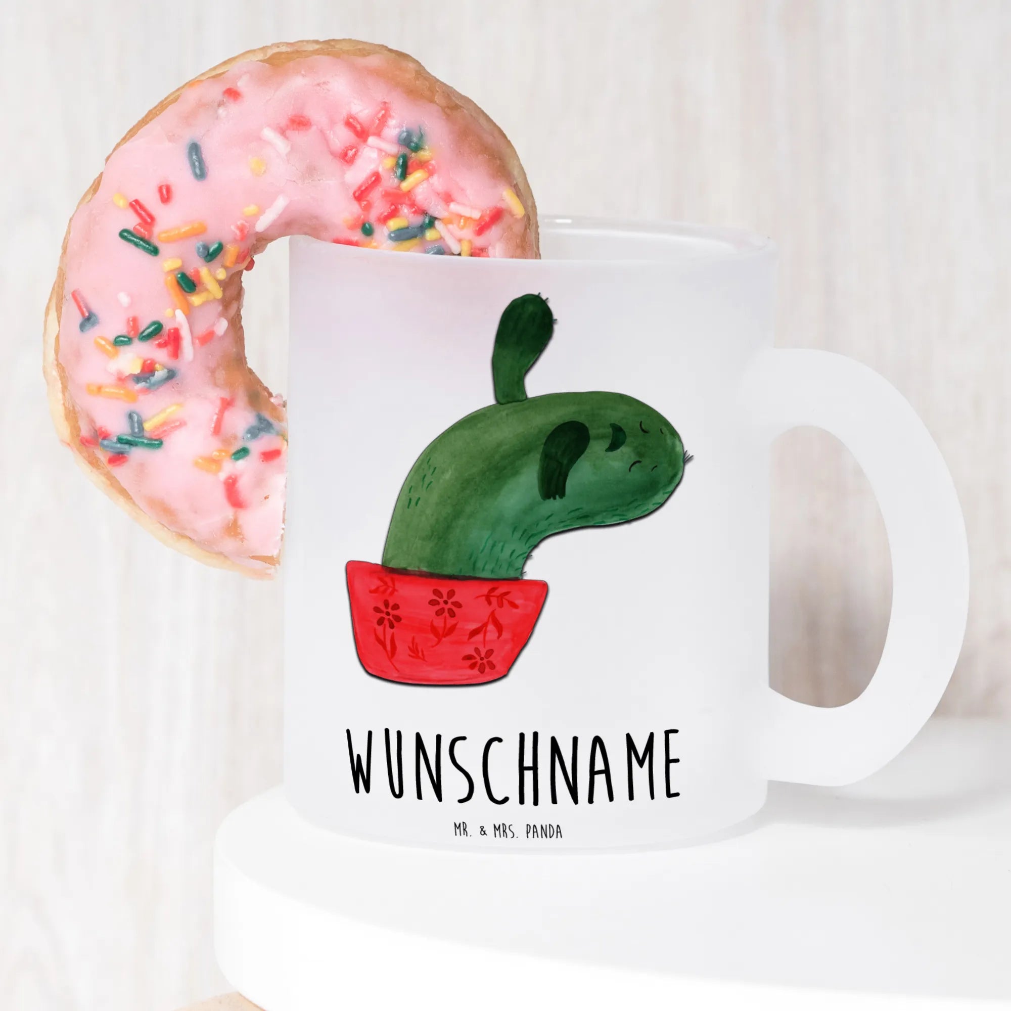 Die personalisierte Teetasse Kaktus Mamamia von Mr. & Mrs. Panda ist mehr als nur eine Tasse – sie ist ein kleines Lebensgefühl! Diese edle und einzigartige Teetasse wird aus robustem, extra starkem Glas gefertigt und trägt das fröhliche Kaktus-Motiv, das nicht nur den Sommer, sondern auch gute Laune verkörpert.