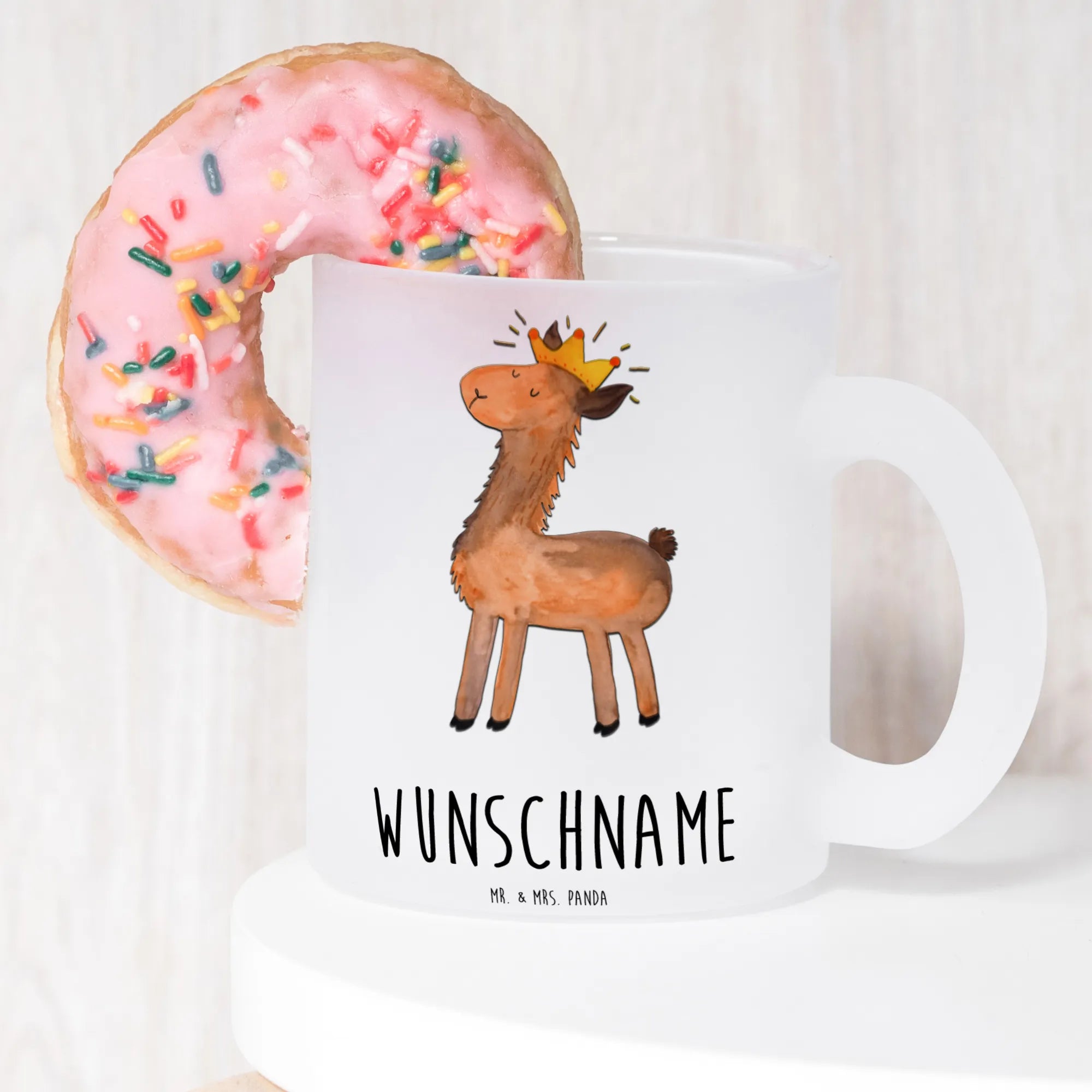 Entdecke die zauberhafte, personalisierte Teetasse mit dem Motiv "Lama König" aus der exklusiven Lama-Kollektion von Mr. & Mrs. Panda! Diese Tasse ist nicht nur ein praktisches Trinkgefäß, sondern auch ein echter Hingucker und ein perfektes Geschenk für deine Lieblingsmenschen. Die Tasse wird mit deinem wünschtext personalisiert – so wird jeder Schluck Tee oder Kaffee zu einem besonderen Erlebnis!