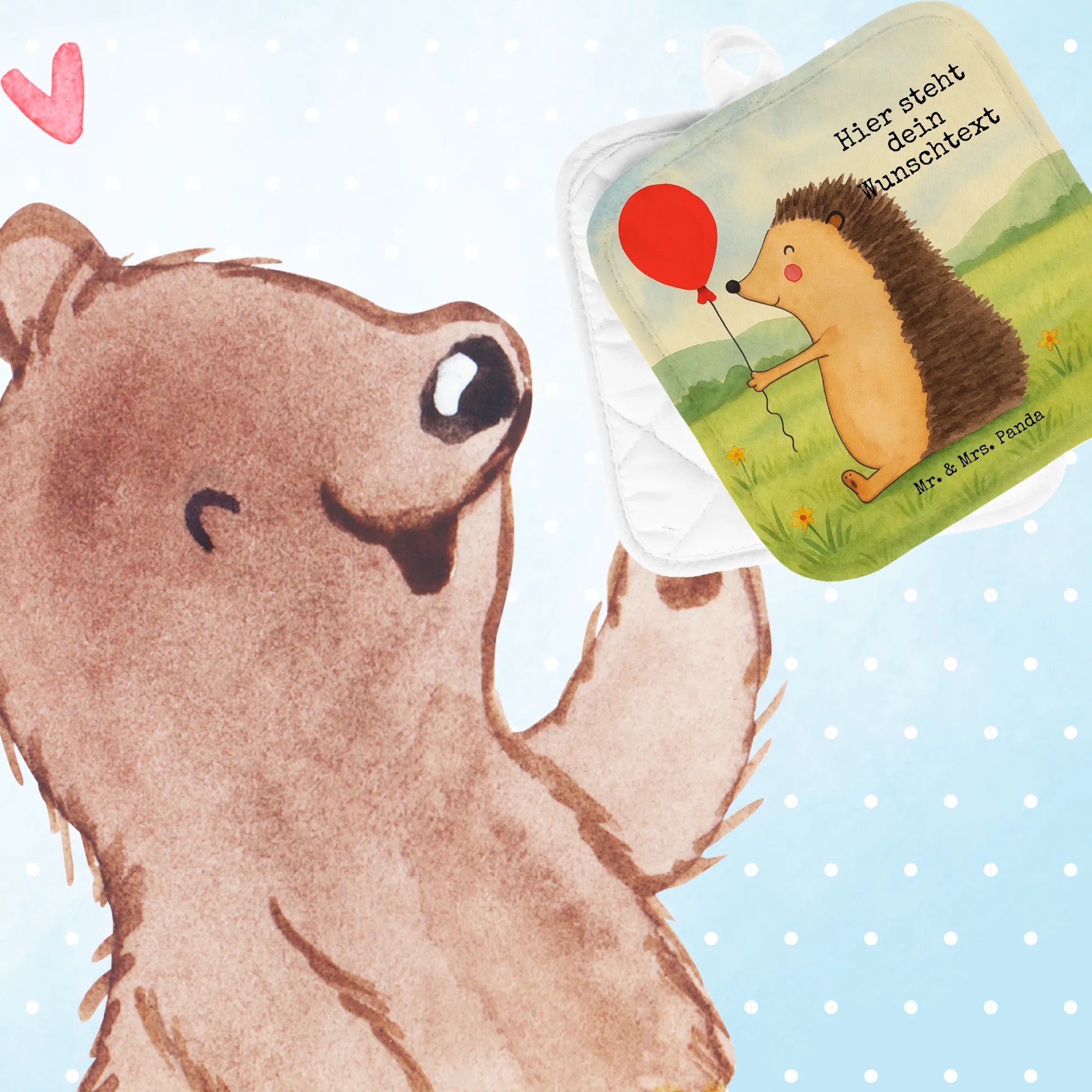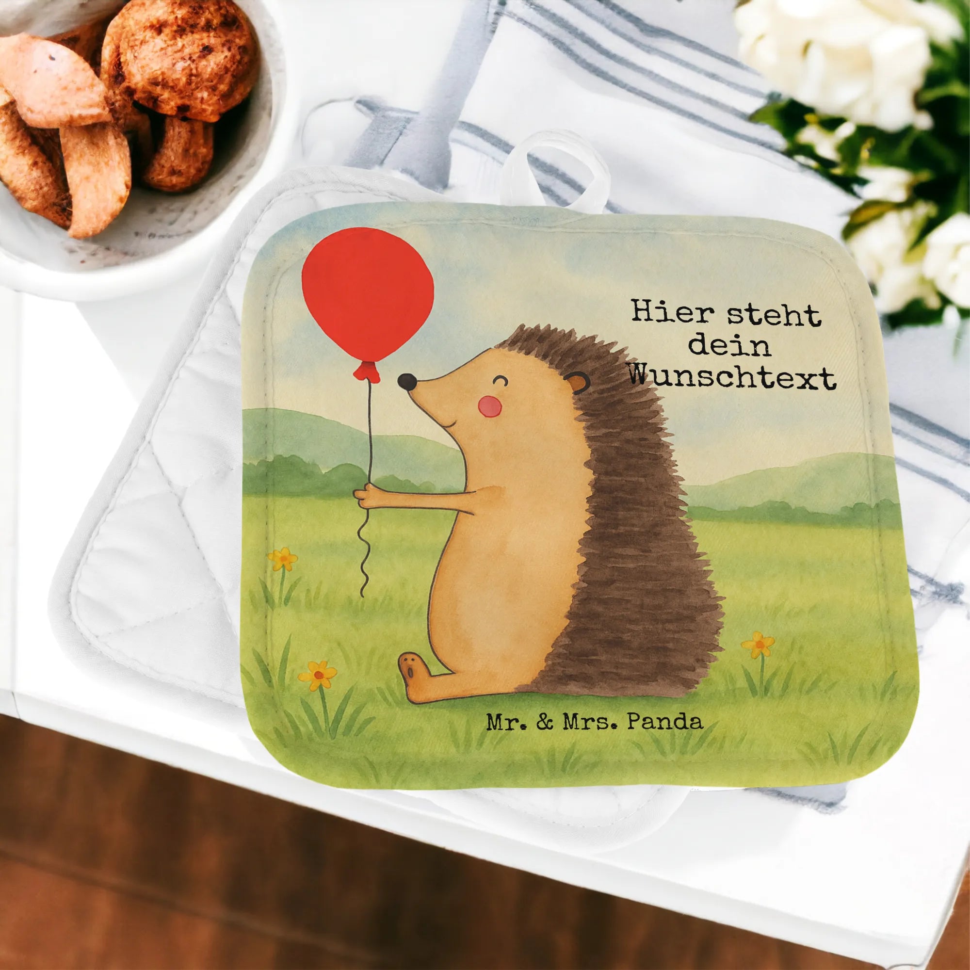 Personalisierte Topflappen Igel Luftballon Design