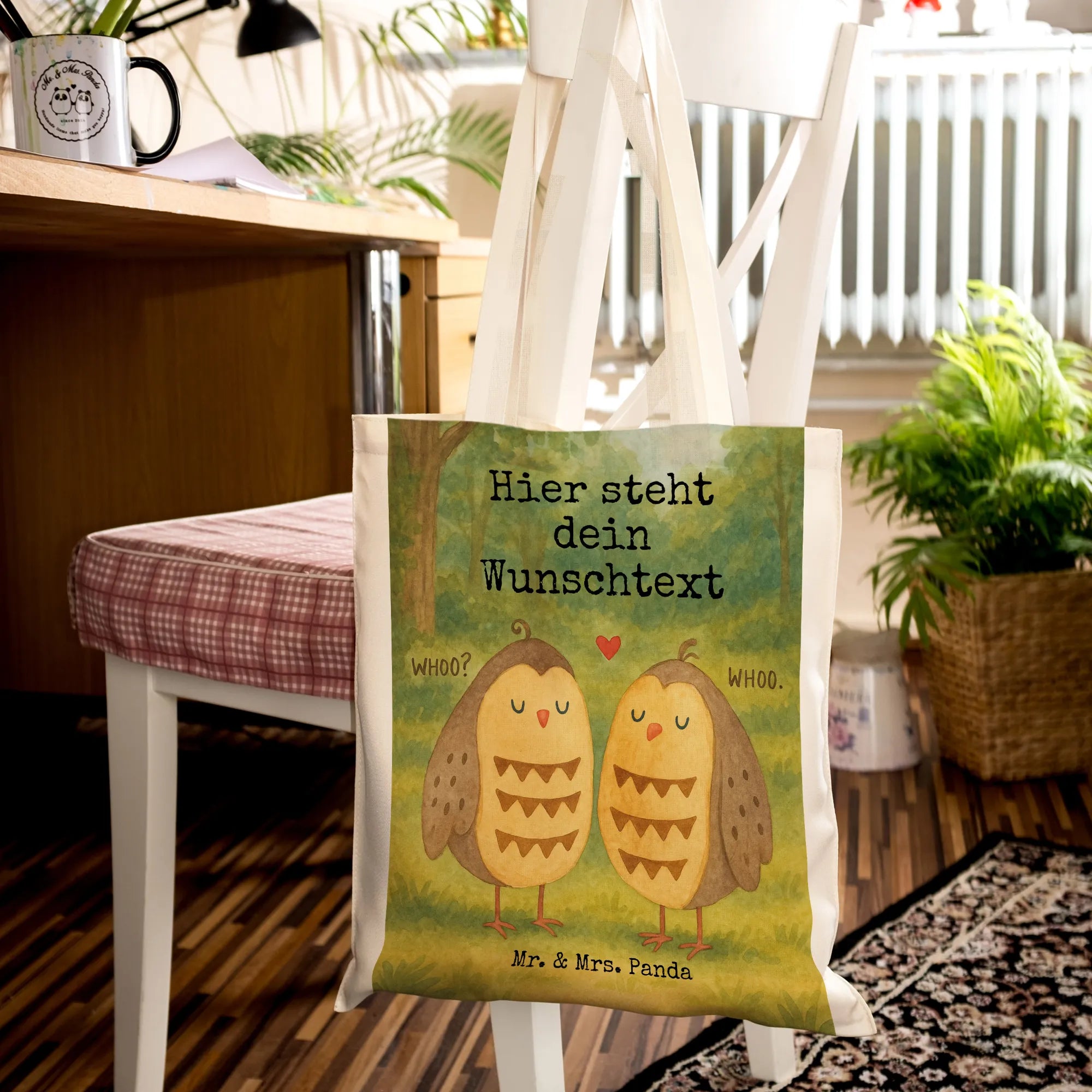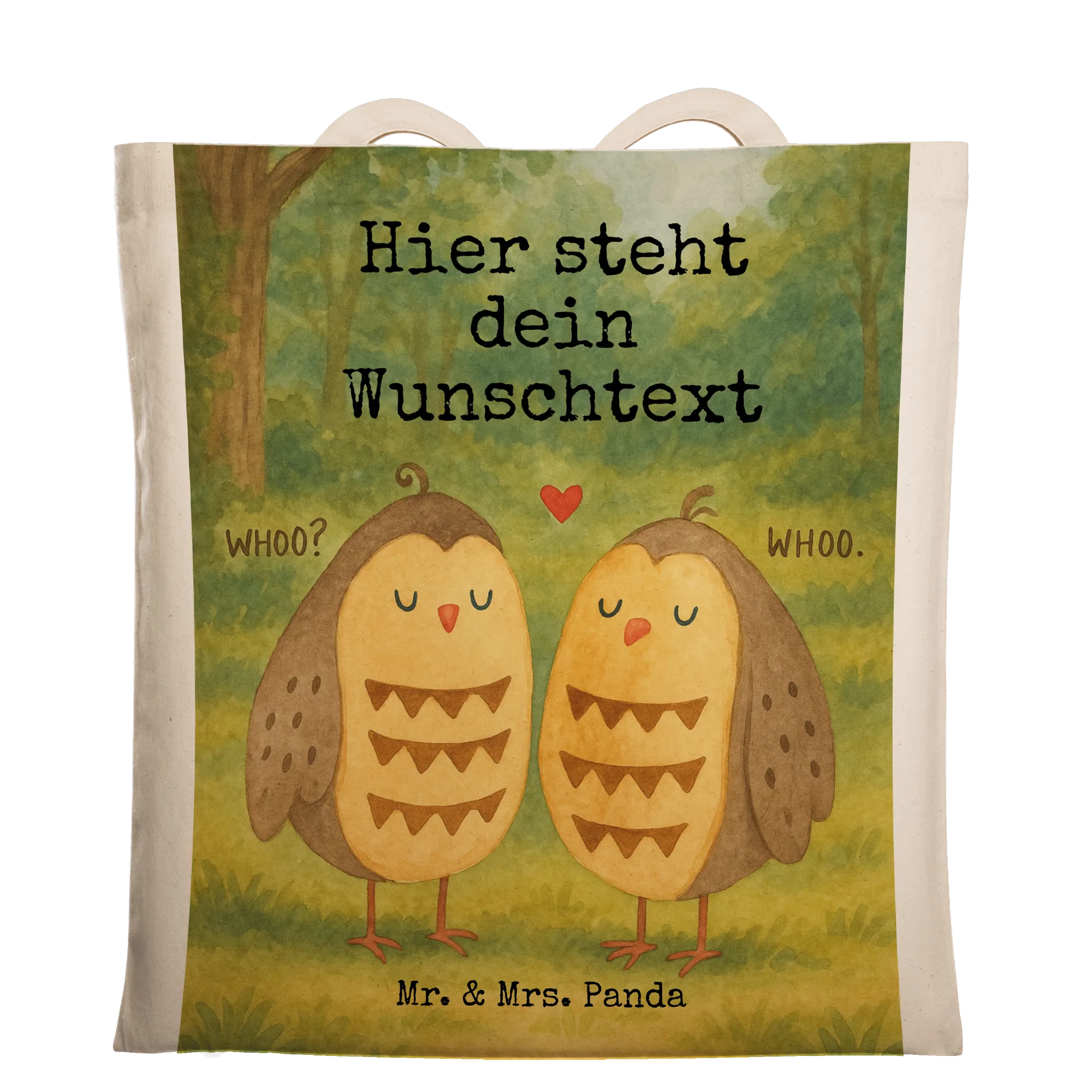 Personalisierte Tragetasche Eulen Liebe Design