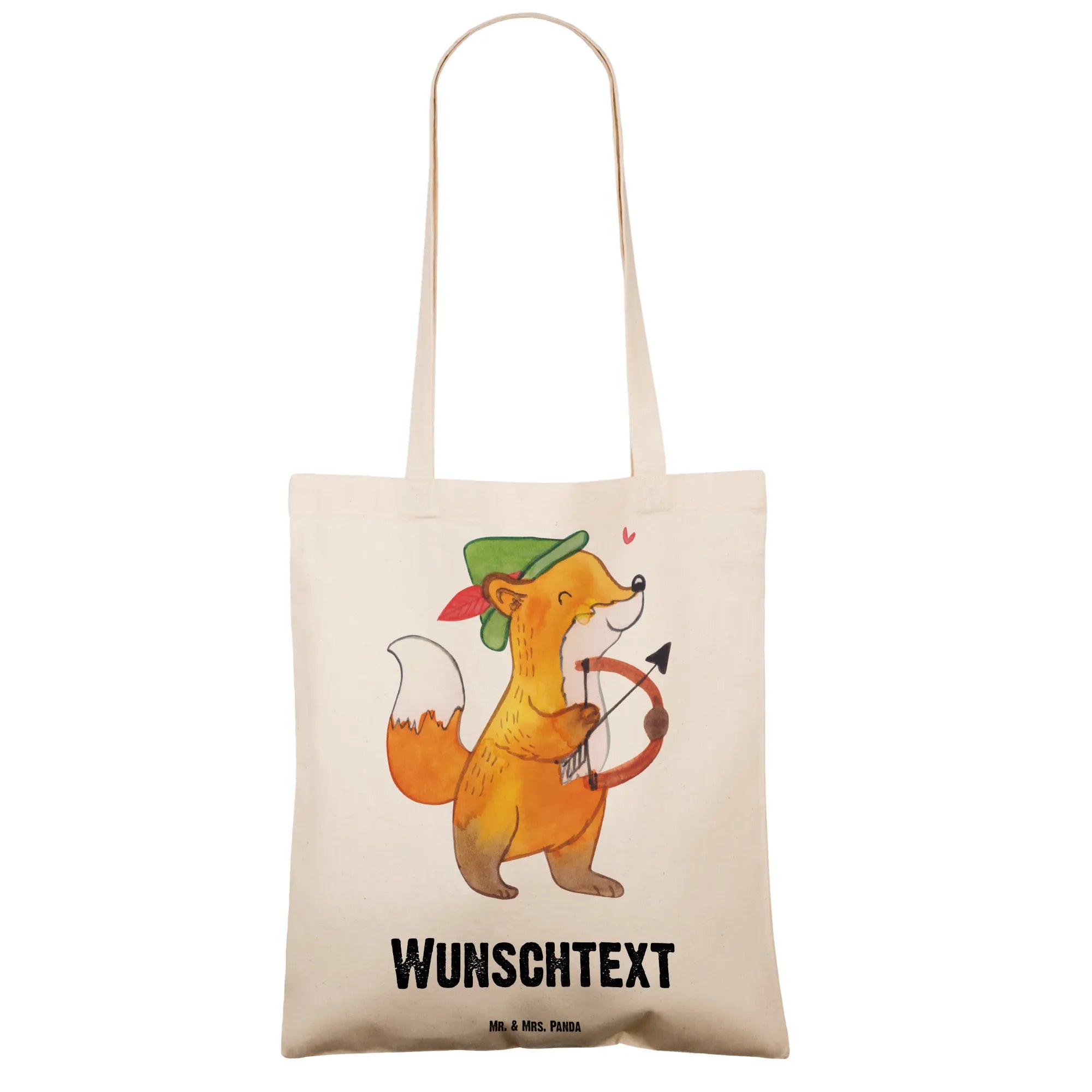 Entdecke die perfekte personalisierte Tragetasche für alle Schützen! Mit einem charmanten Design, das einen fröhlichen Fuchs zeigt, der seinen Bogen hält, ist diese Tasche nicht nur praktisch, sondern auch ein kleines Kunstwerk.