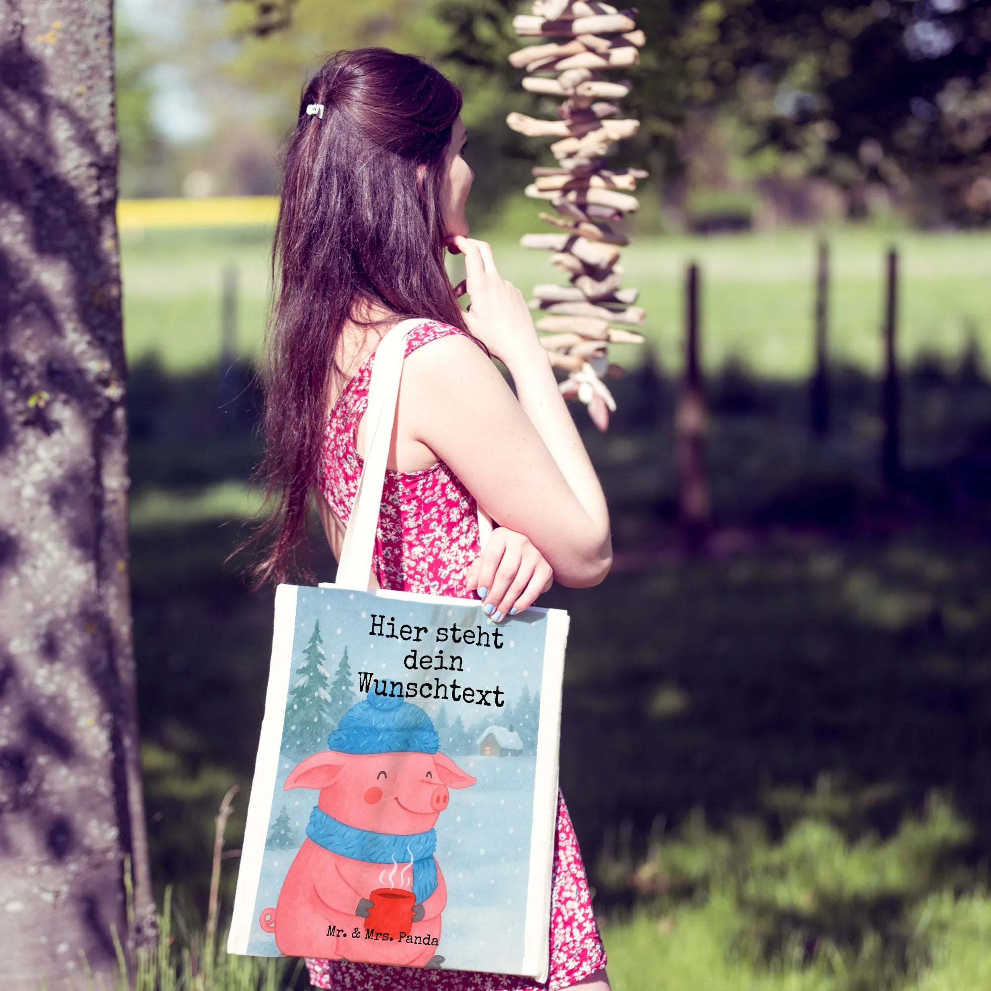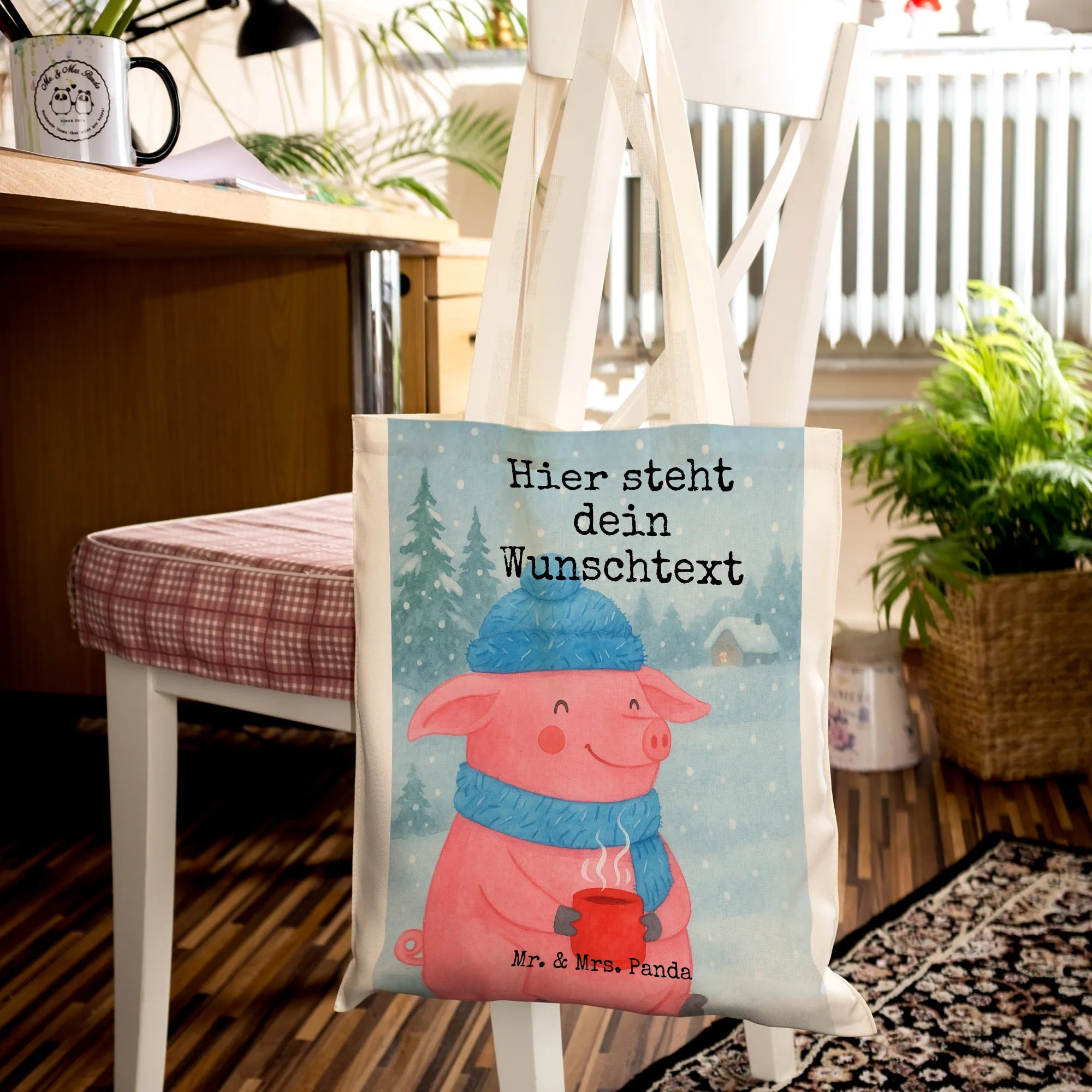 Personalisierte Tragetasche Schweinchen Glühwein Design