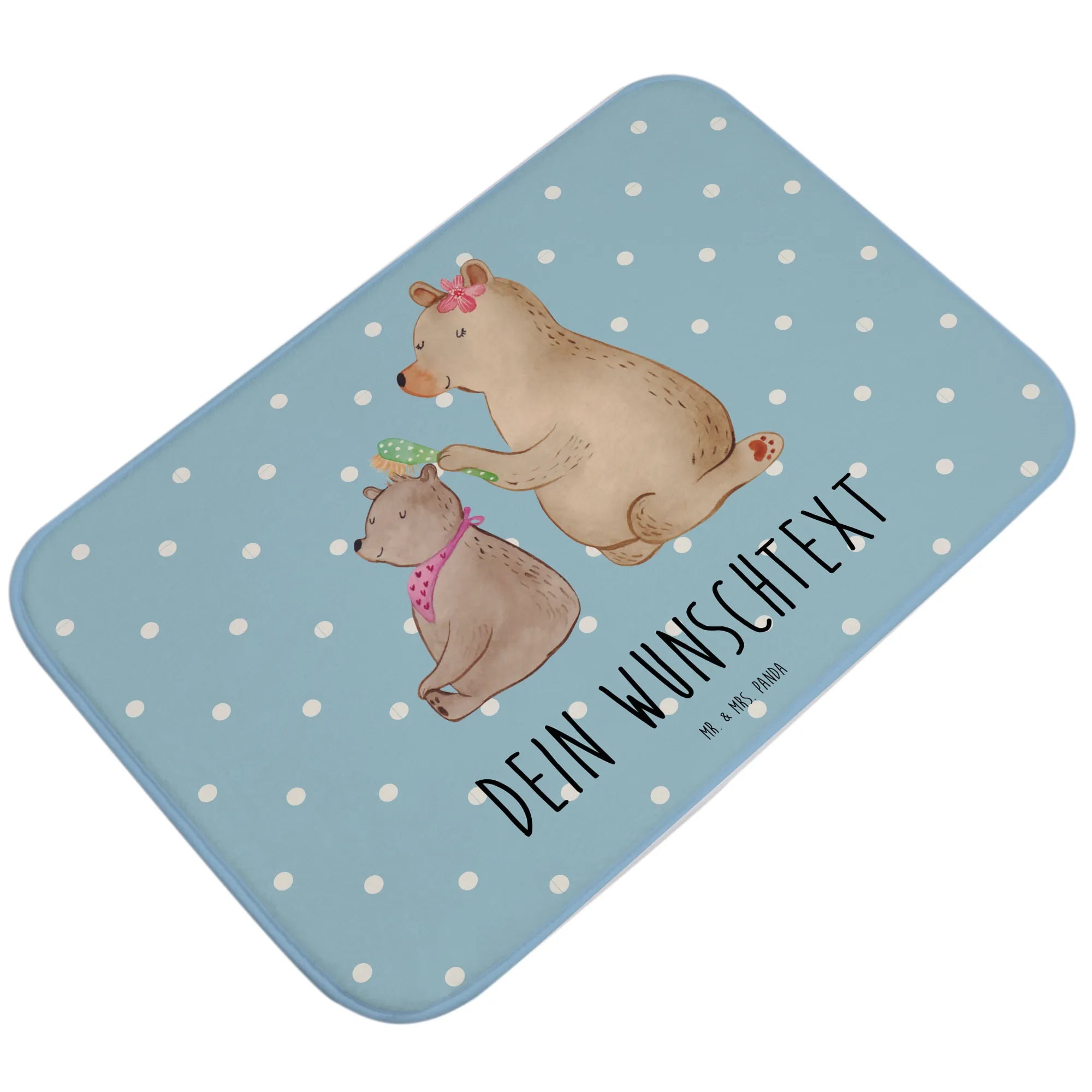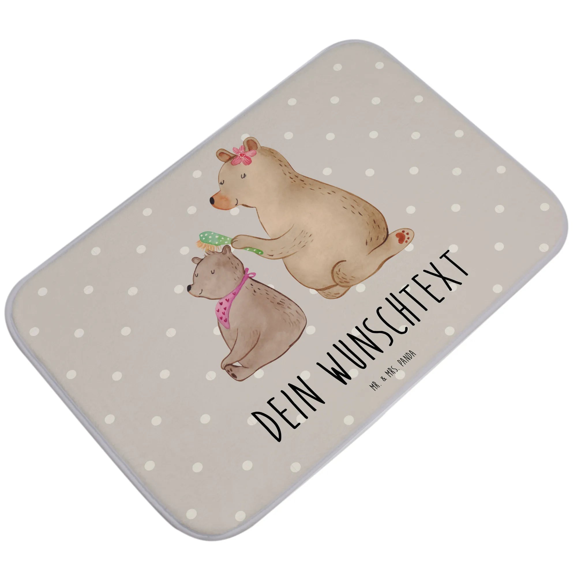 Entdecke die zauberhafte Welt von Mr. & Mrs. Panda mit unserem personalisierten Badvorleger 'Bär mit Kind'. Dieser liebevolle Badvorleger ist nicht nur ein praktisches Accessoire für dein Badezimmer, sondern auch ein wunderschönes Geschenk für die Mama, die Mutti oder die Mutter. Der große Bär mit einem zärtlichen Gesichtsausdruck bürstet das Fell des kleinen Bären, und beide versprühen eine warme familiäre Atmosphäre der Fürsorge und Zuneigung.