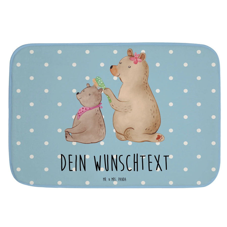 Personalisierter Badvorleger Bär mit Kind - Blau Pastell